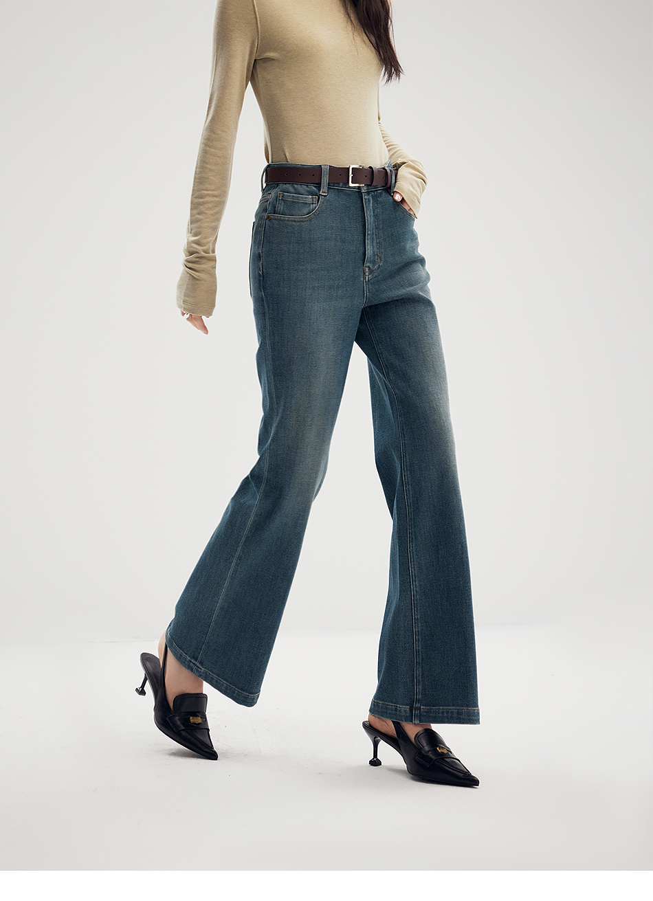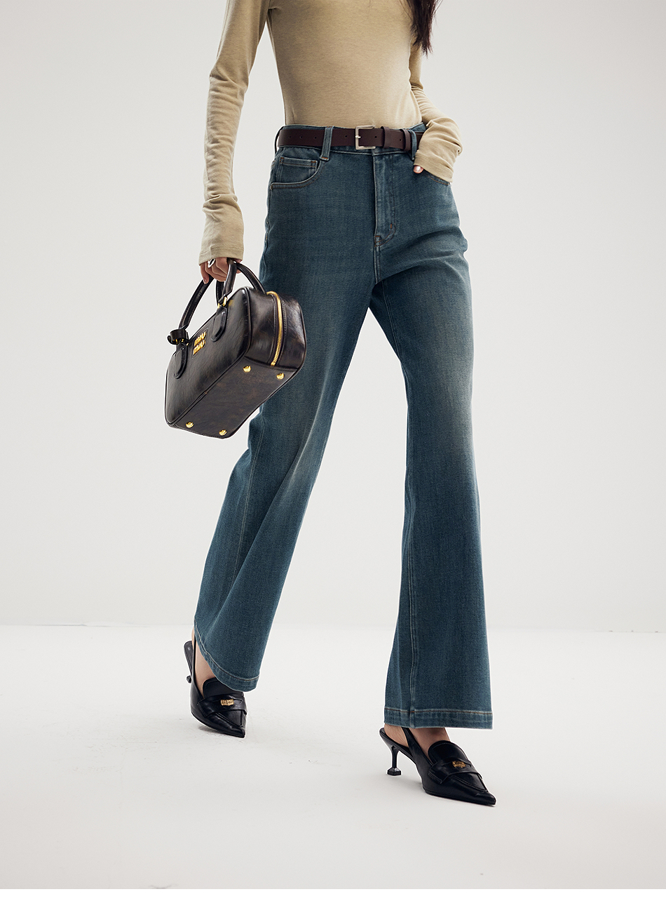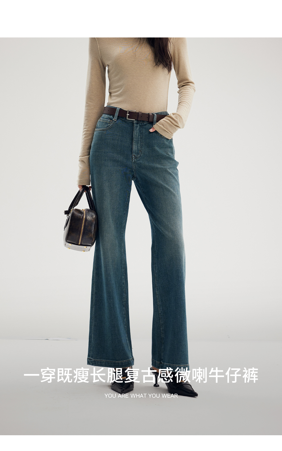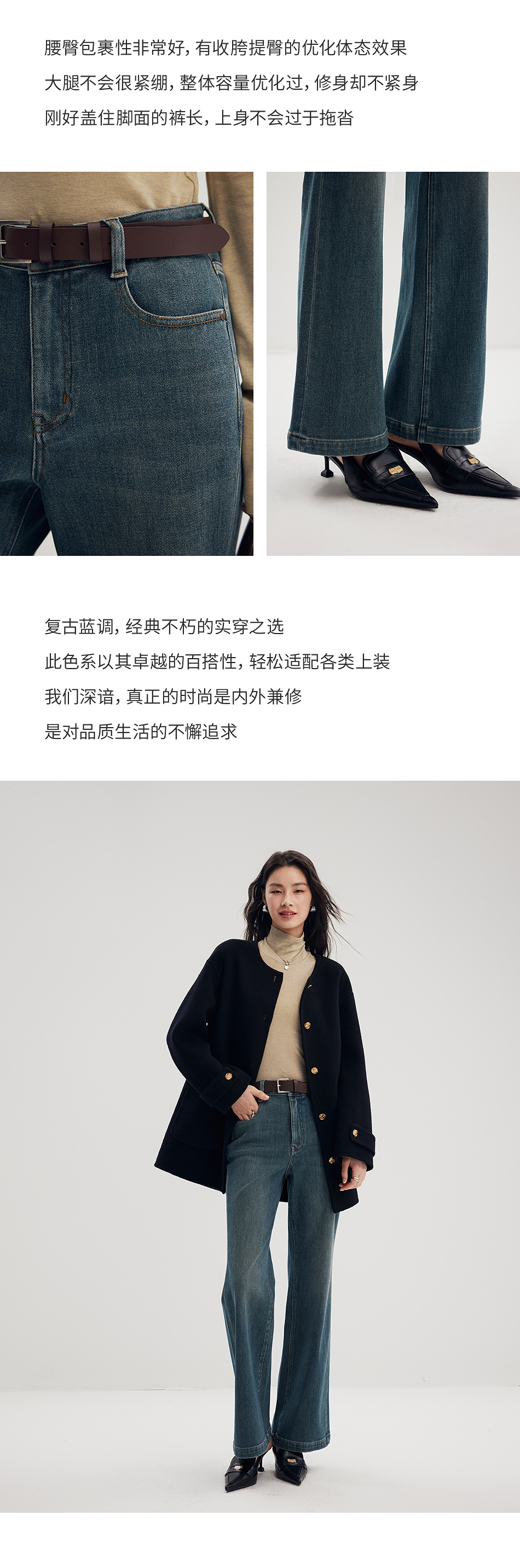 棉仓356619003-一穿既瘦长腿复古感微喇牛仔裤复古蓝天丝弹性牛仔裤