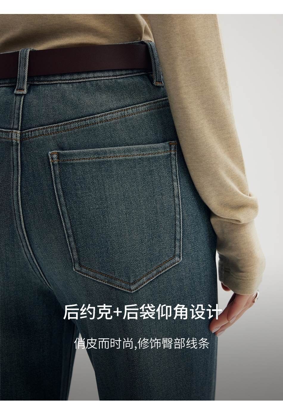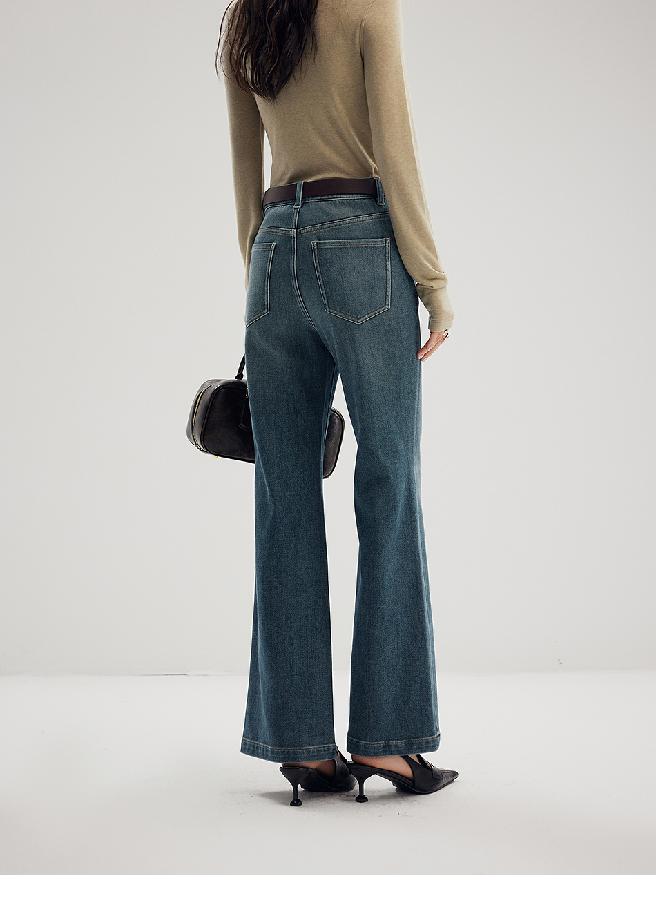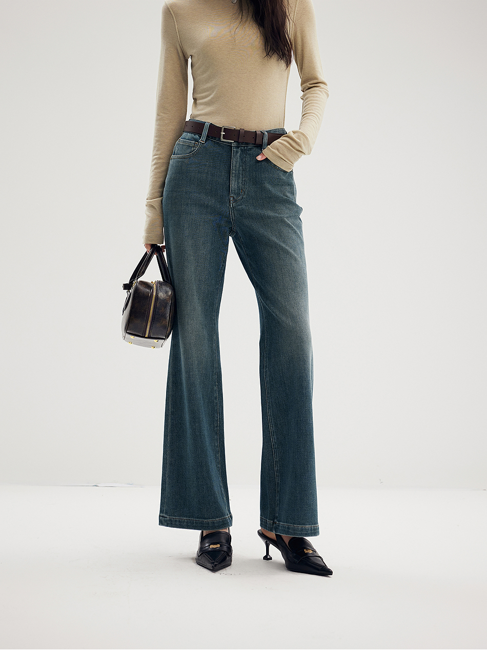 棉仓356619003-一穿既瘦长腿复古感微喇牛仔裤复古蓝天丝弹性牛仔裤
