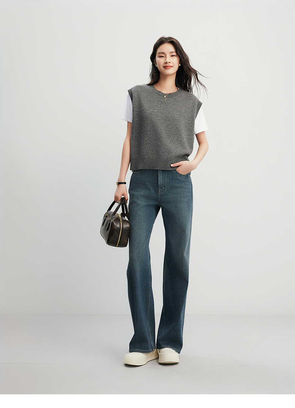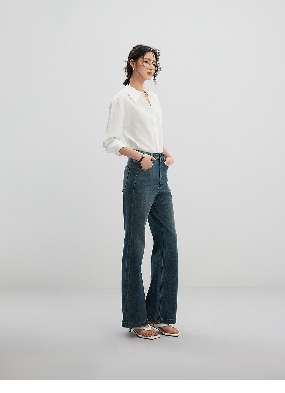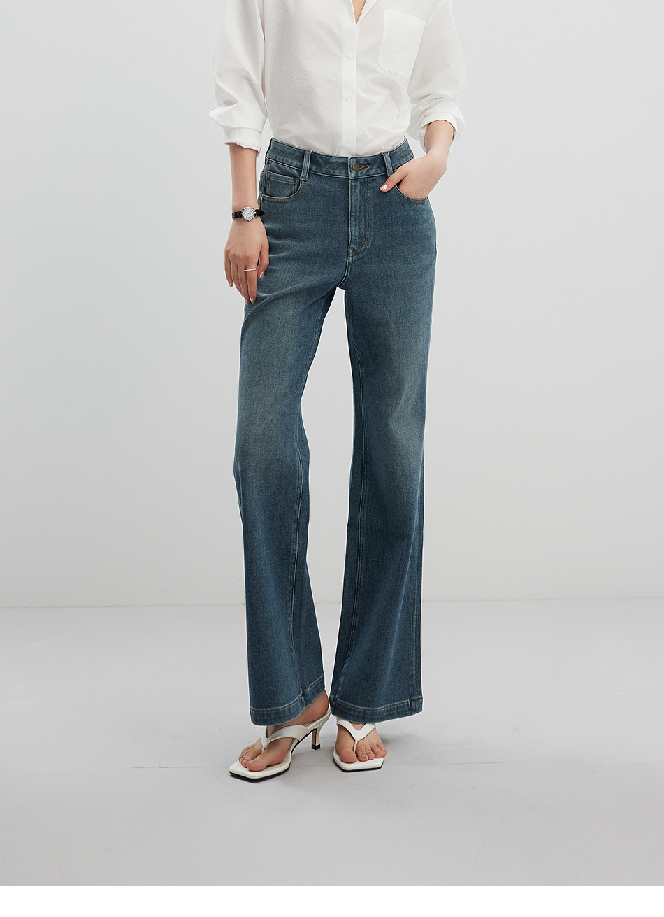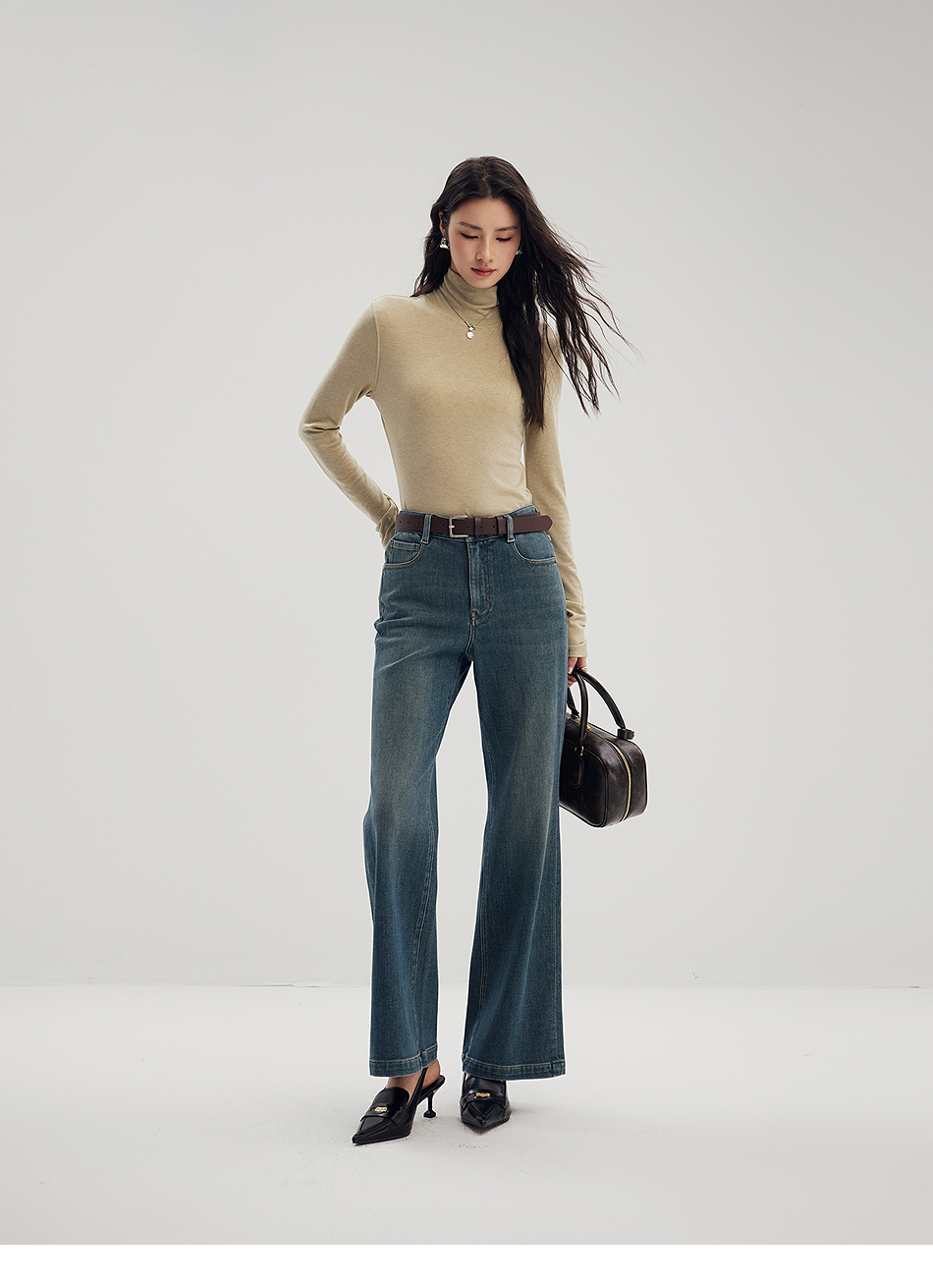 棉仓356619003-一穿既瘦长腿复古感微喇牛仔裤复古蓝天丝弹性牛仔裤