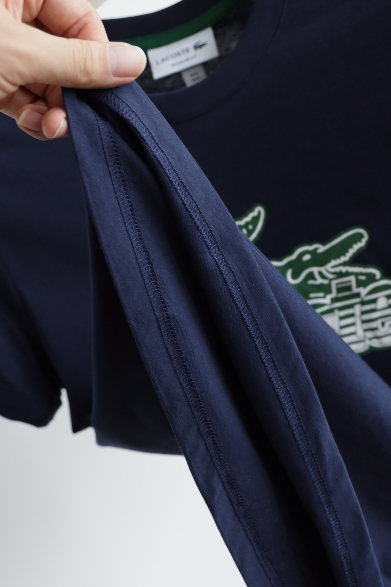 胸口卡通印花,下摆刺绣绿标,经典风格,简单设计