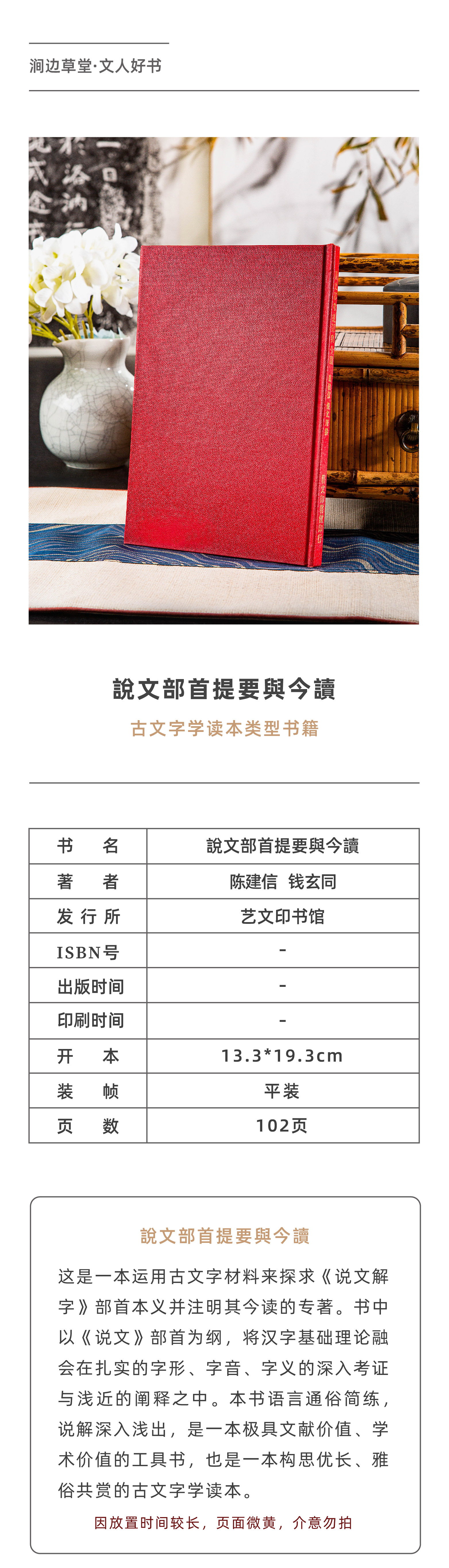 【绝版好书】《说文部首提要与今读》32开精装102页,1977年台艺文印书馆初版
