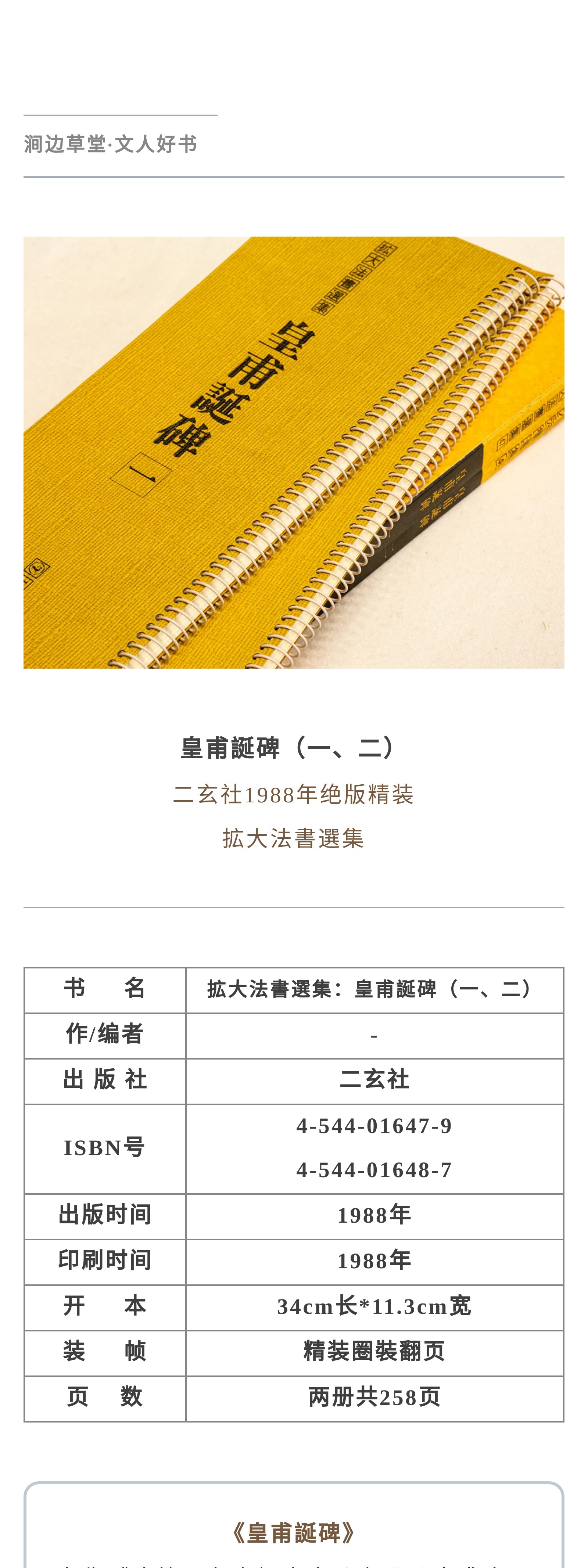 【绝版好书】拡大法书选集--皇甫誕碑(一、二 两本一套)