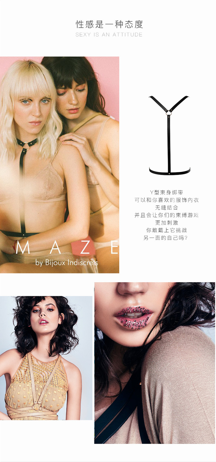 西班牙MAZE Y型束身绑带50度灰 情趣tiao情捆绑时尚配饰