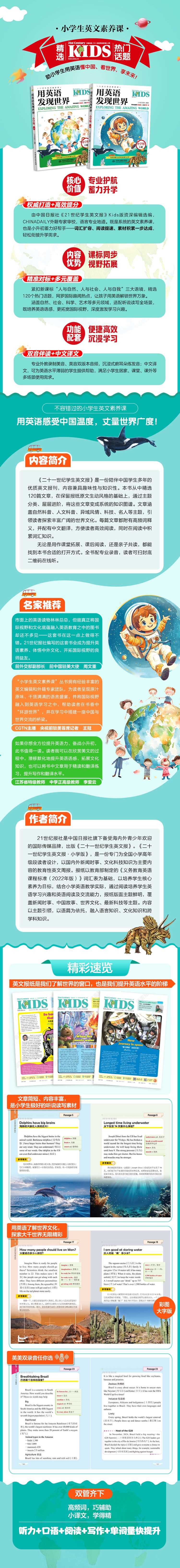 紧扣* ;人与自然、人与社会、人与自我 三大语境,精选 120 个热门话题,网罗国际趣闻热点,让孩子用英语解锁世界万象。?