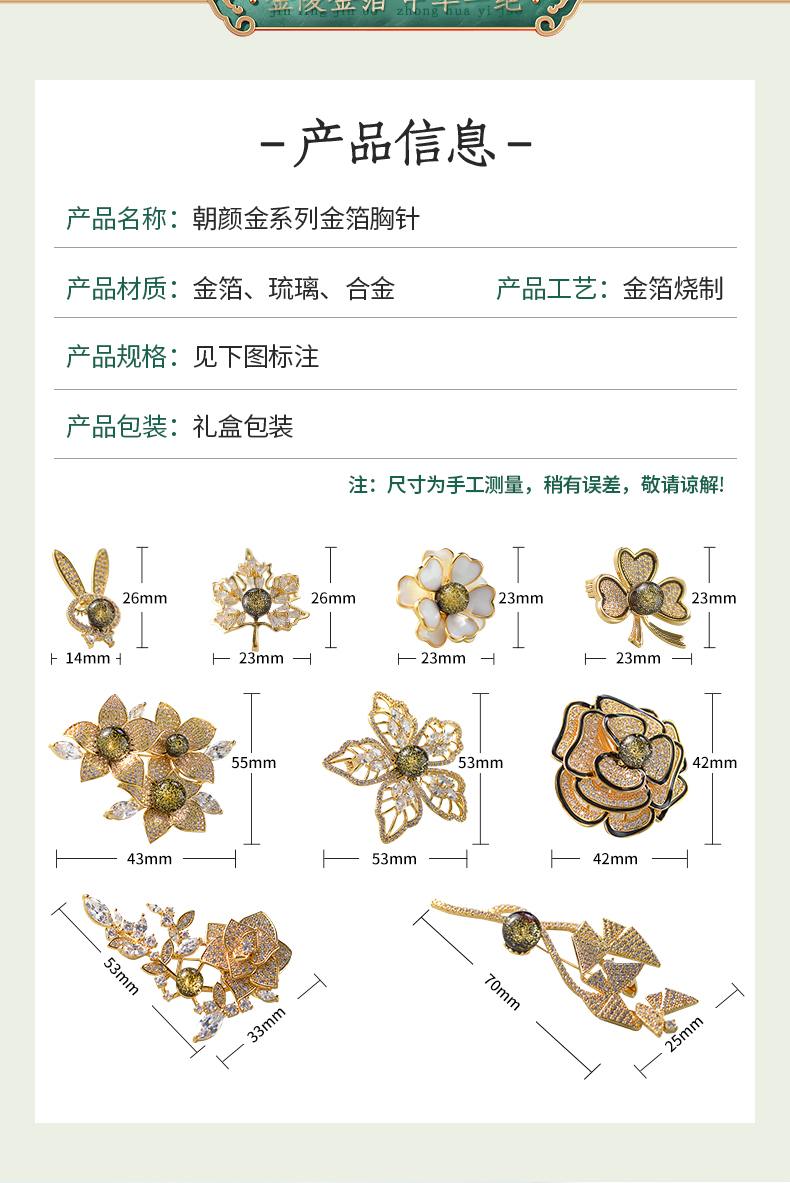 金箔朝颜金胸针高档女精致胸花新款潮奢华西装别针情人节生日礼物