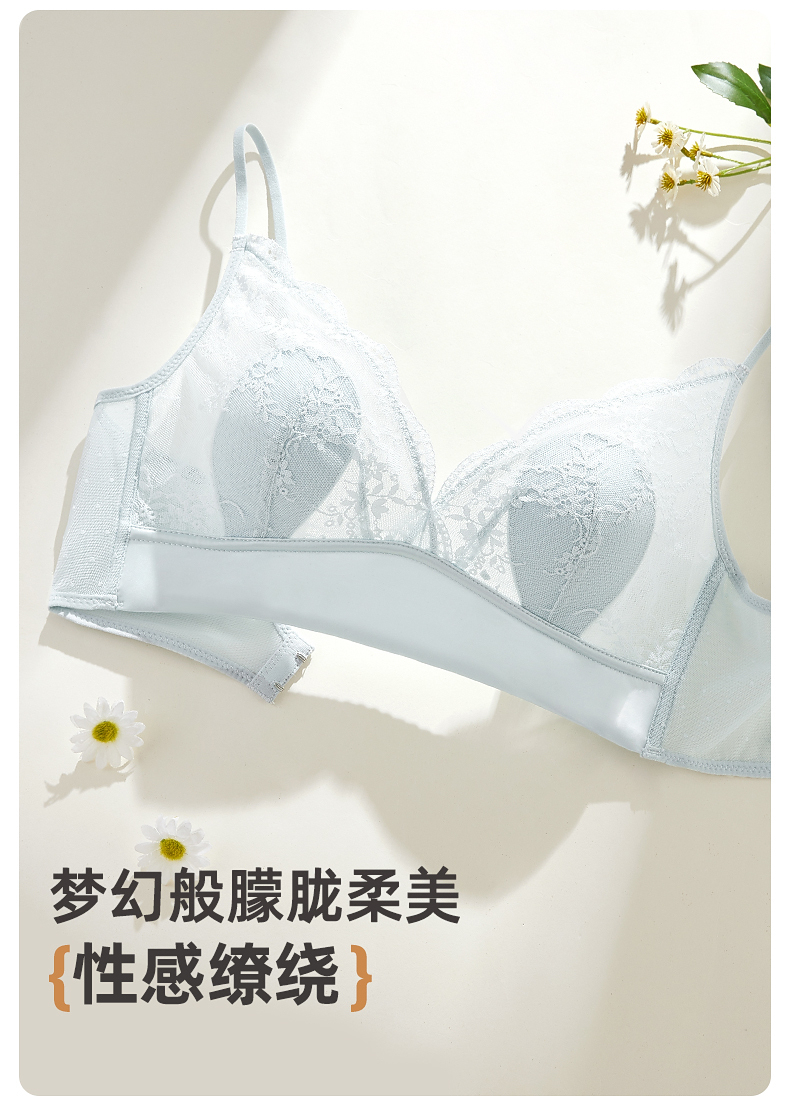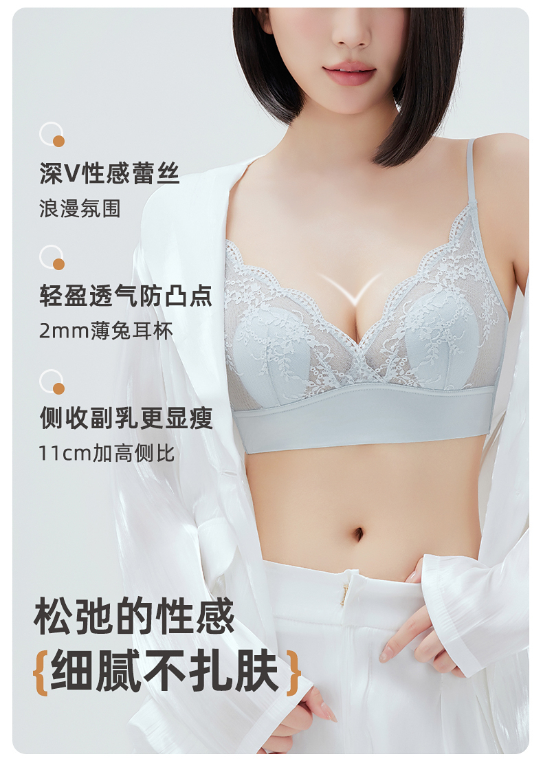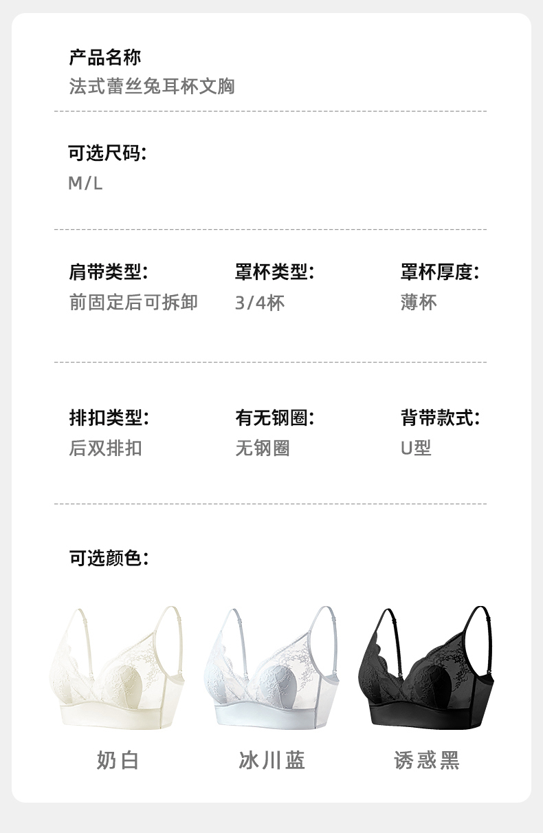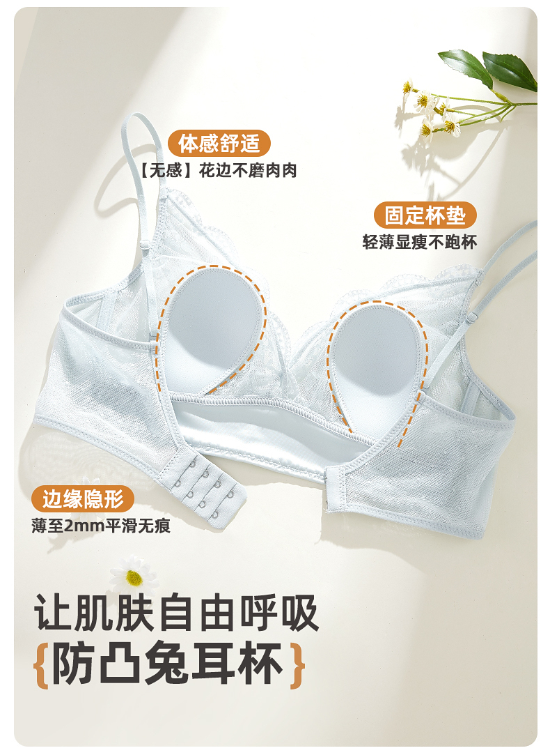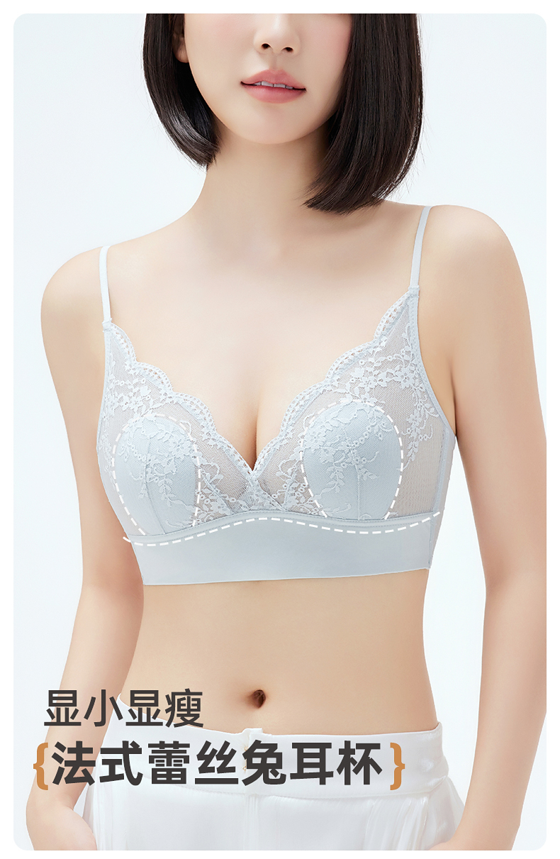 雅黛丽女士文胸轻薄兔耳朵杯大胸显小显瘦内衣舒适透气性感法式蕾丝胸罩
