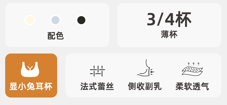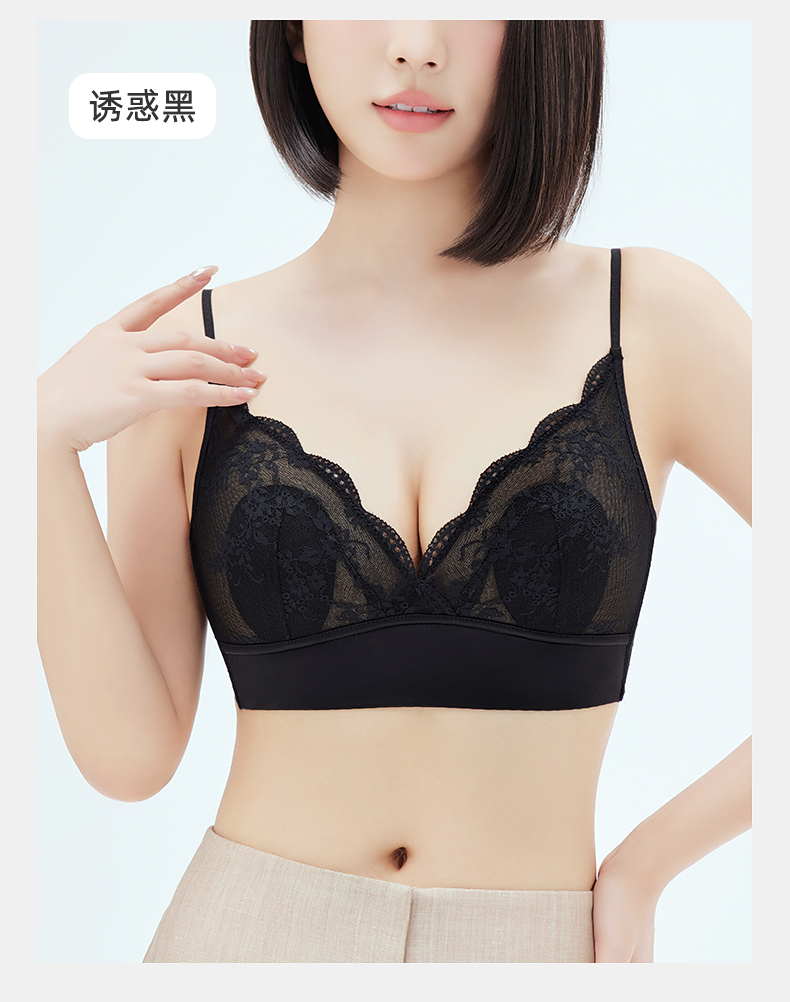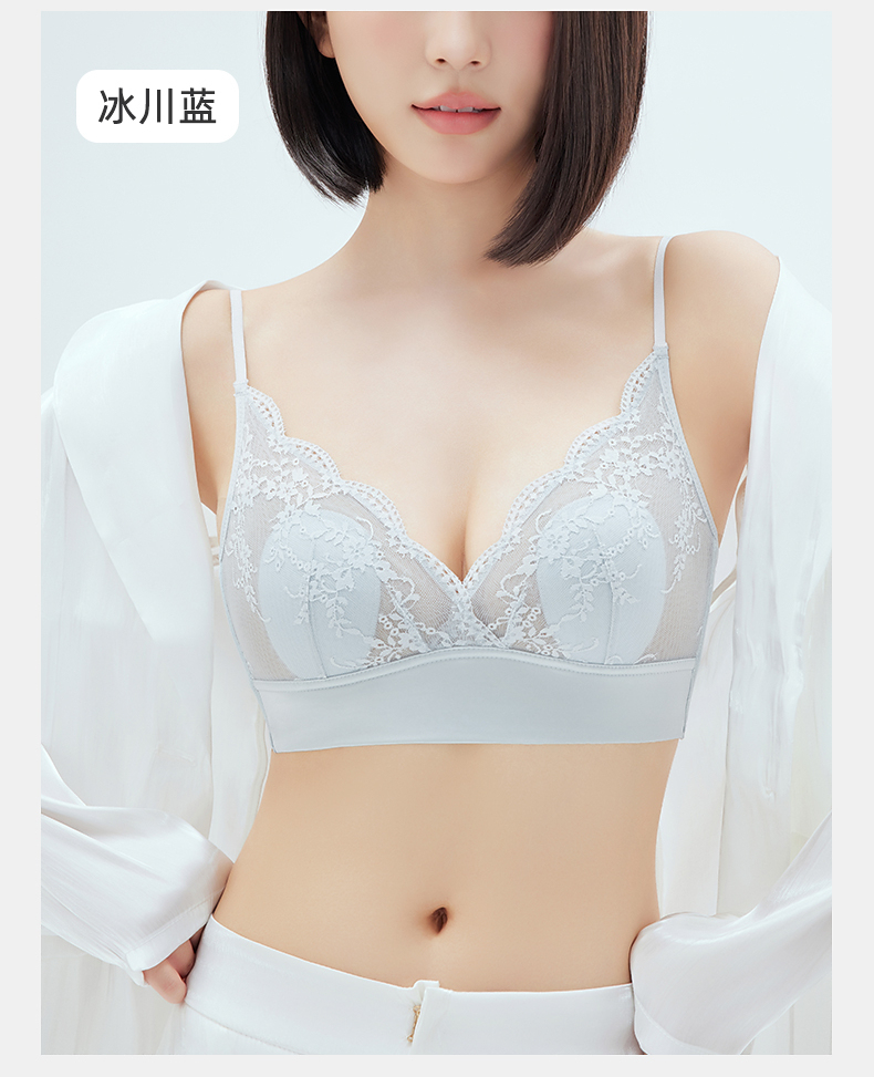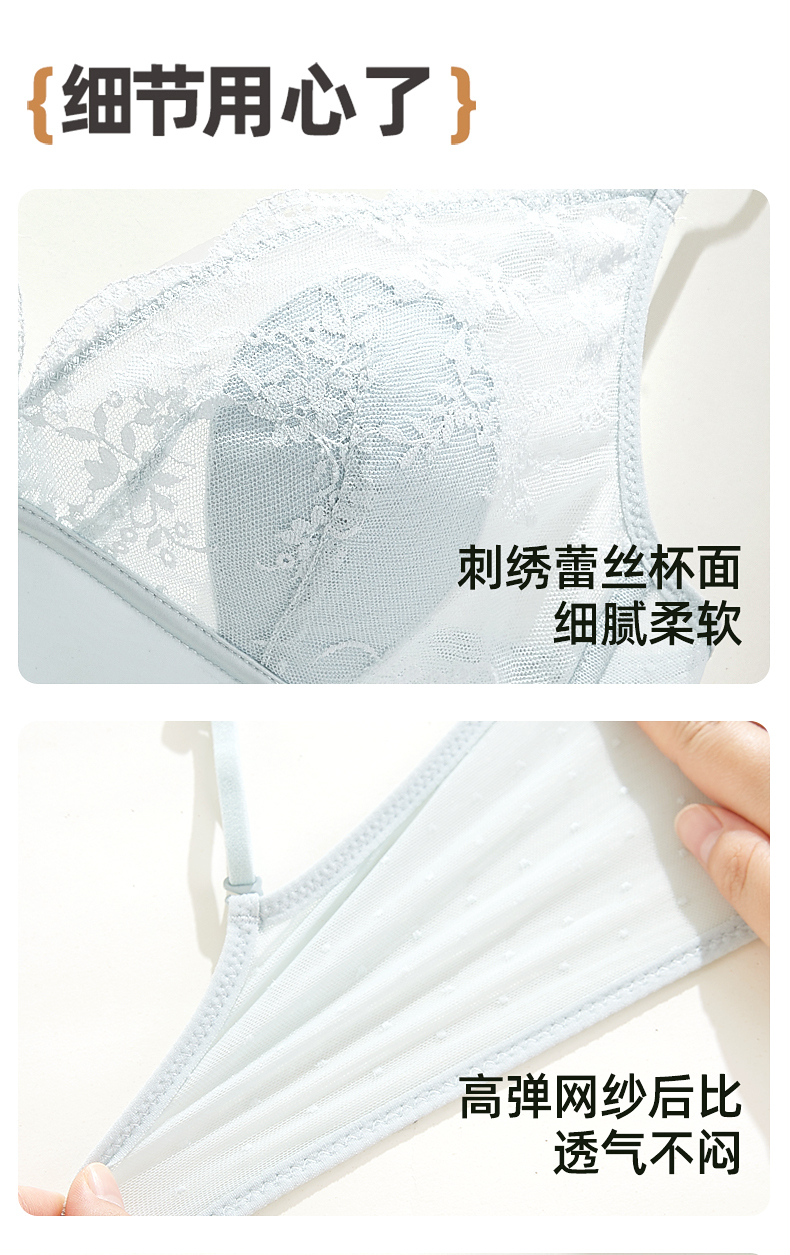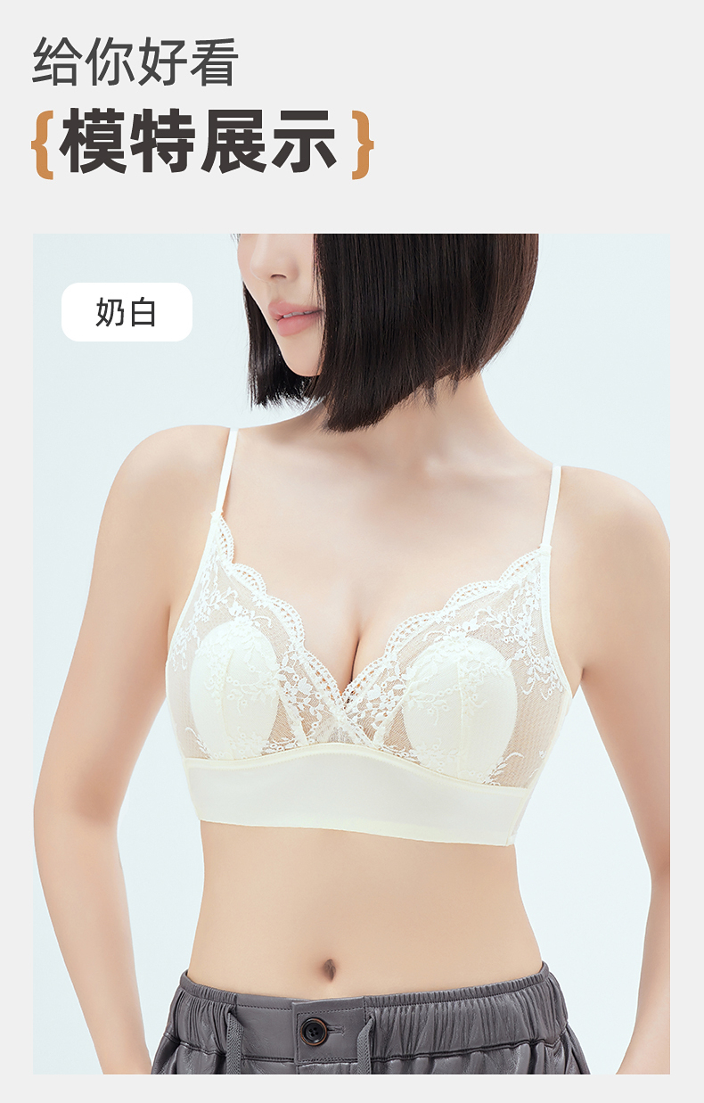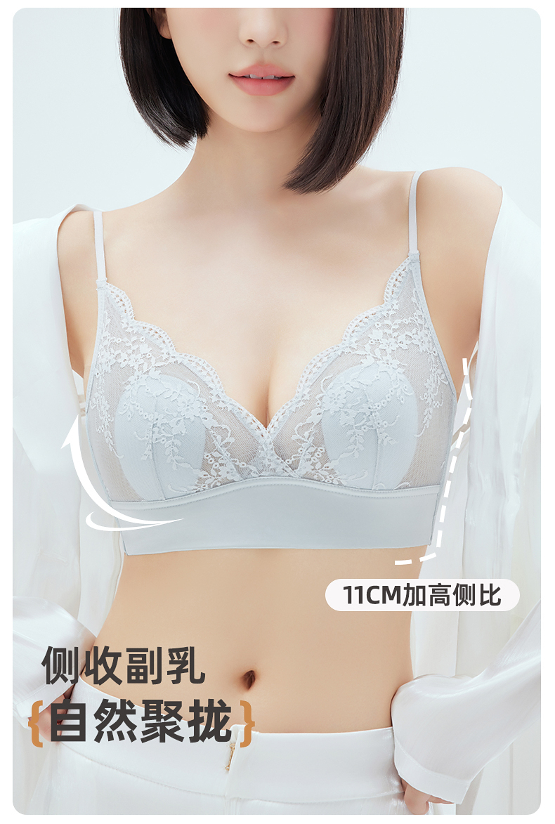 雅黛丽女士文胸轻薄兔耳朵杯大胸显小显瘦内衣舒适透气性感法式蕾丝胸罩