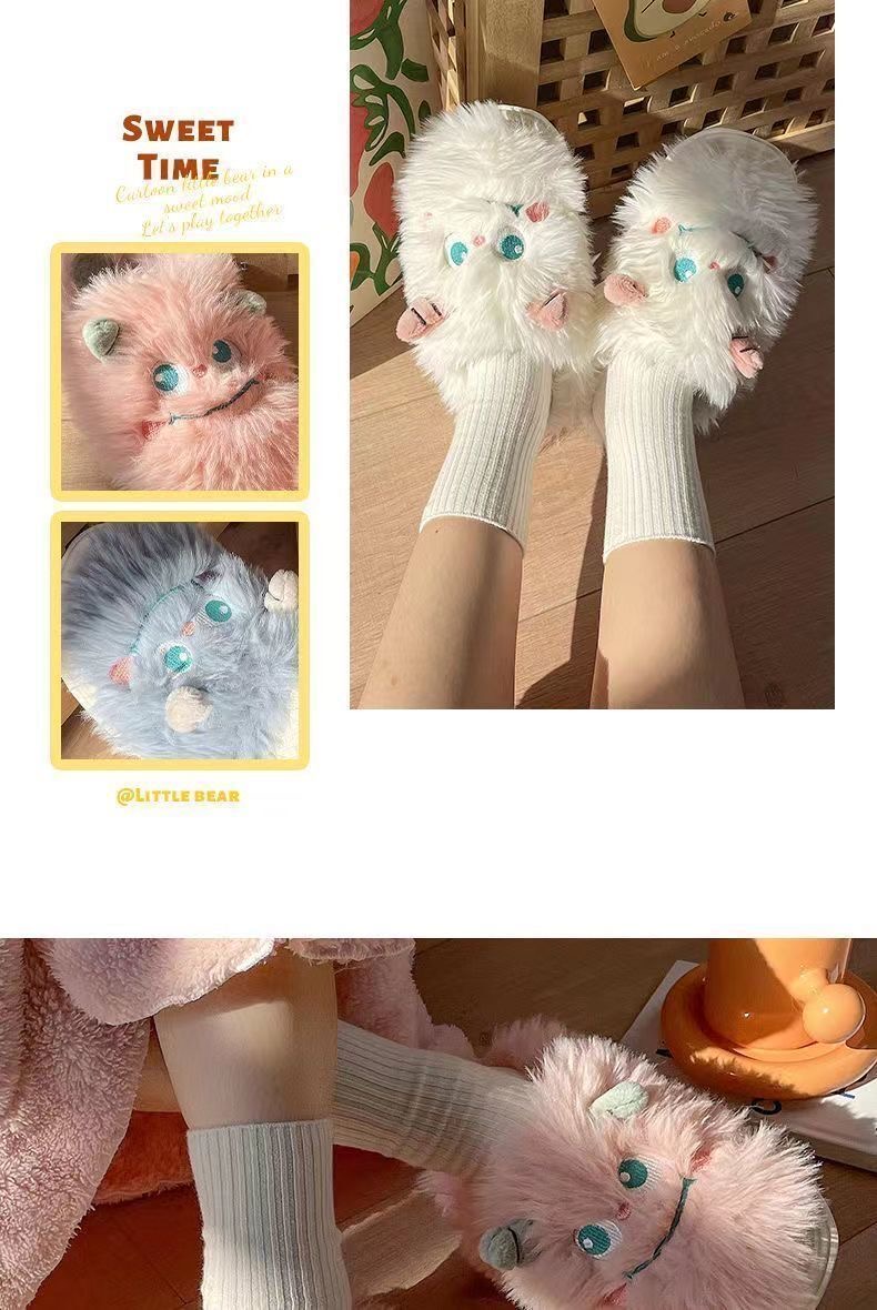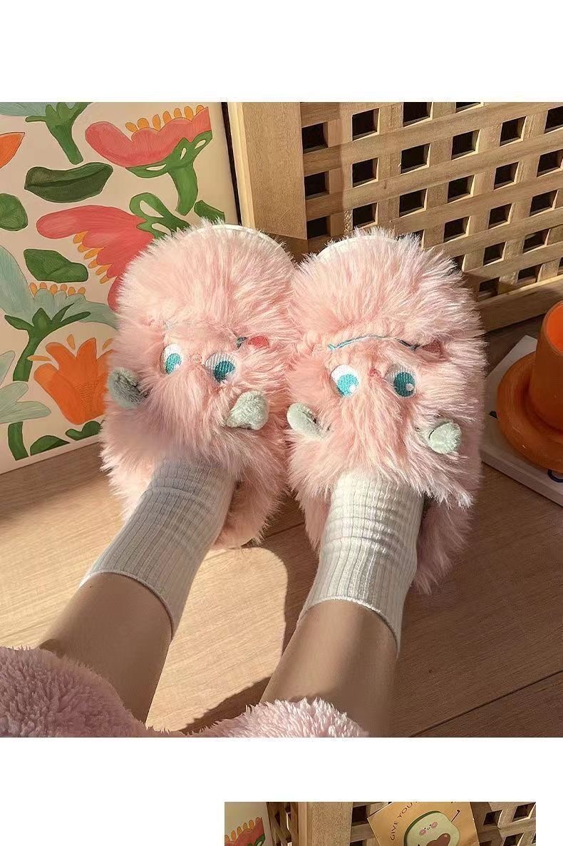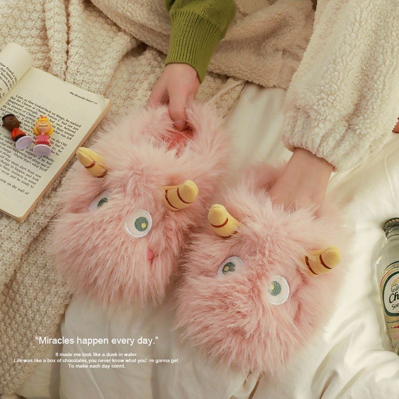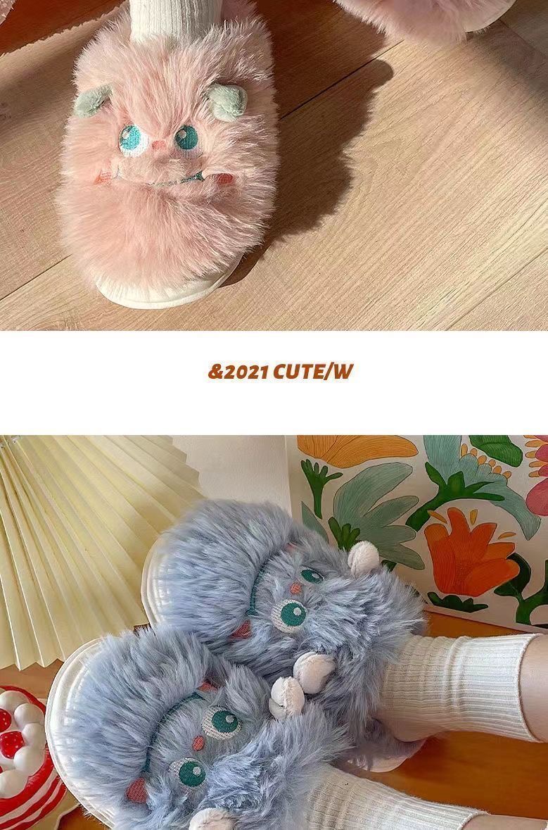 【毛毛加绒小怪兽棉拖鞋】网红居家冬天室内冬季居家毛绒厚底,防滑性能软糯回弹惬意亲肤,保暖室内居家居月子棉拖QQ