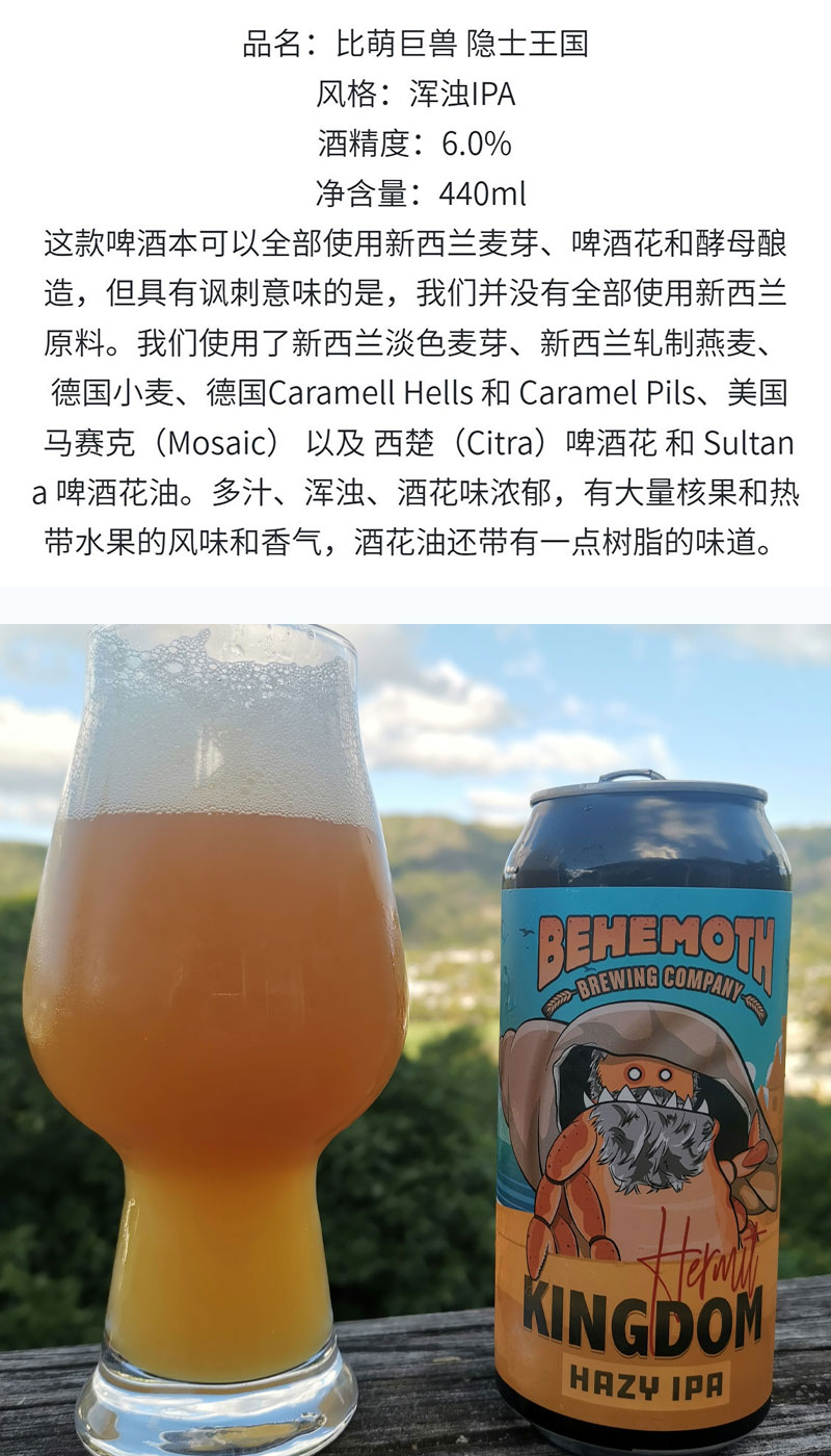 【冷库储存】新西兰比萌巨兽隐士国王浑浊IPA啤酒 6.0%vol 440ml