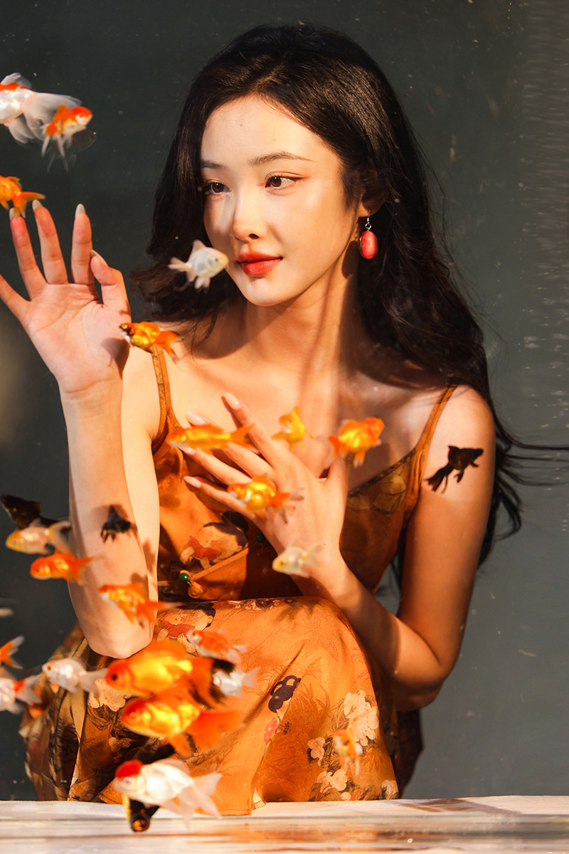同时保留了盛唐的雍容气韵——侍女执扇、拈花、扑蝶的剪影,是穿越千年的优雅“表情包”,让度假穿搭自带故事感,穿去古城像刚从壁画里溜出来喝茶的唐朝小姐姐。!