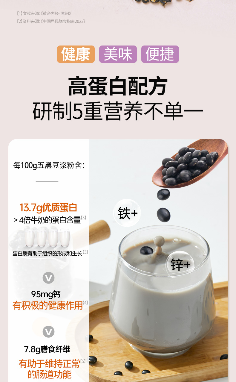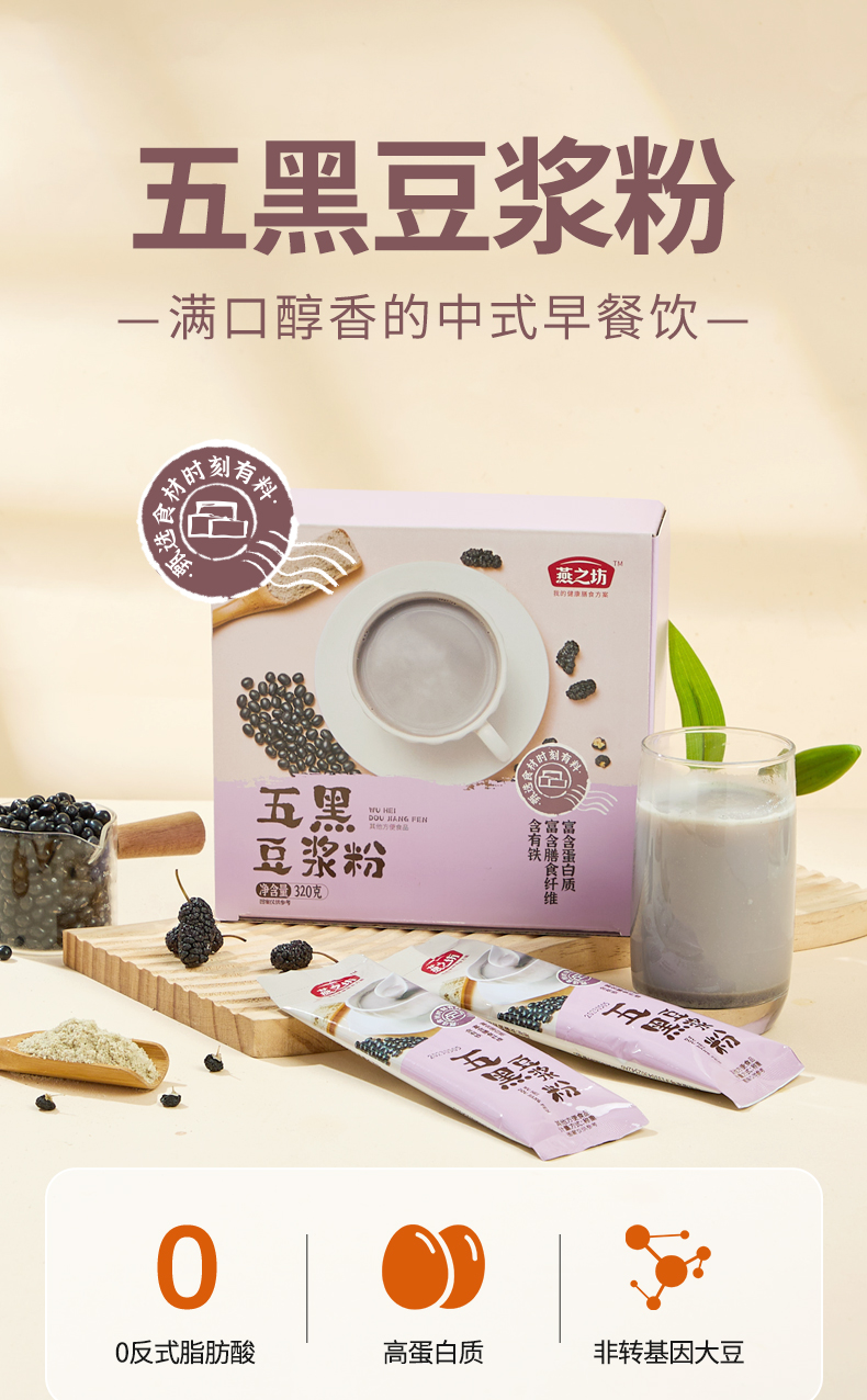 燕之坊 五黑豆浆粉盒装320g营养早餐黑豆黑芝麻黑桑葚黑果枸杞