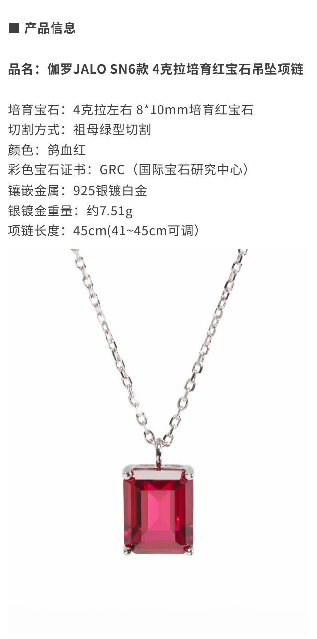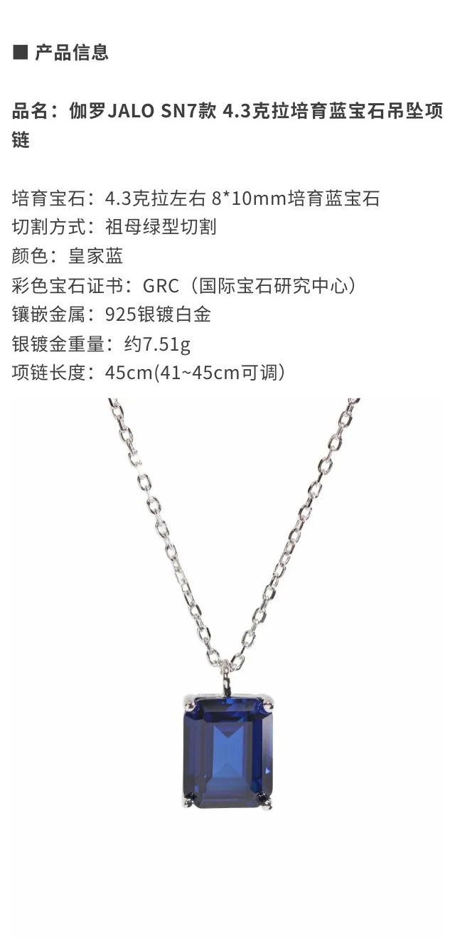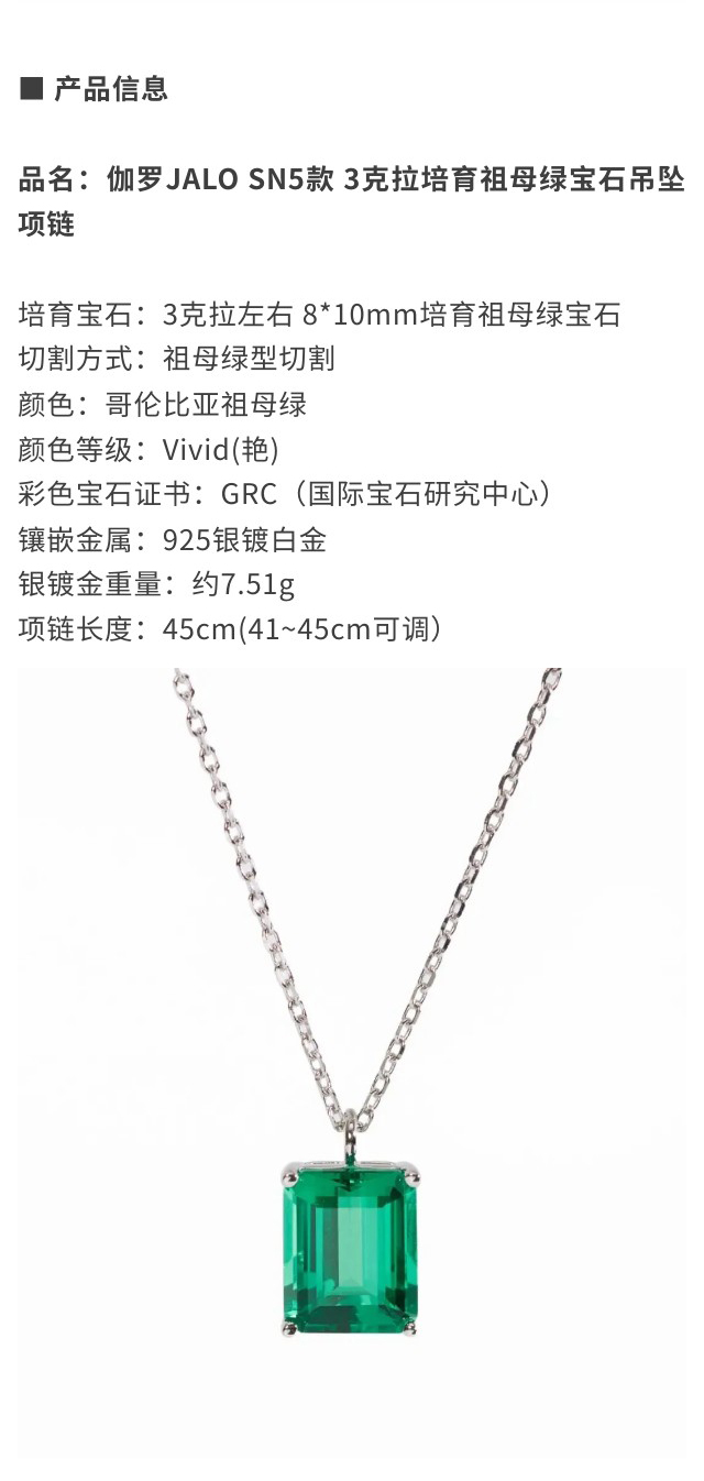 伽罗 JALO 培育宝石吊坠项链