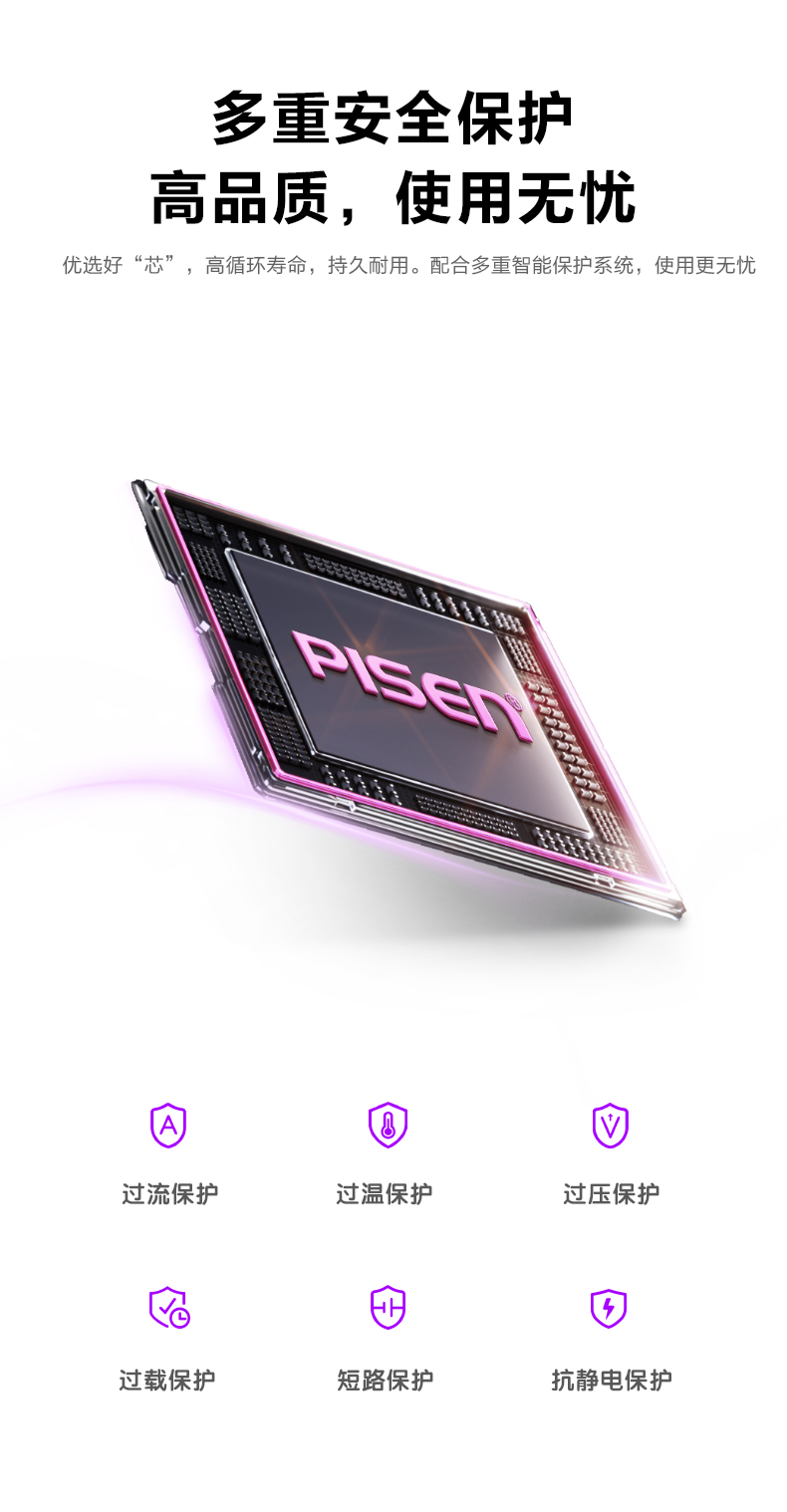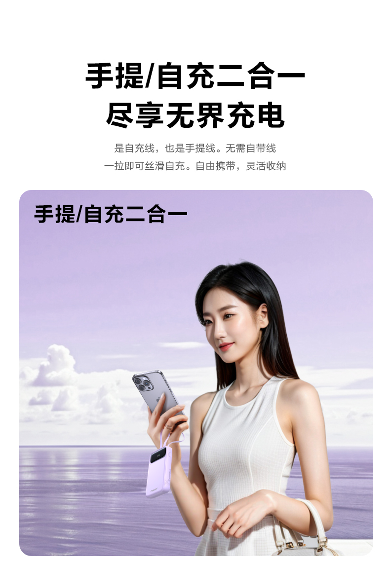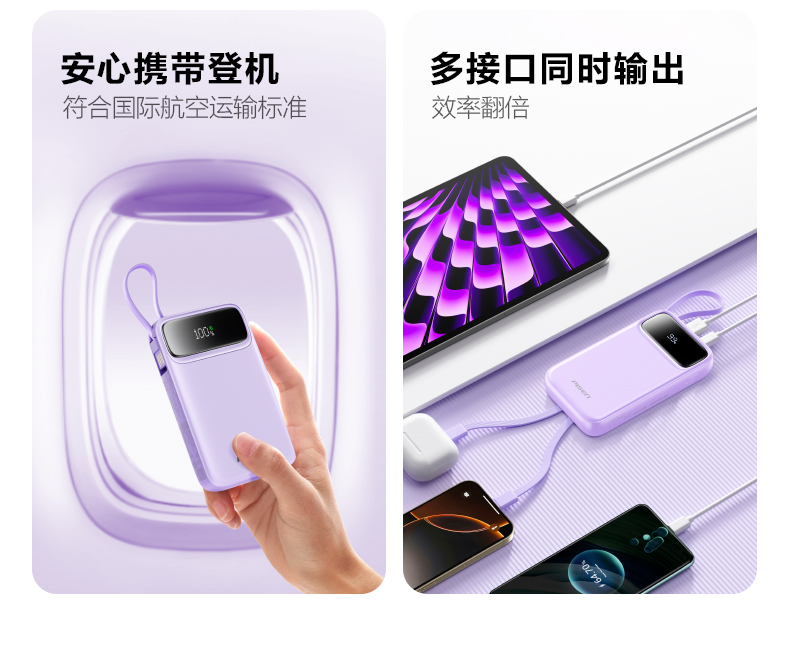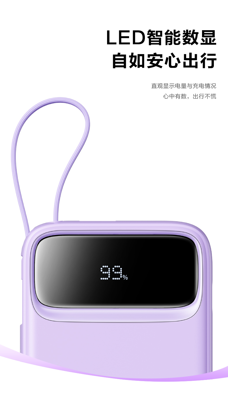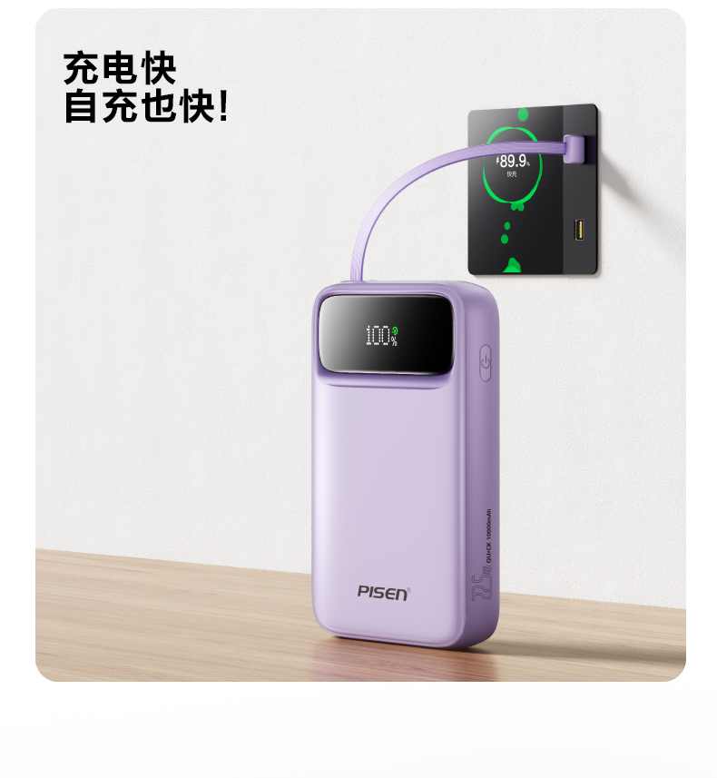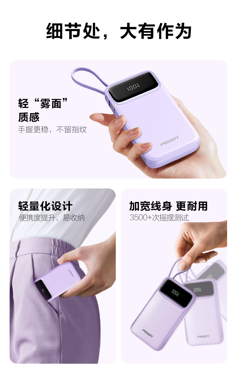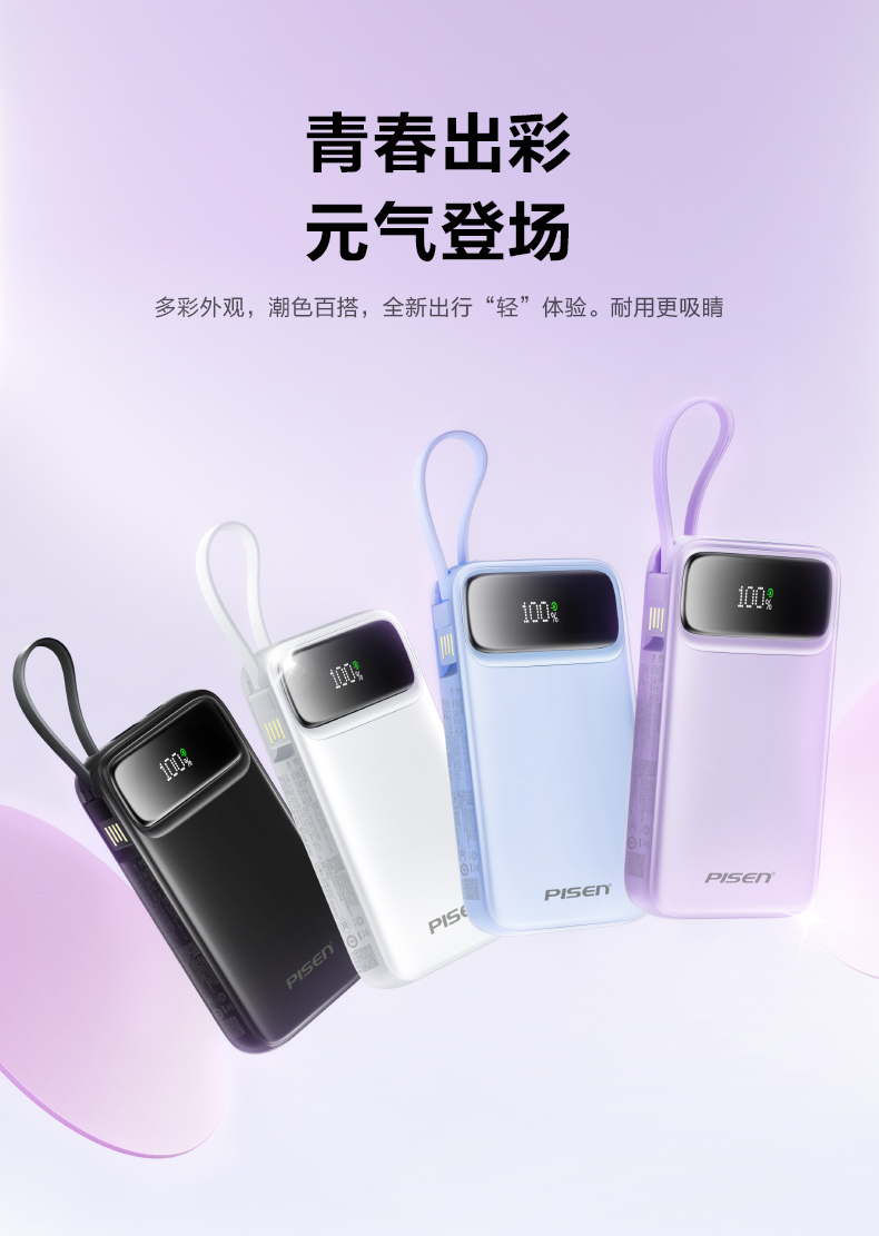 品胜 22.5W三线方屏快充电宝20000毫安 大容量自带C口/L口数据线 22.5W快充移动电源适用苹果/华为/小米/荣耀设备