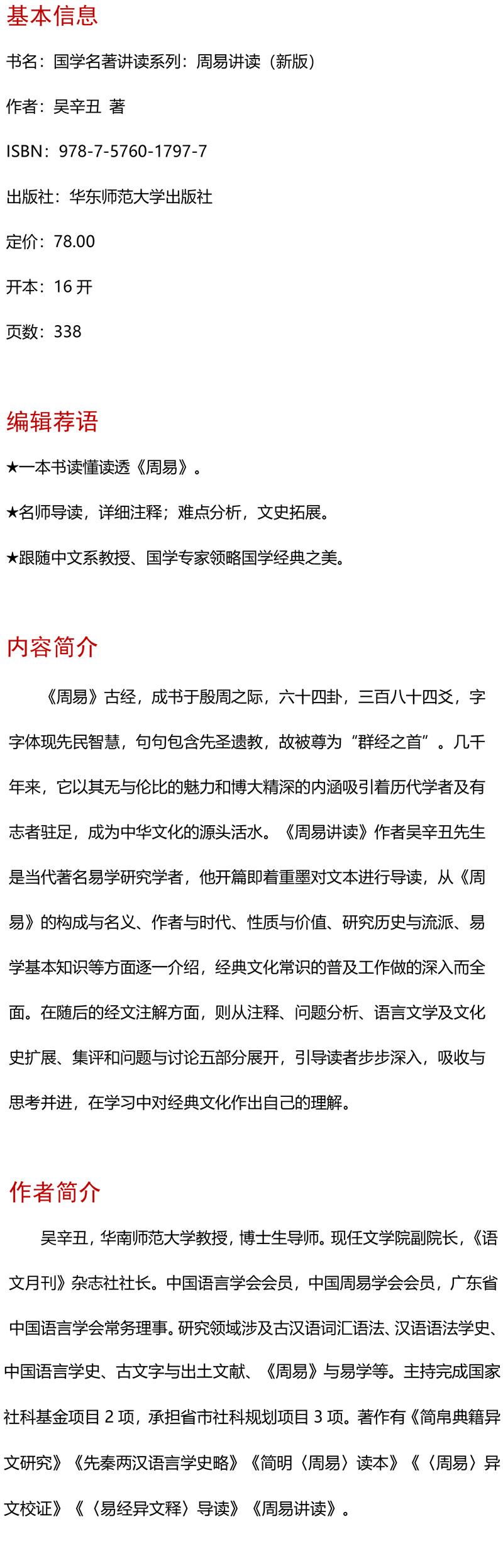 国学名著讲读系列 周易讲读 新版 导读详细注释难点分析文史拓展 中文系教授国学专家解读国学经典