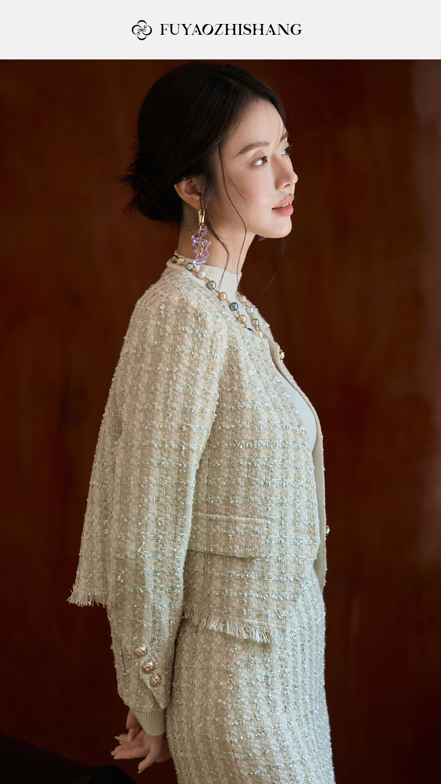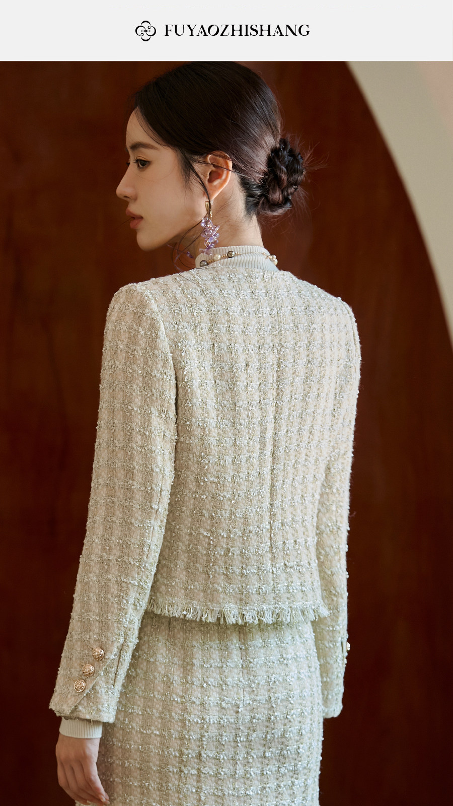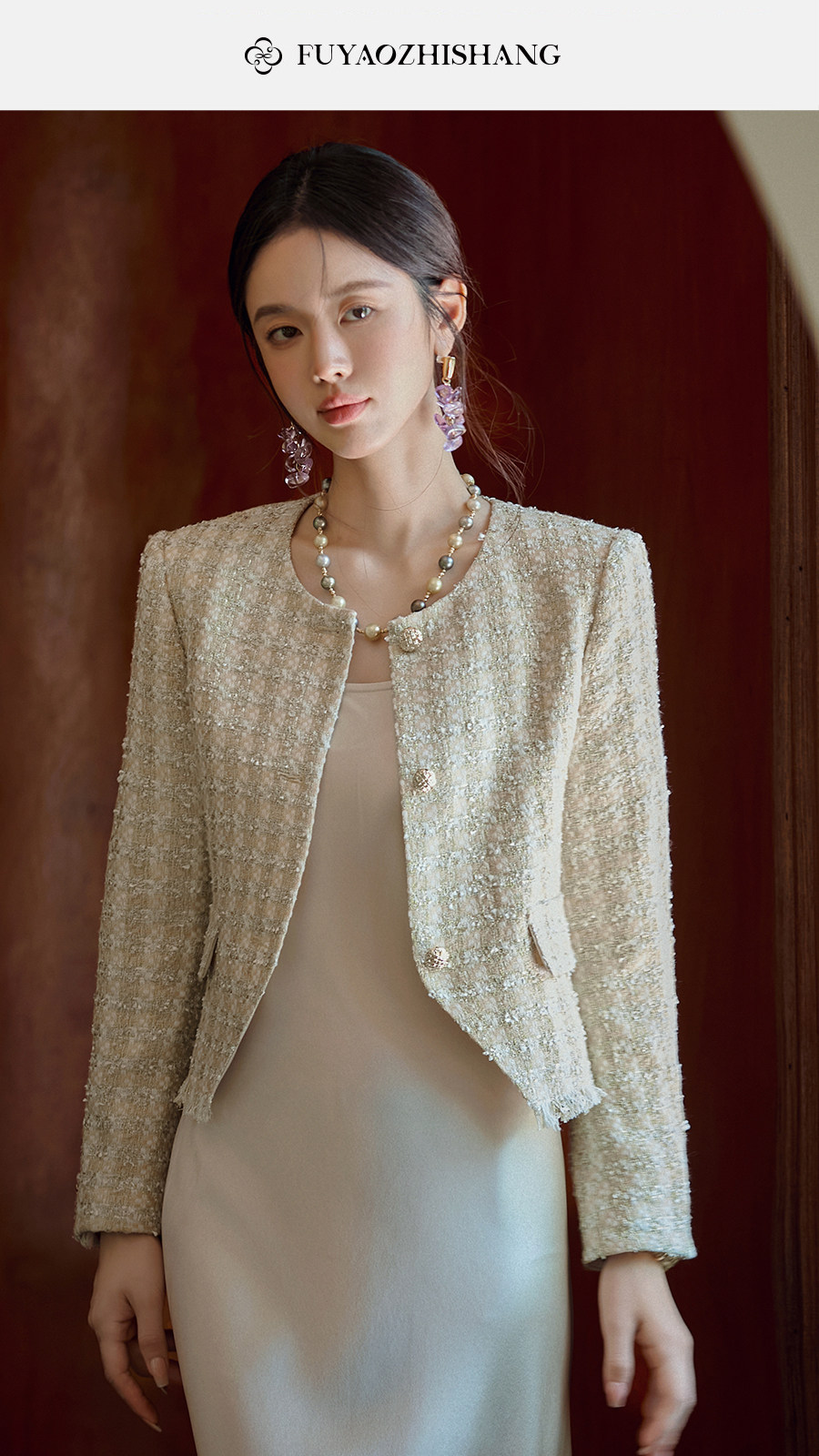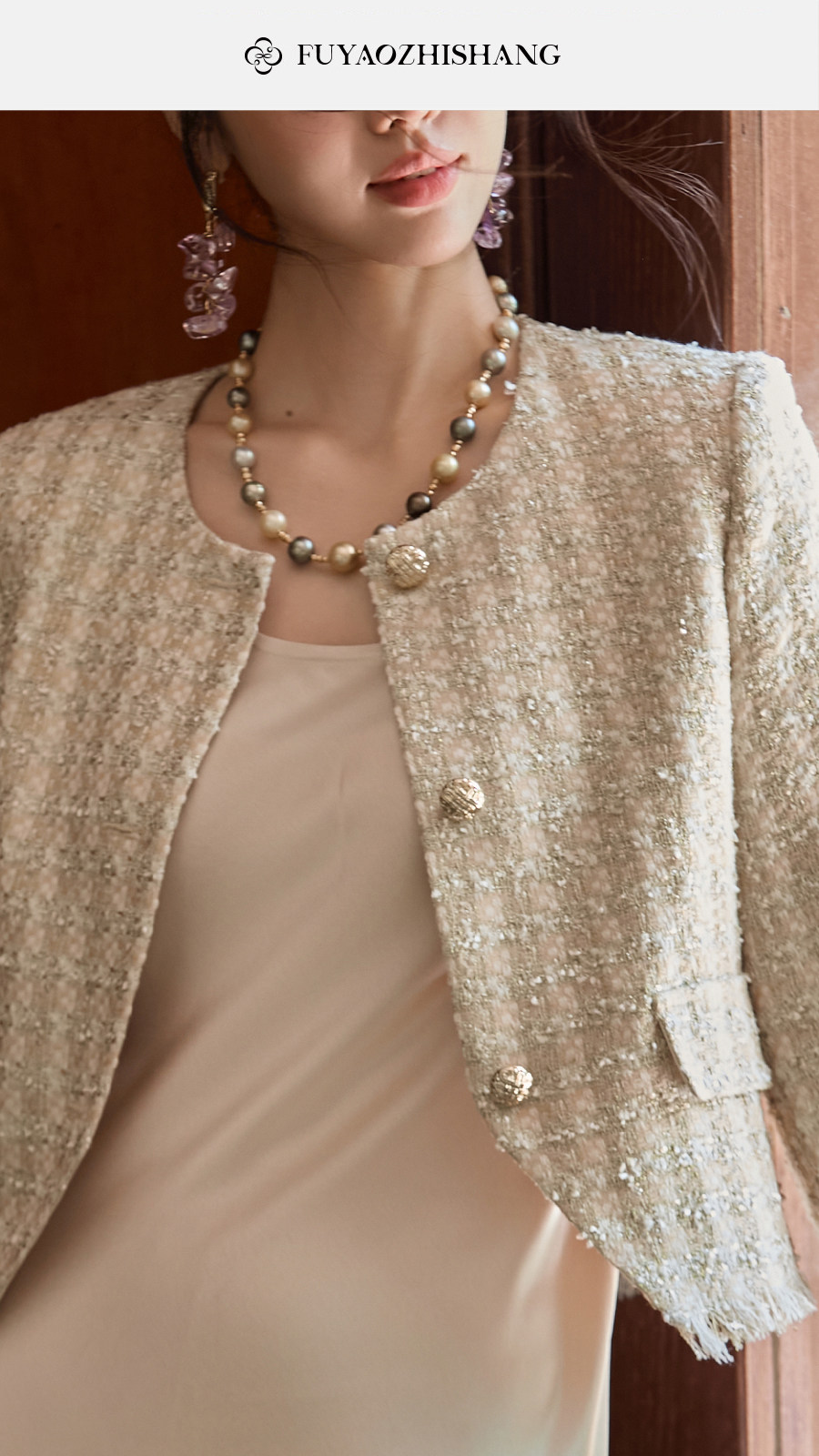 FUYAO扶摇 小香风粗花呢短外套女圆领贵妇名媛气质上衣轻奢风短款