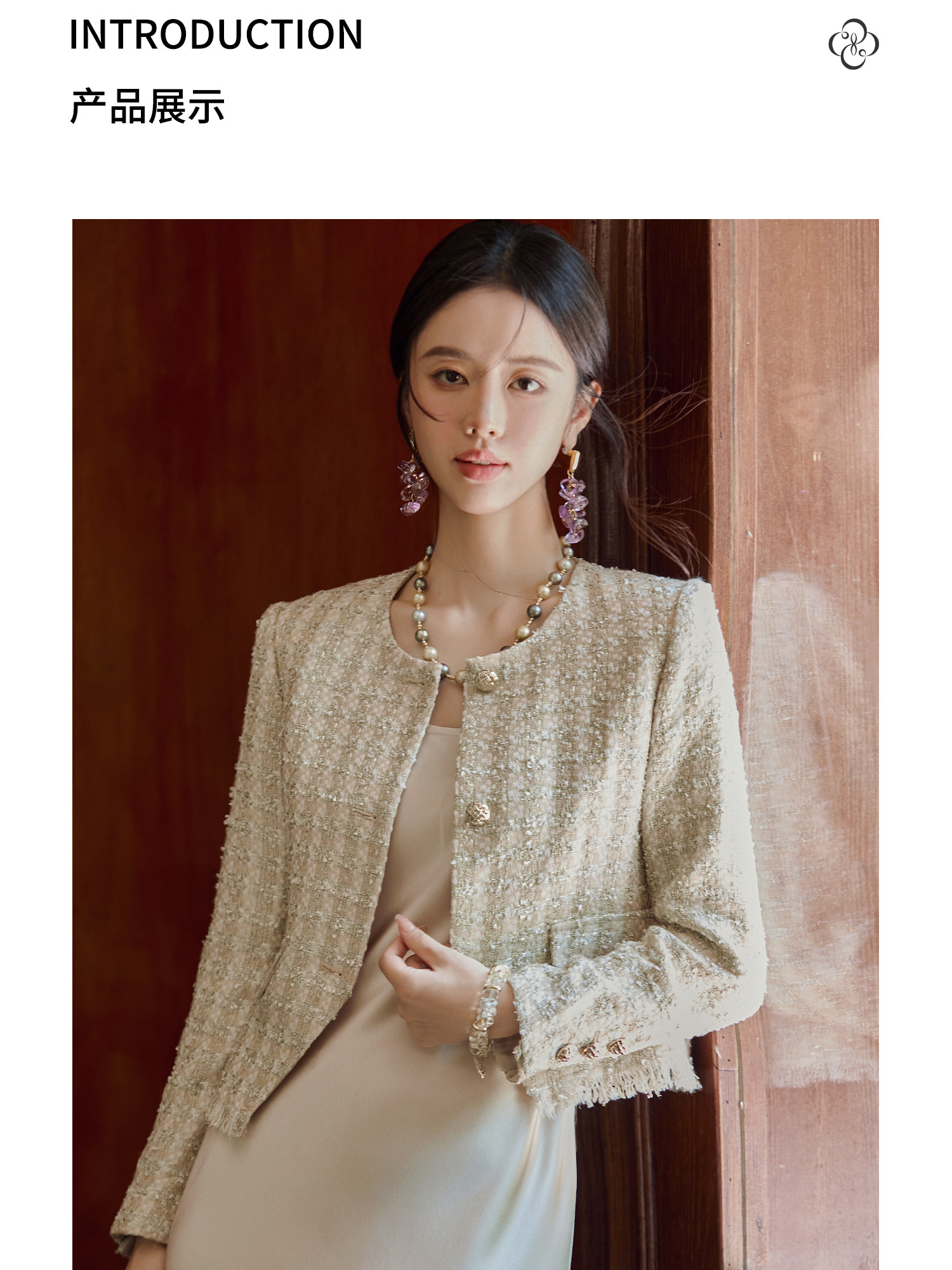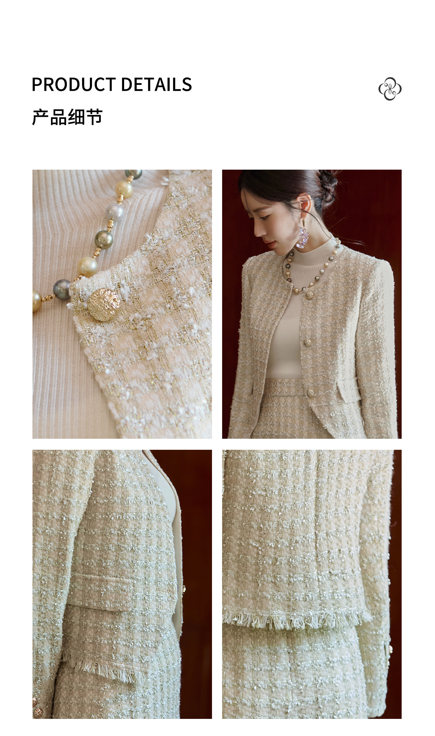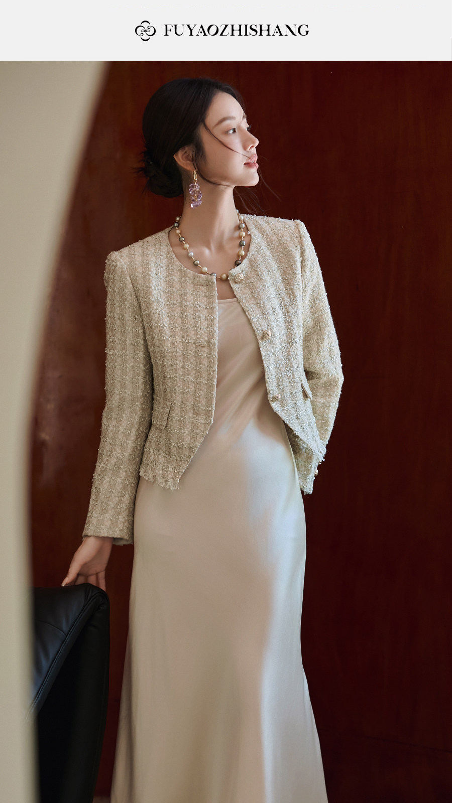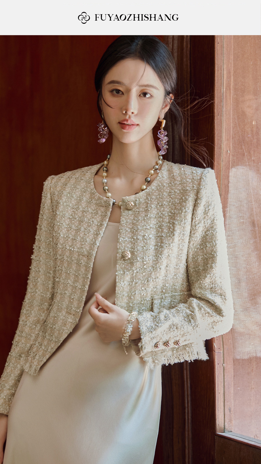 FUYAO扶摇 小香风粗花呢短外套女圆领贵妇名媛气质上衣轻奢风短款