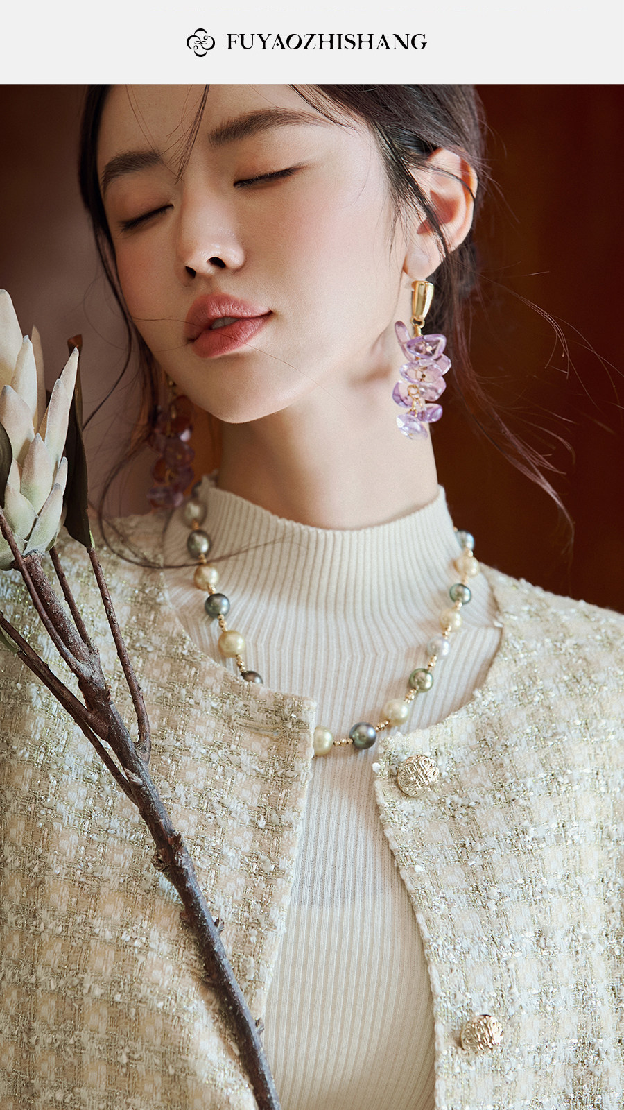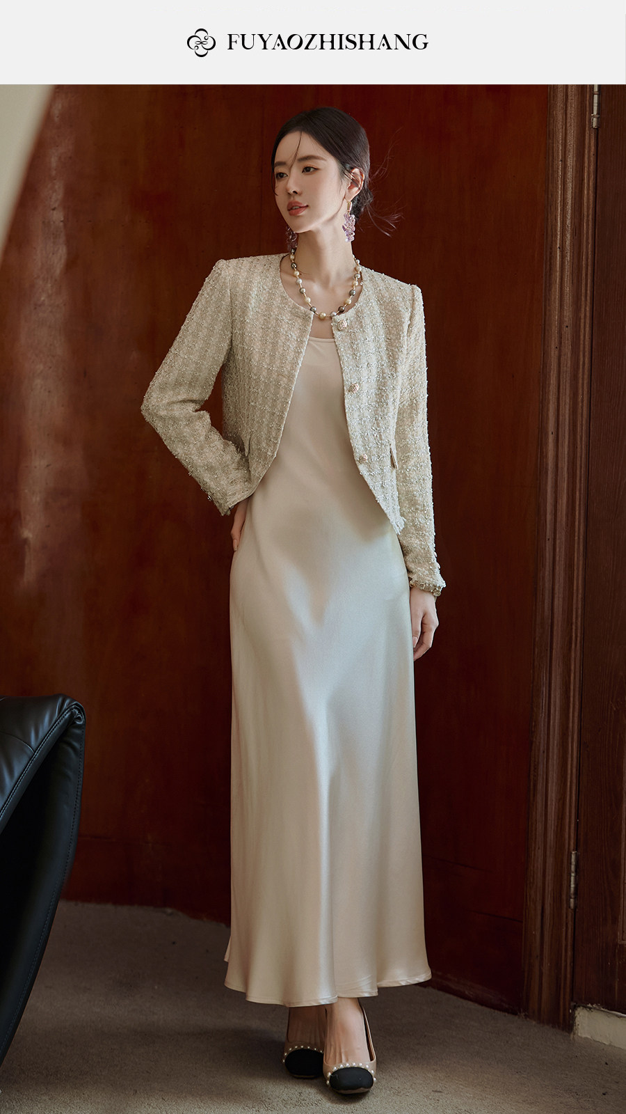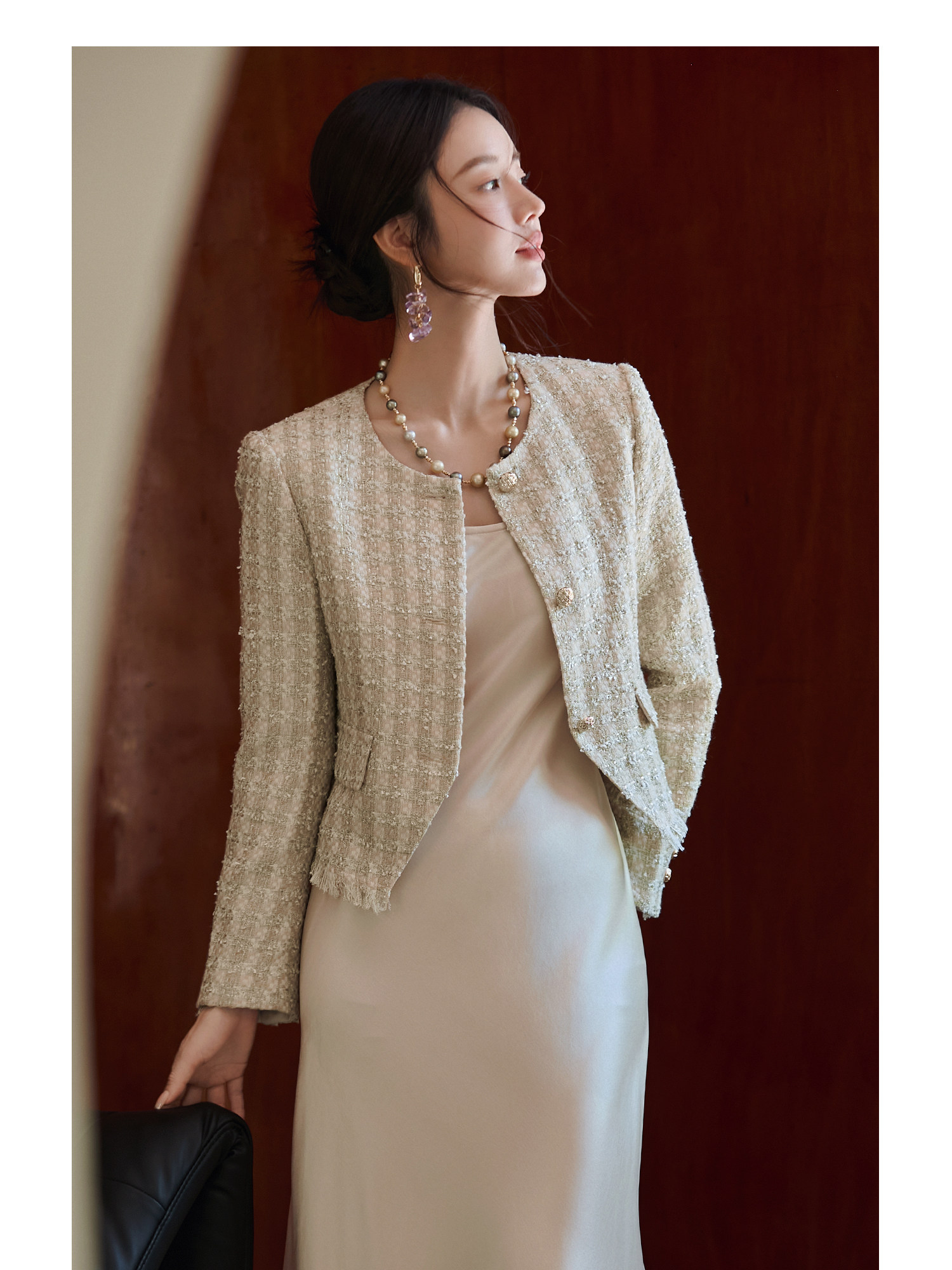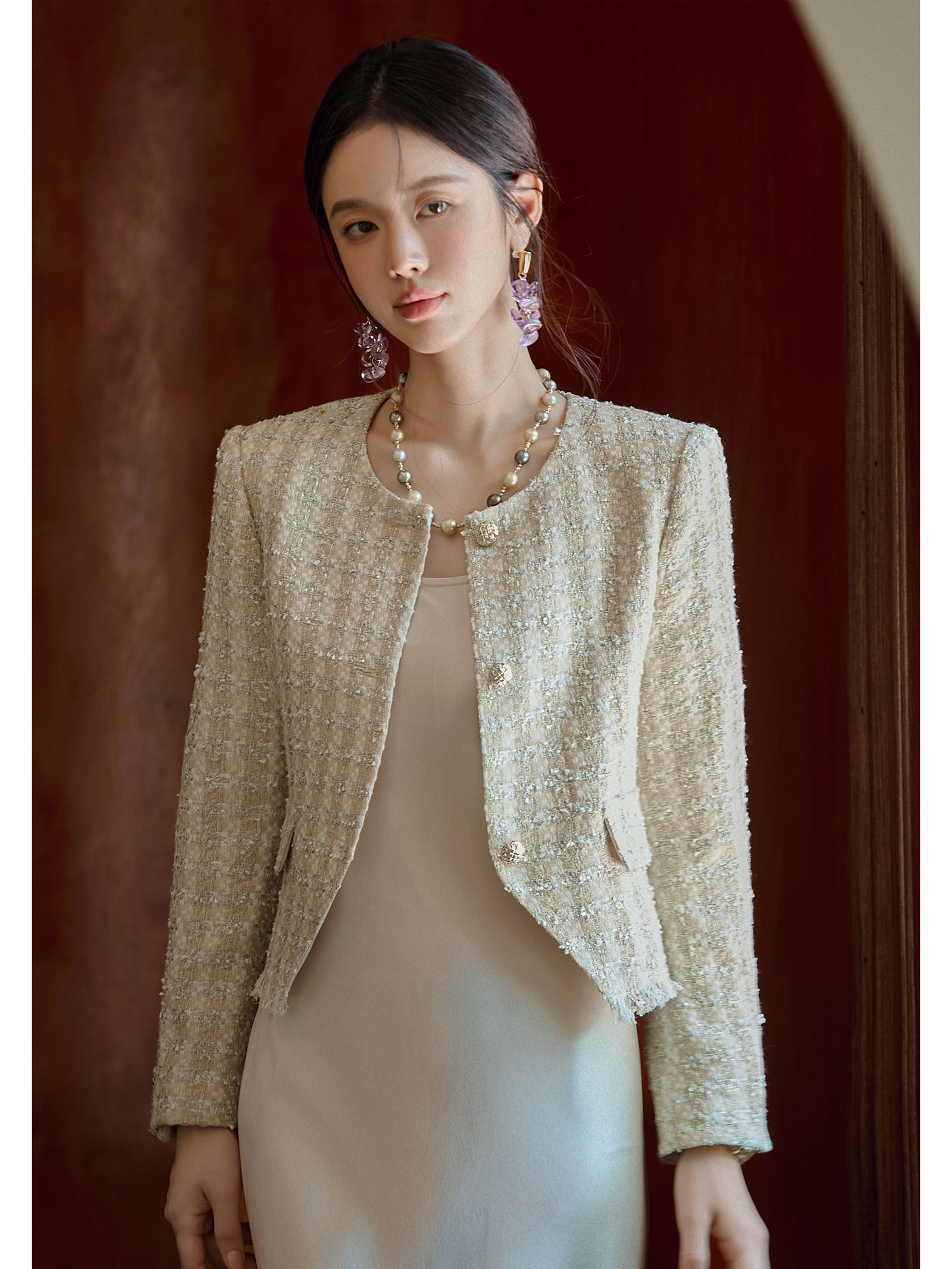 FUYAO扶摇 小香风粗花呢短外套女圆领贵妇名媛气质上衣轻奢风短款