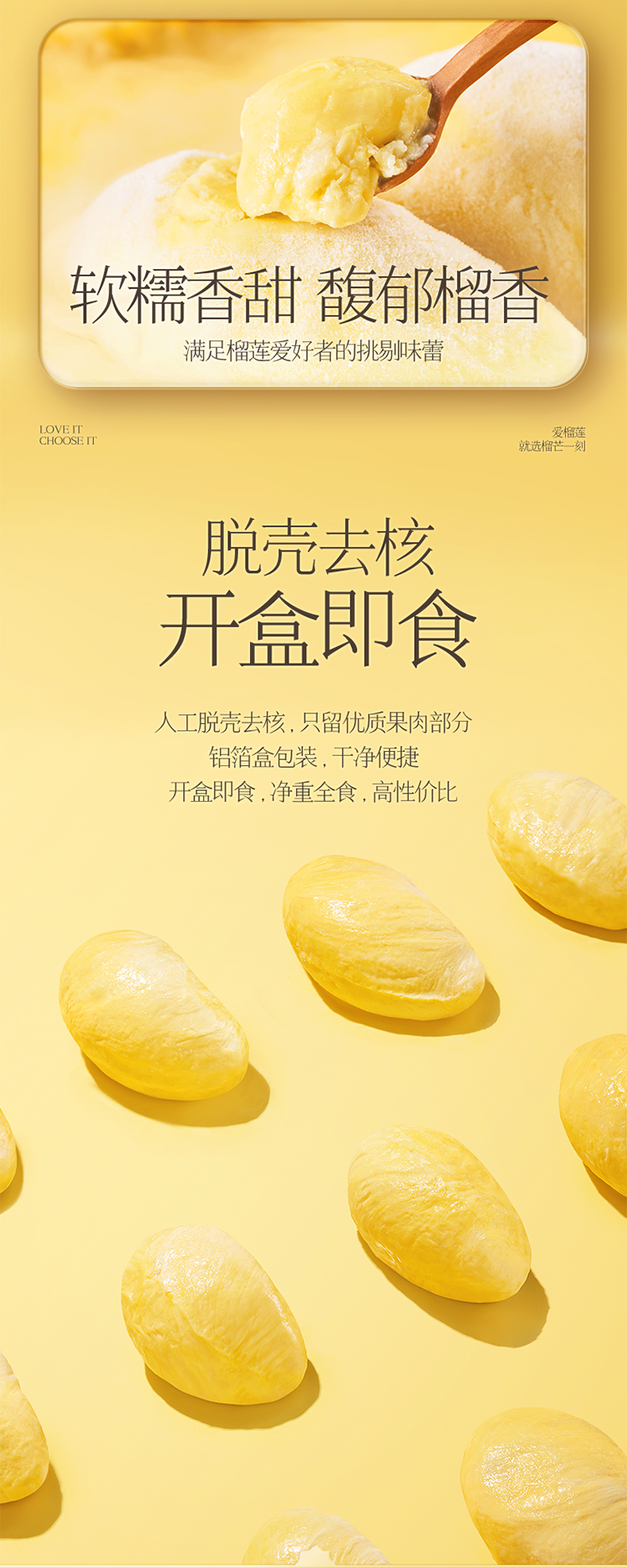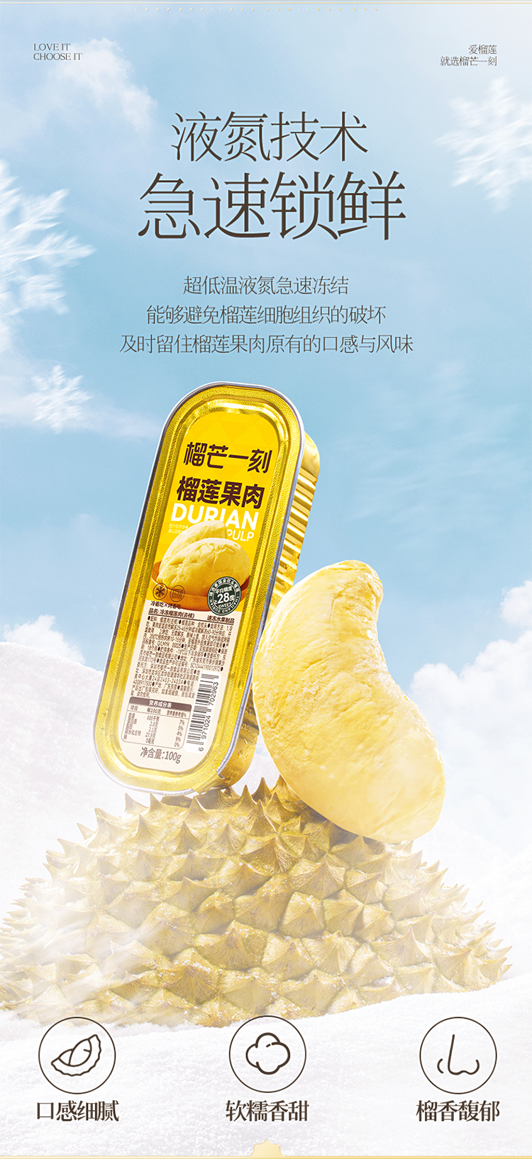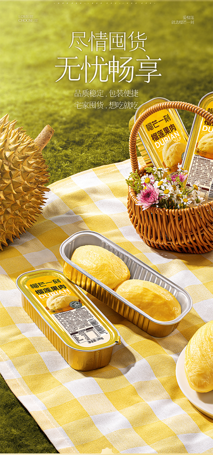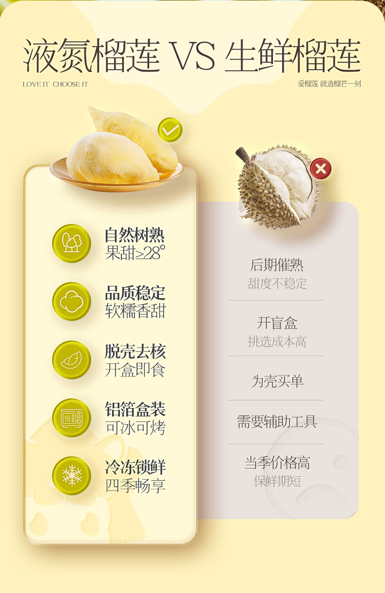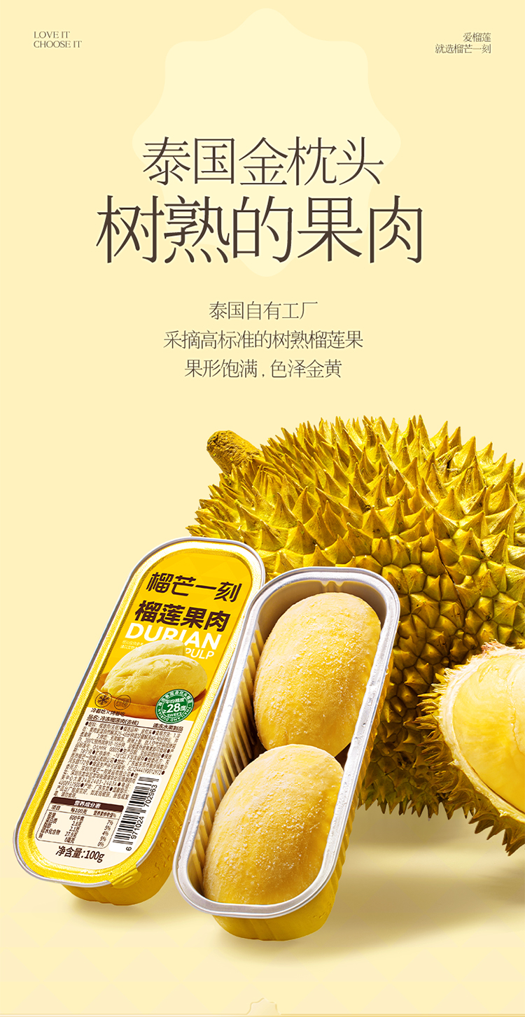 【会员日惊喜券】榴莲果肉小金条100克*5盒 |泰国直采树熟无核榴莲果肉,浓郁香醇
