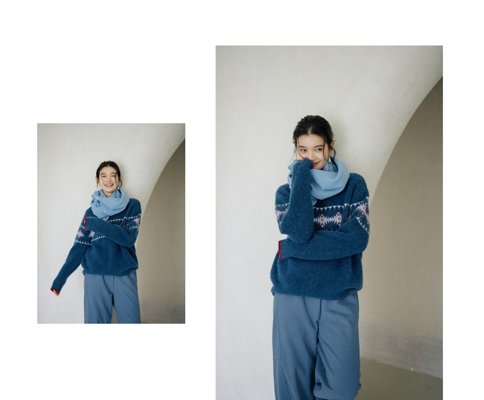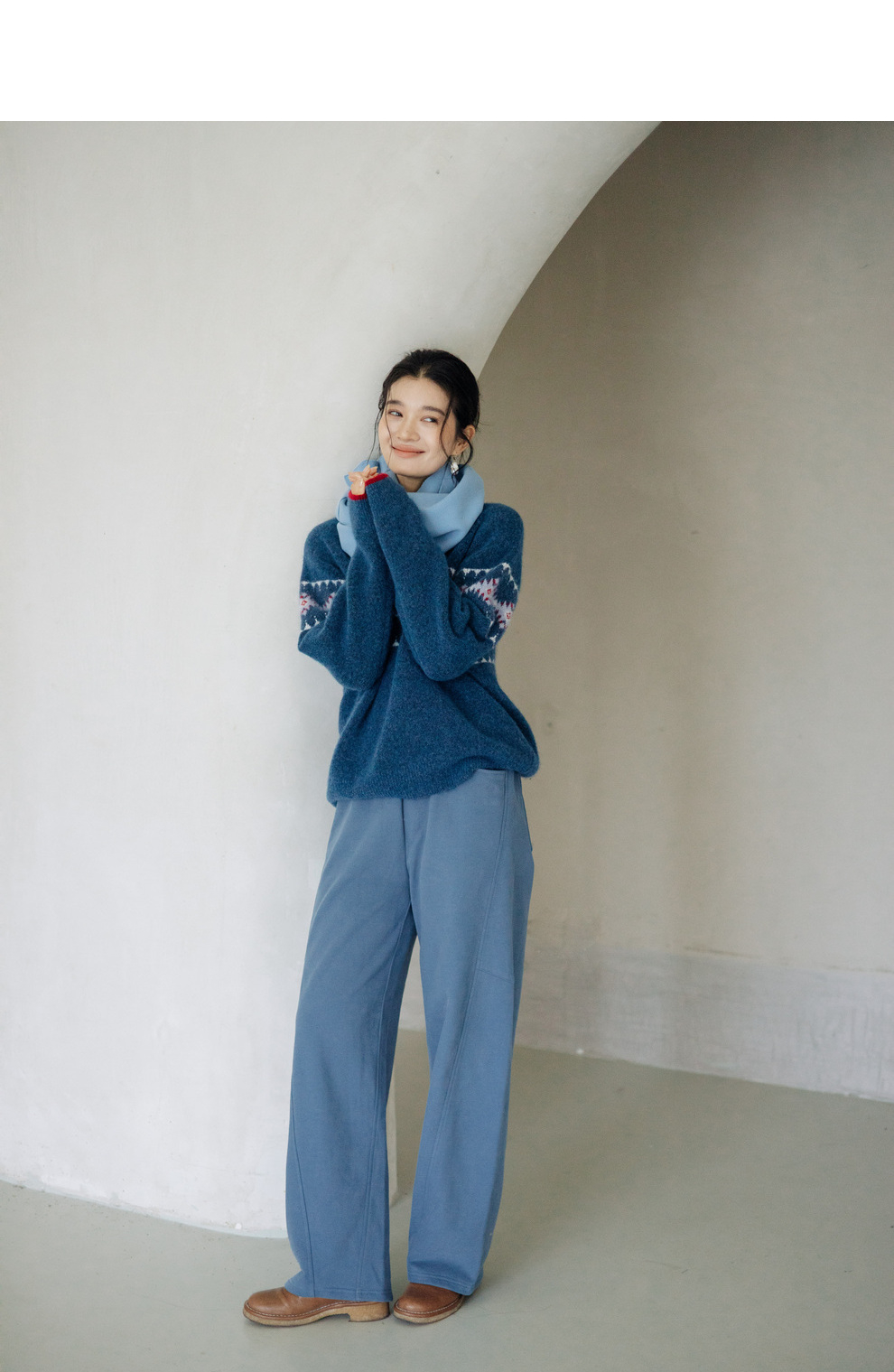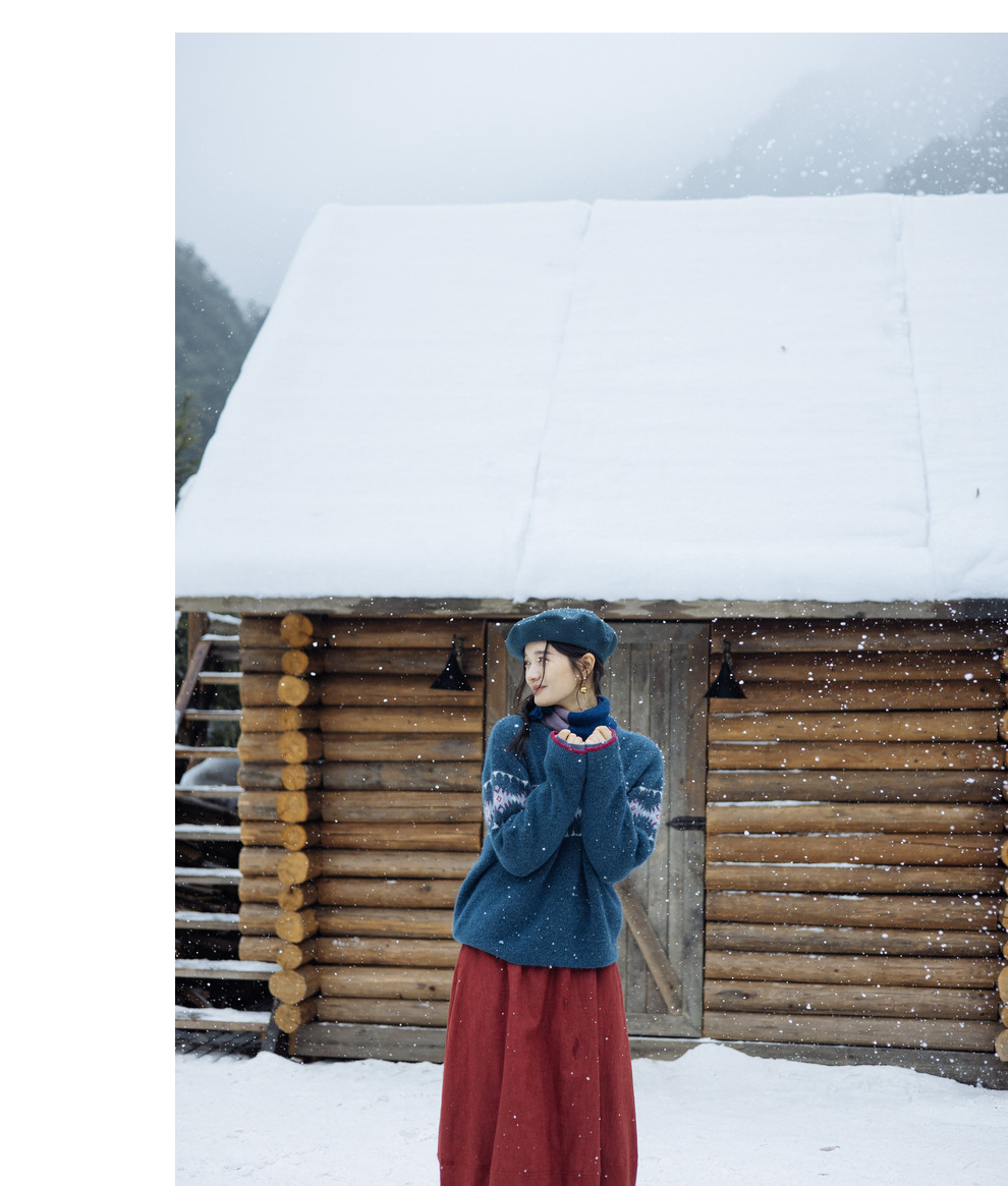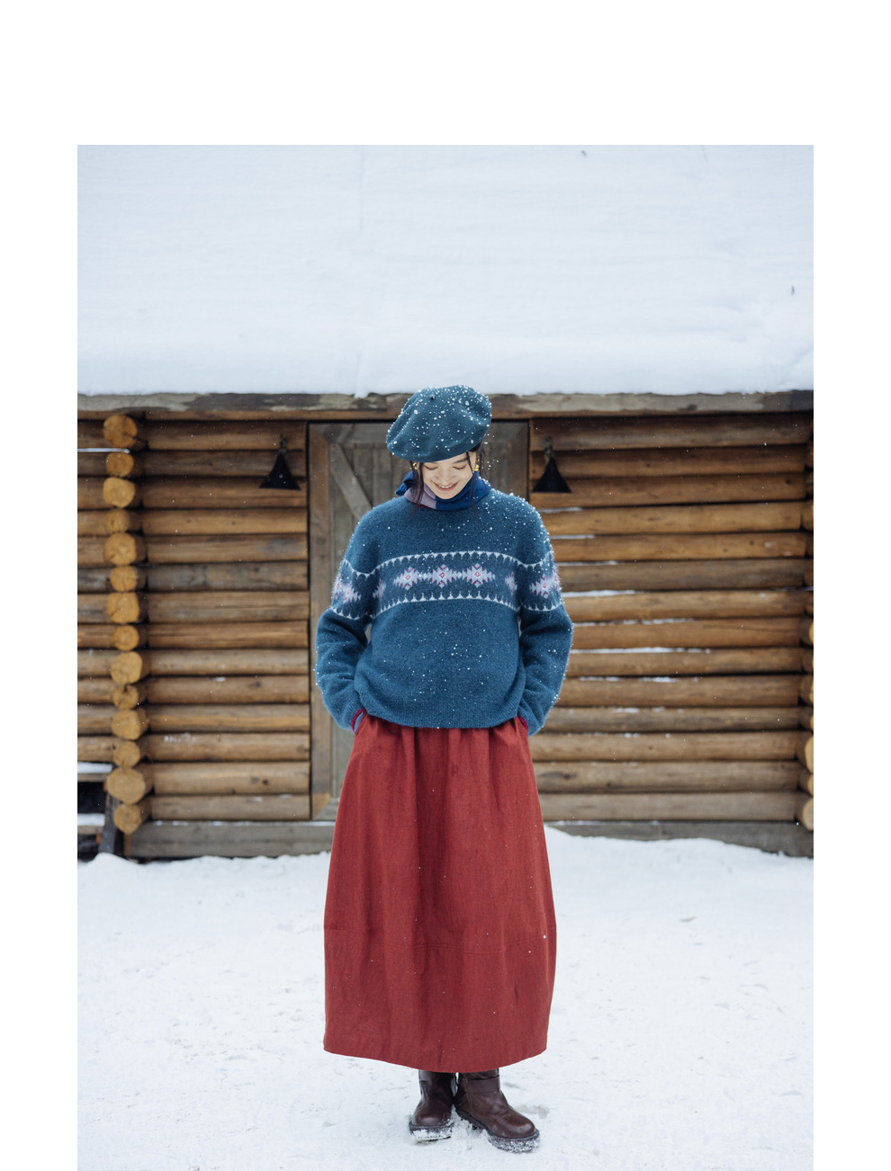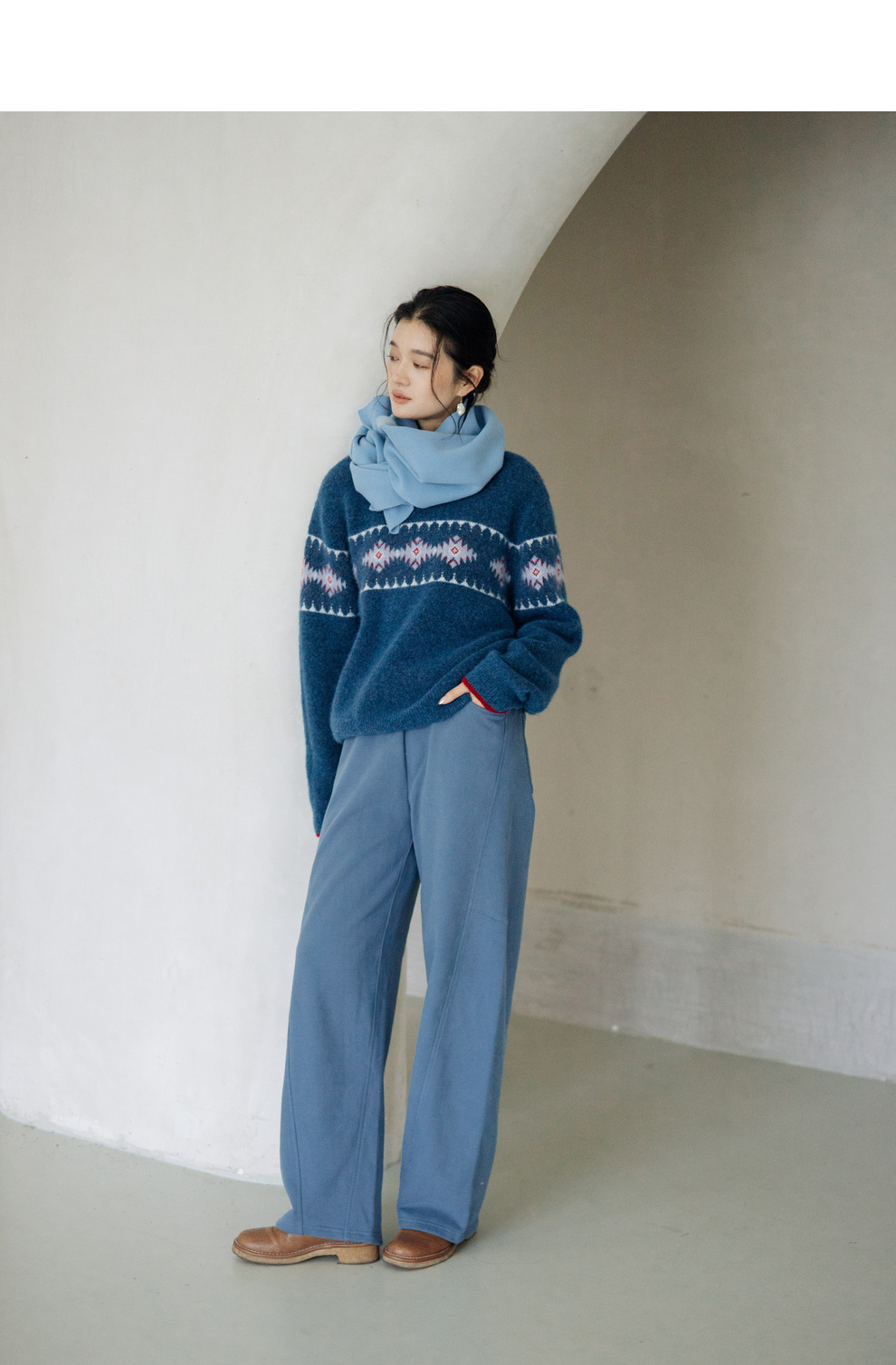绽放旅行女装825朵/秋冬羊驼羊毛经典圆领撞色提花保暖套头毛衣