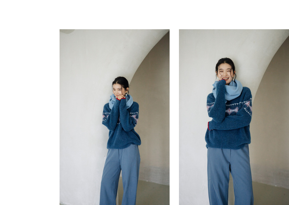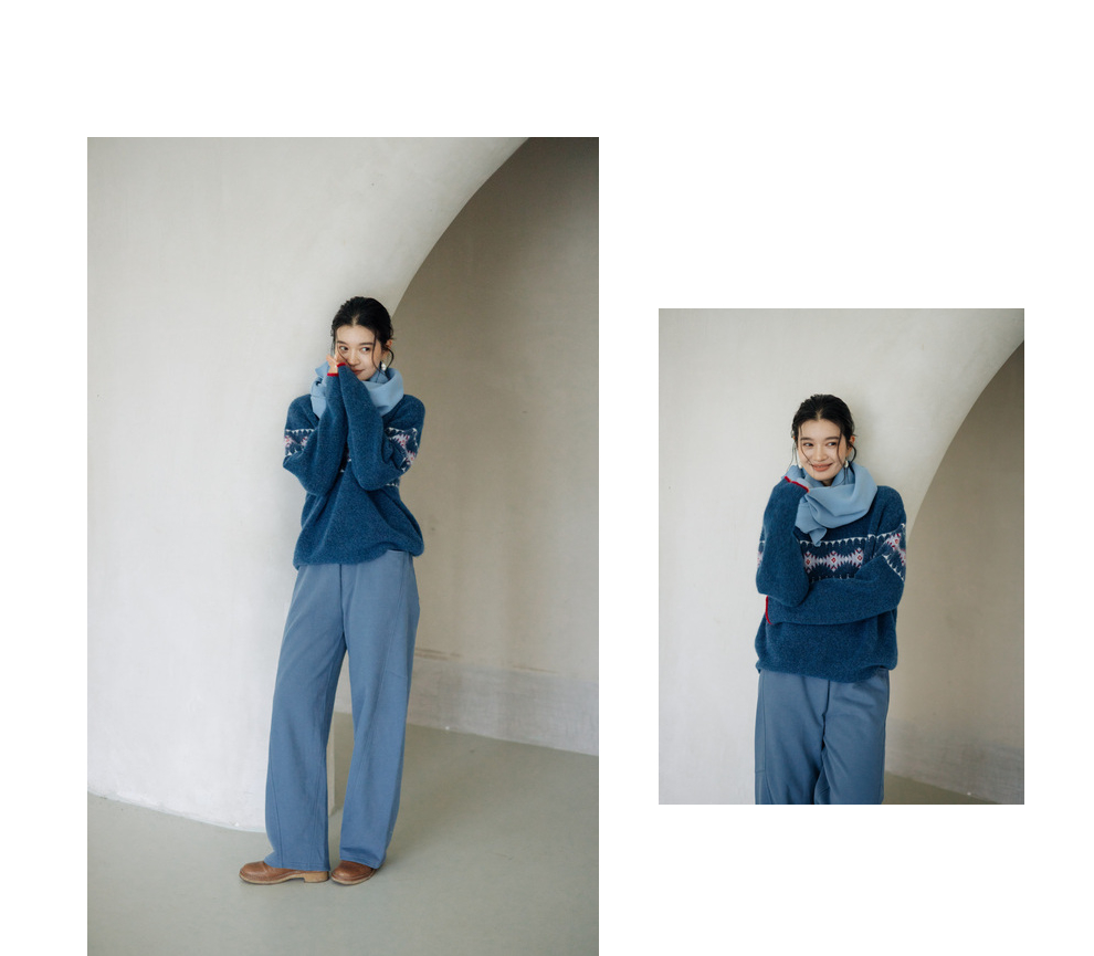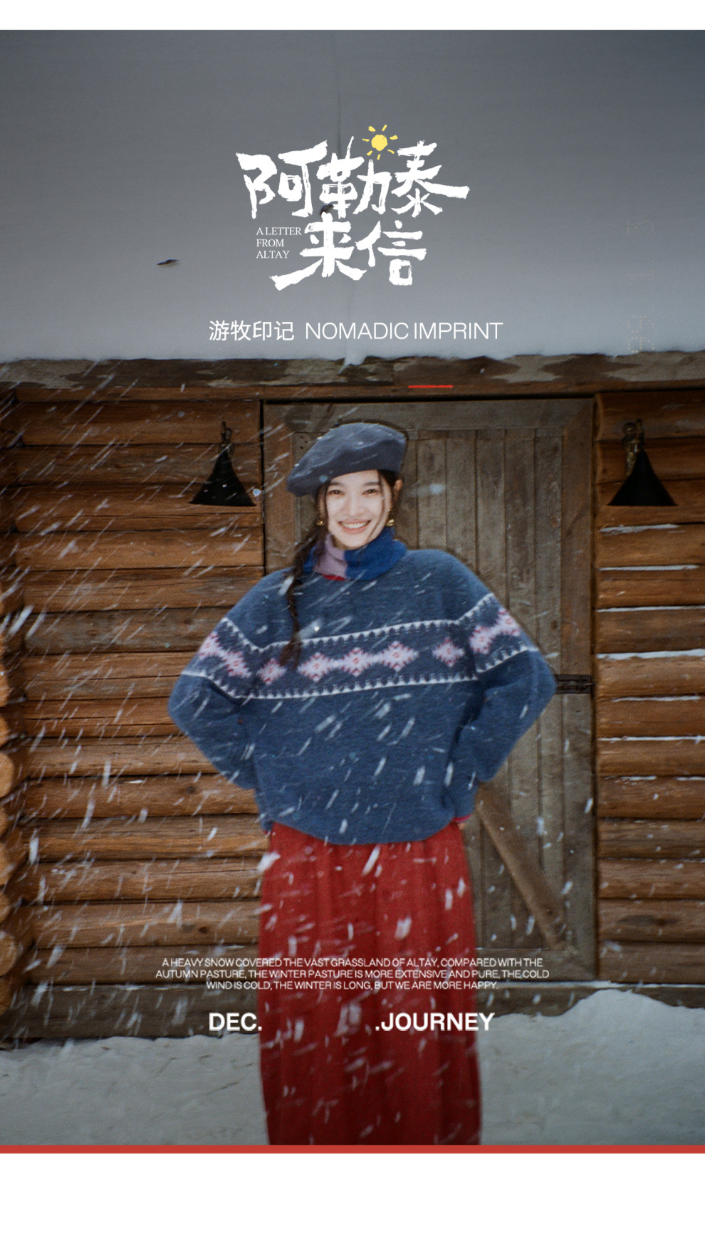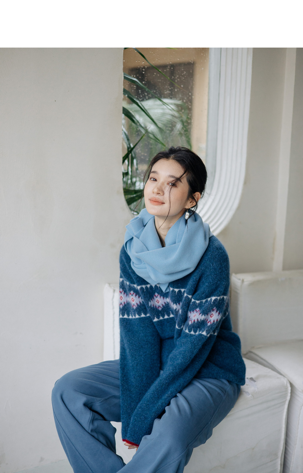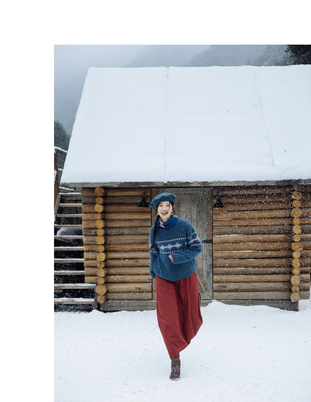 绽放旅行女装825朵/秋冬羊驼羊毛经典圆领撞色提花保暖套头毛衣