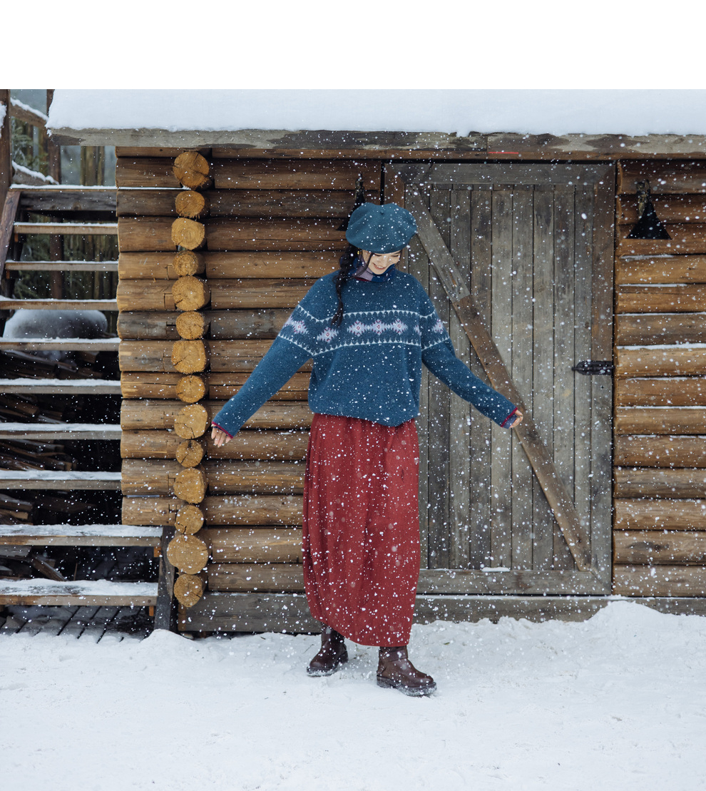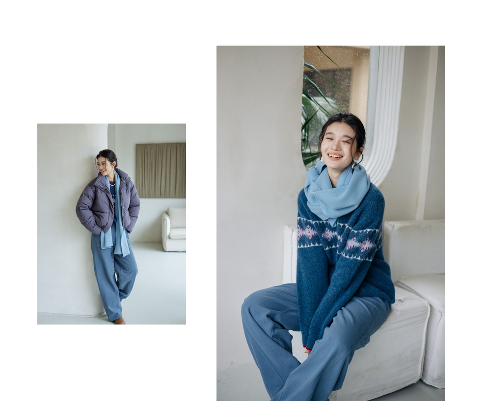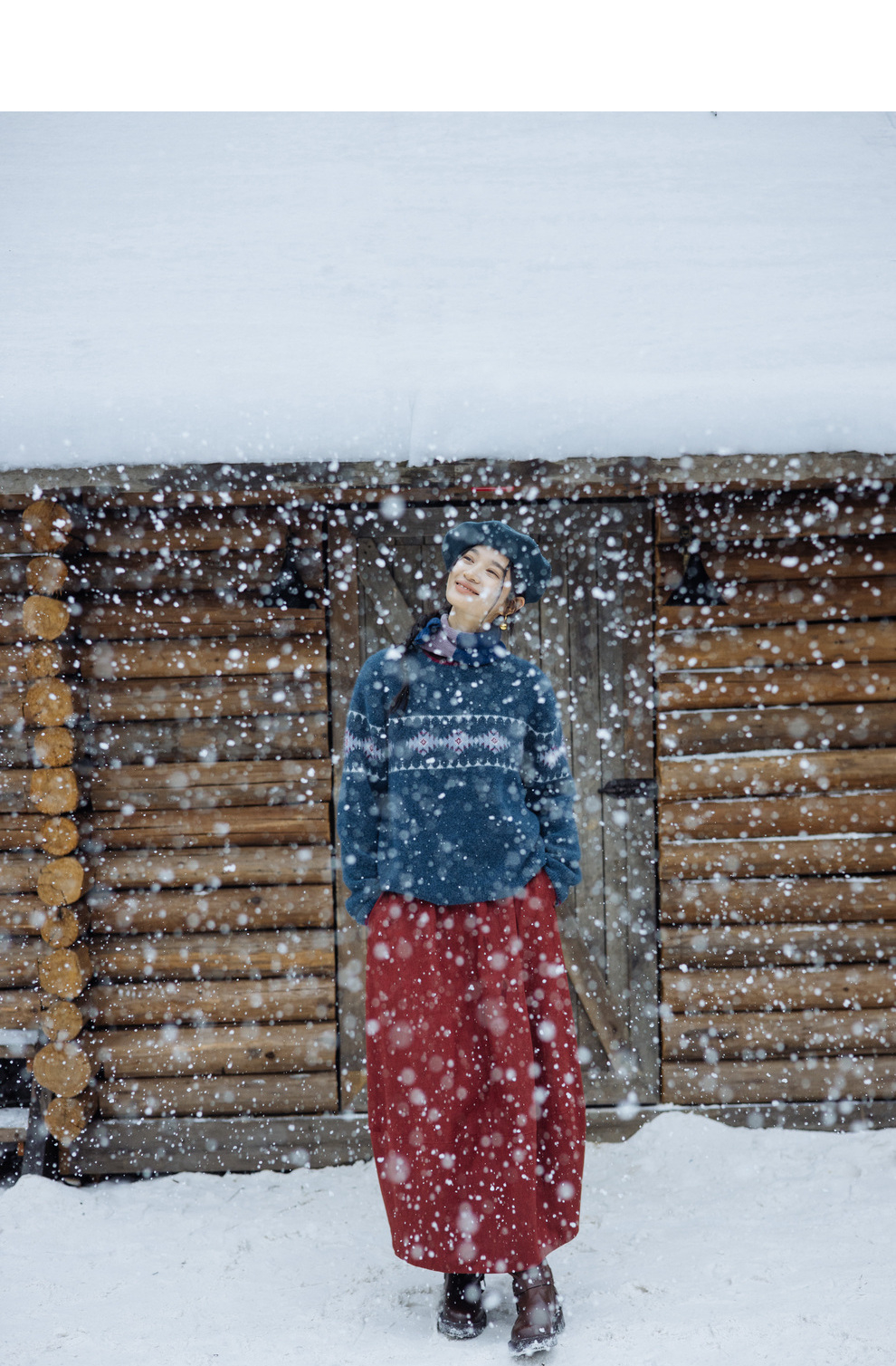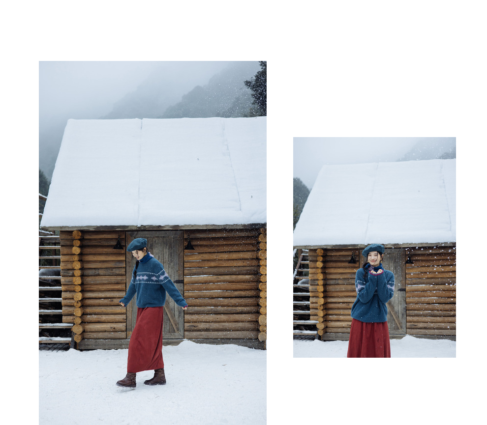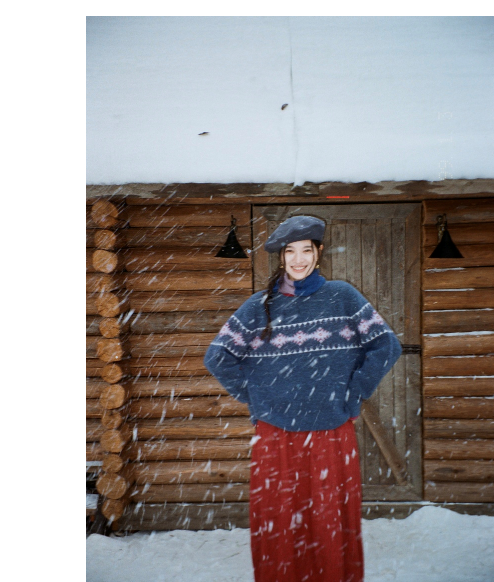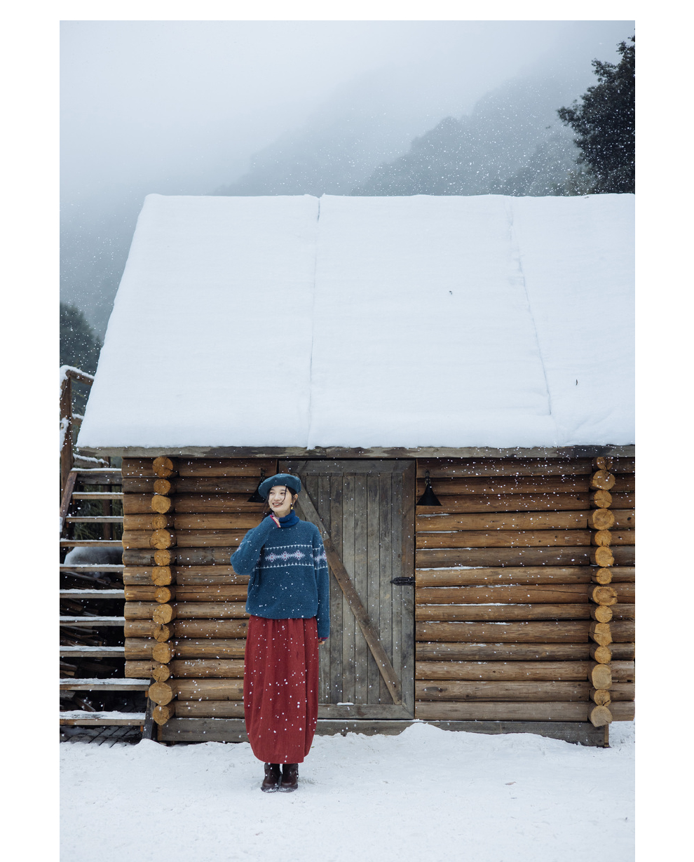 绽放旅行女装825朵/秋冬羊驼羊毛经典圆领撞色提花保暖套头毛衣