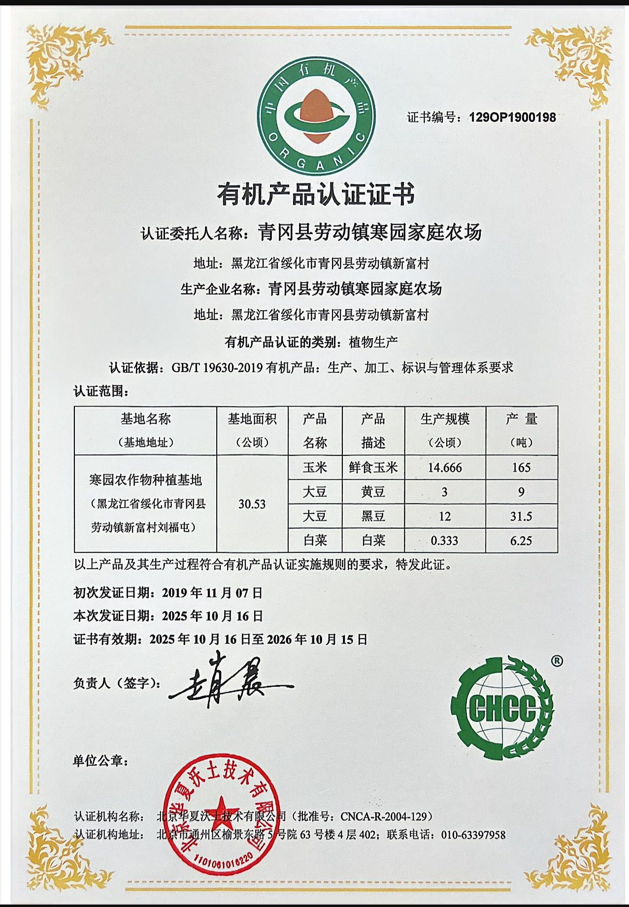 产地:黑龙江省绥化市青冈县寒园有机农场