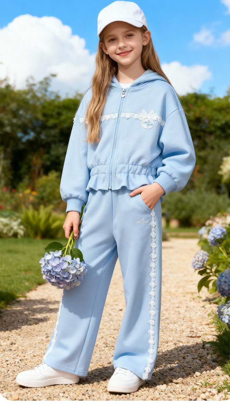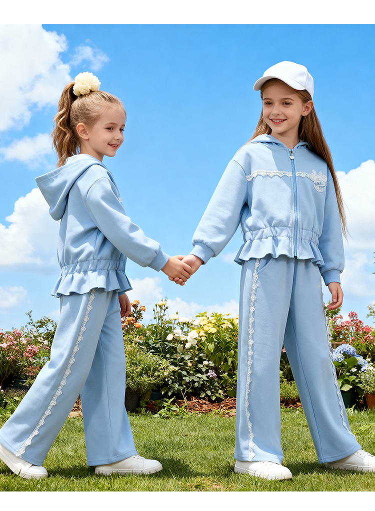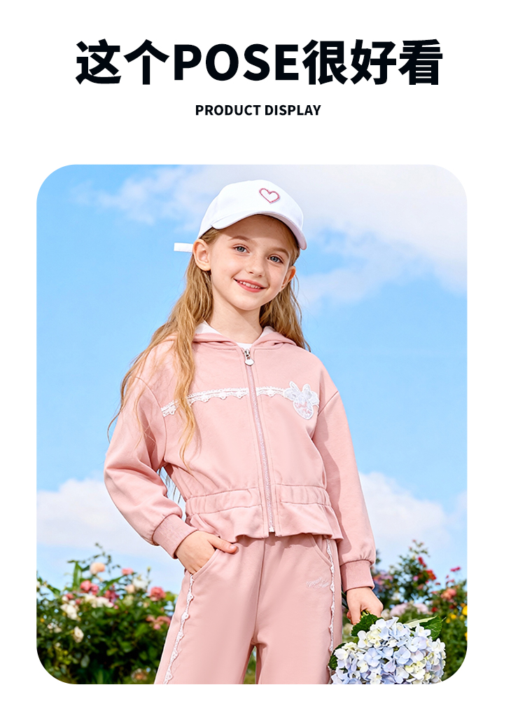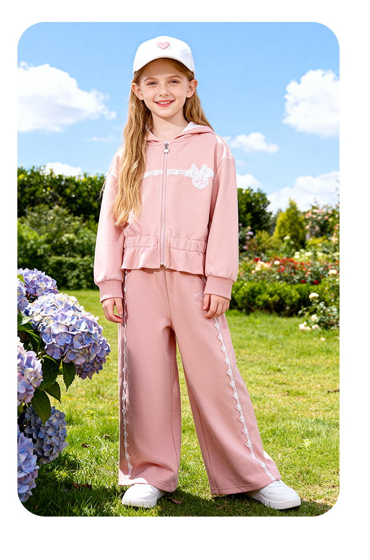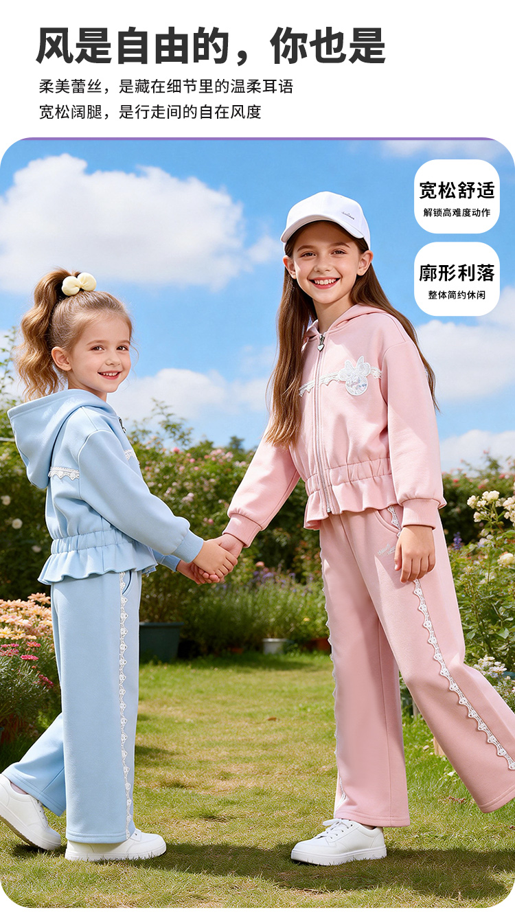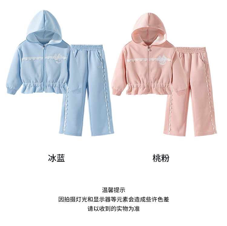迪士尼(Disney)童装女童前开外套带帽套装甜酷休闲运动连帽卫衣阔腿长裤2026春季ZD1FT014