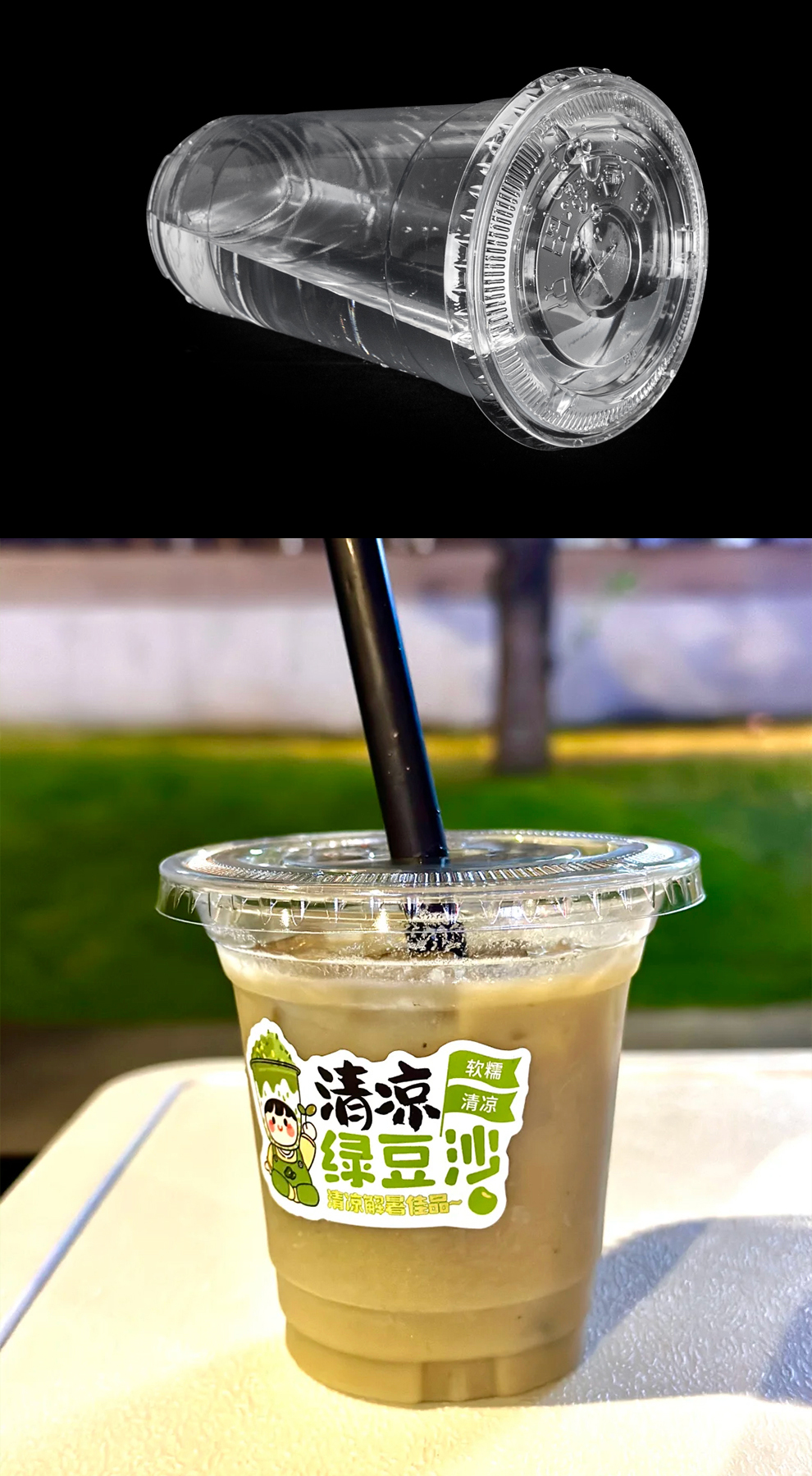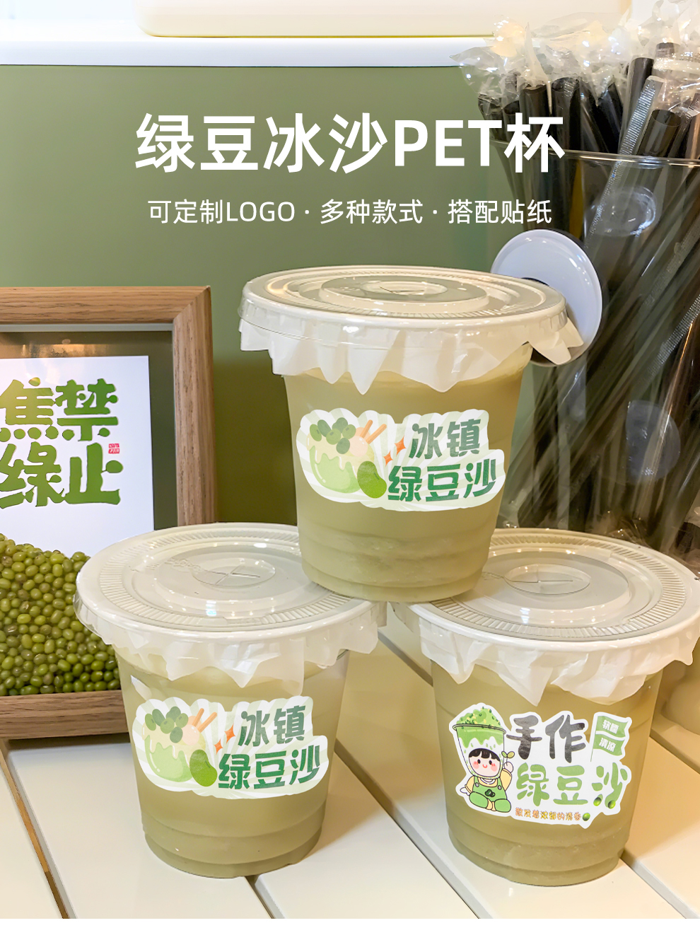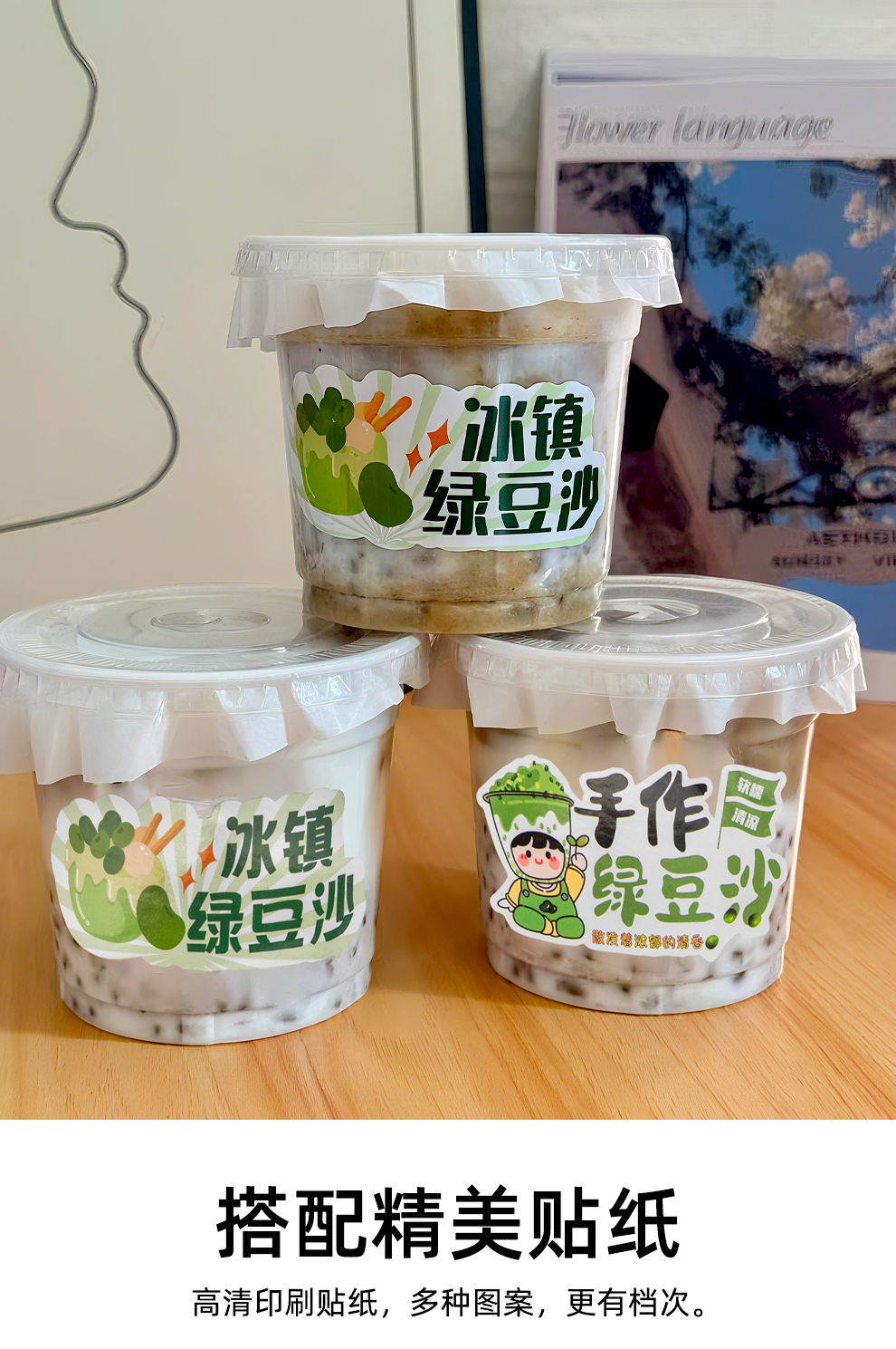 喇叭花绿豆汤打包杯带盖装绿豆沙冰杯一次性饮品摆摊自制PET杯