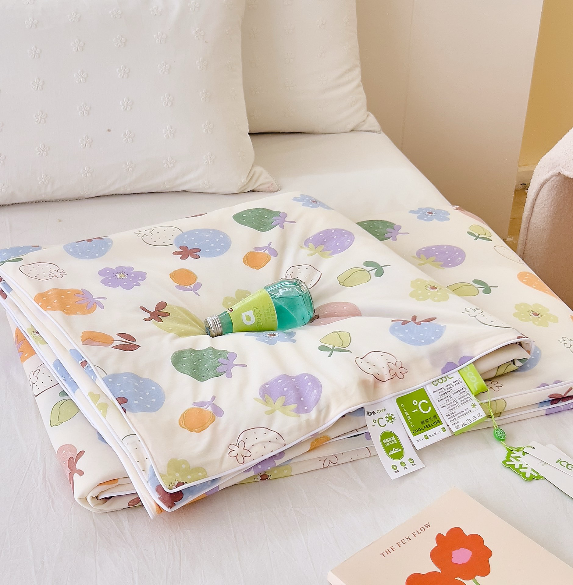 颜值超高的锦氨凉感丝双面印花小冰皮夏被