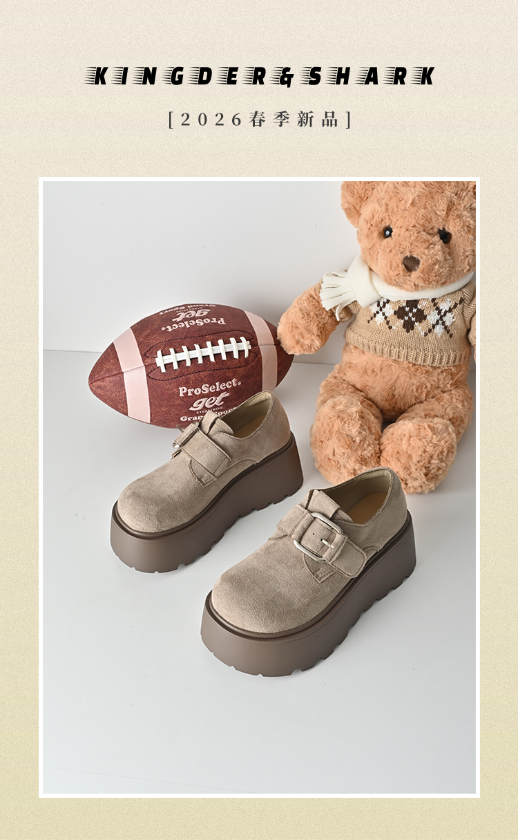 经典鲨2026年专柜新品百搭圆头魔术贴厚底轻便勃肯鞋单鞋春KW392-617021