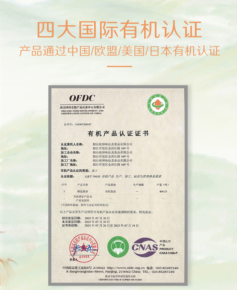 禾然有机酱油500mlx2 真实有机配方 四国有机认证