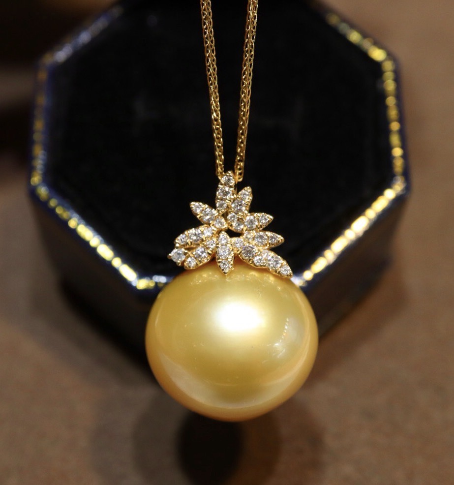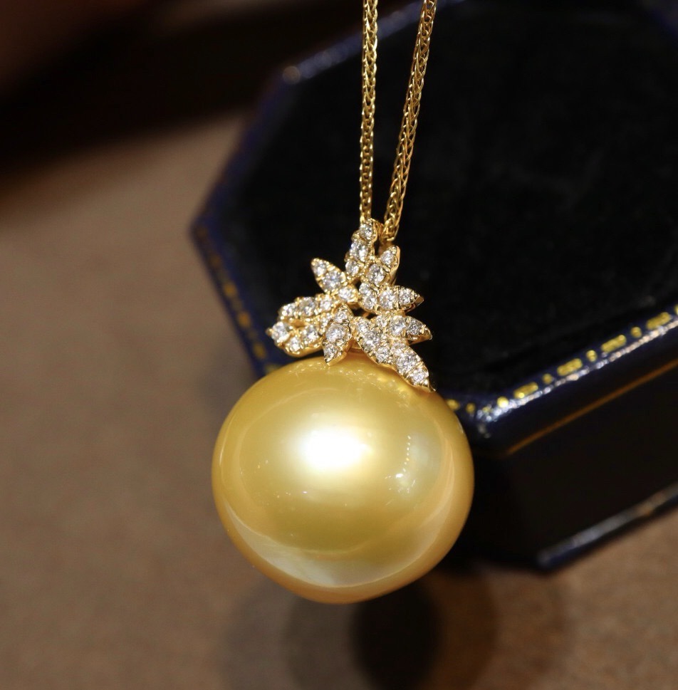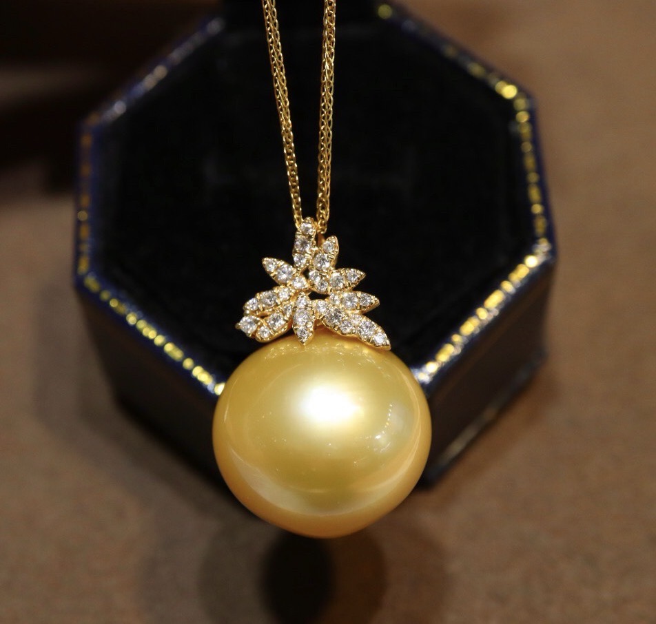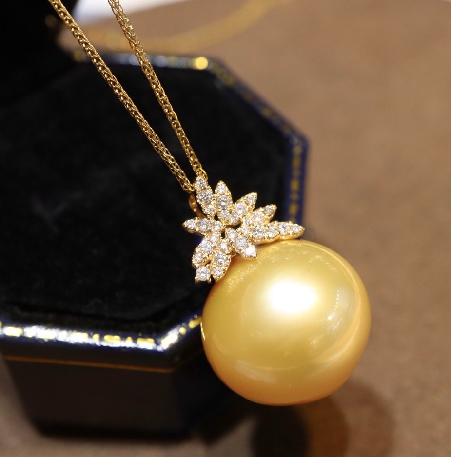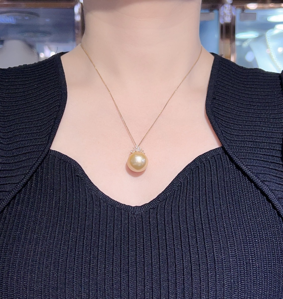 519009 南洋金珍珠巨无霸吊坠 18K金钻石镶嵌,珠子近正圆强光极微瑕,上身效果非常大气上档次 大小17.3mm 超值价💰12300