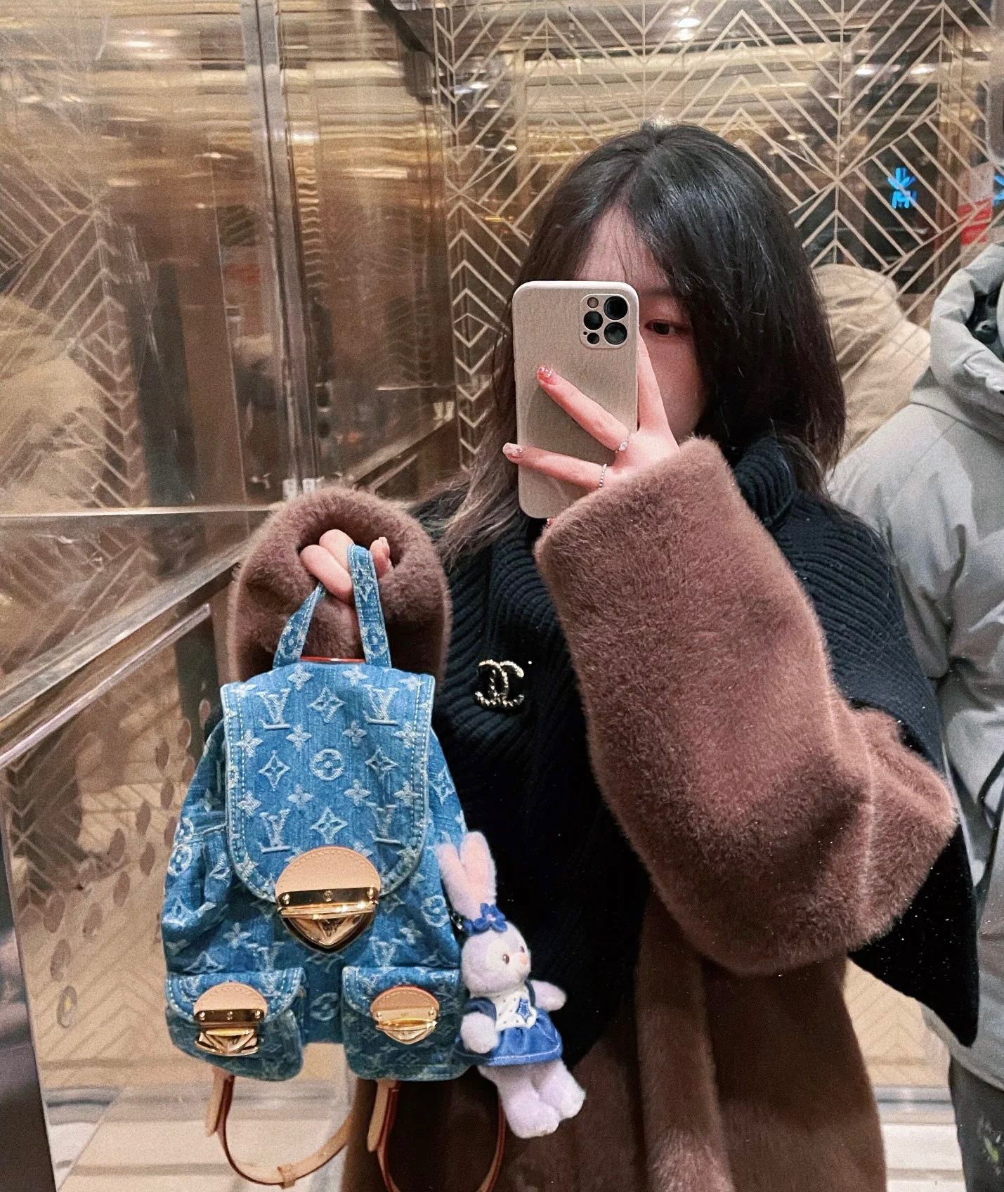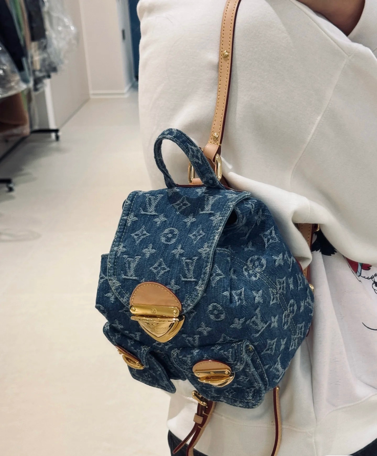 双肩包丹宁牛仔双肩包 牛仔材质不怕刮蹭 手感很舒适 自重很轻松弛感十足 A级全钢五金,进口原厂面料