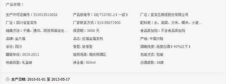 【12年老酒金六福】 红福 浓香型 白酒 52度 五粮液出品