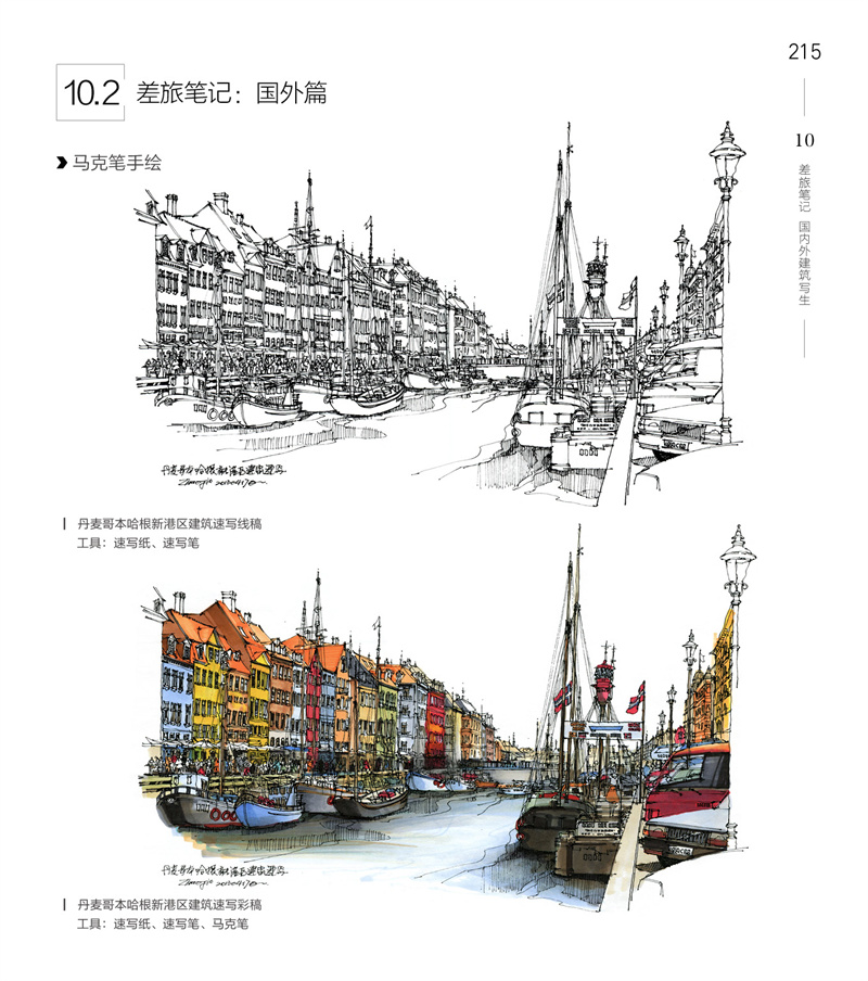3.灵活生动,延展性强。照片写生方法、差旅笔记等知识点供读者学习与欣赏。手绘步骤案例讲解是技法类书籍的必有内容,同时介绍了建筑手绘色彩搭配方法,并且讲述了照片写生方法、案例,照片画法对外出写生、旅行图画起到基础作用,对今后设计素材的积累很重要。