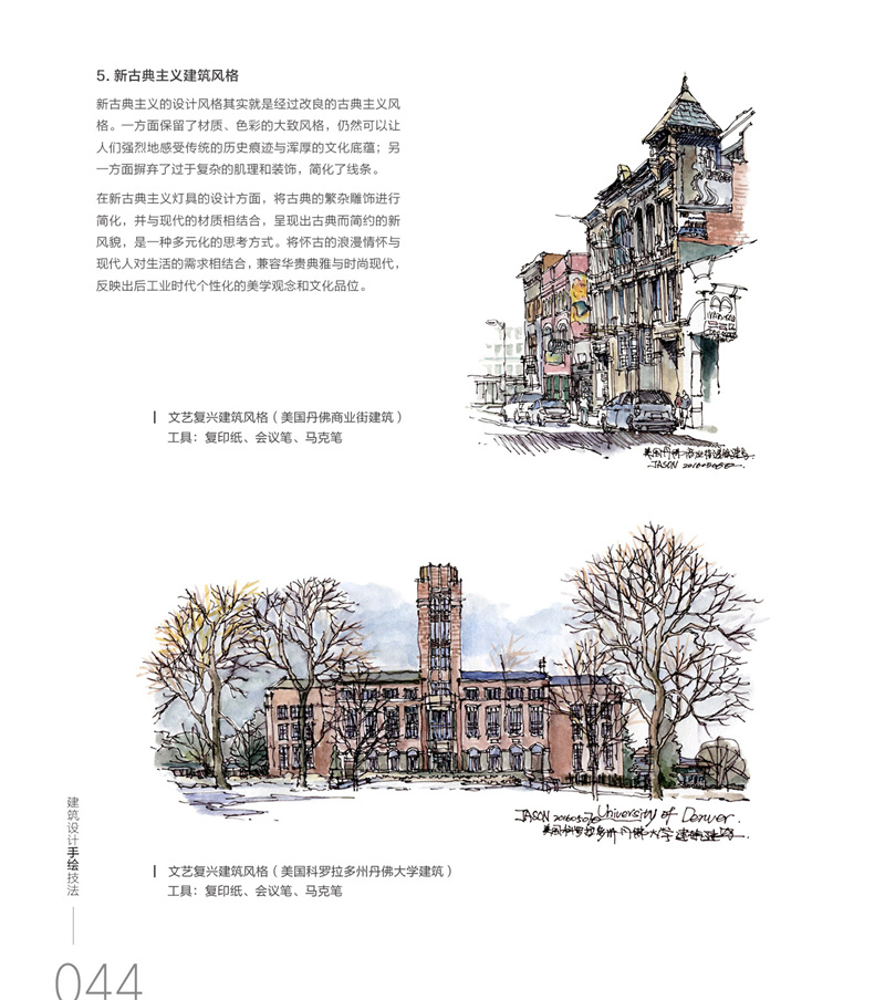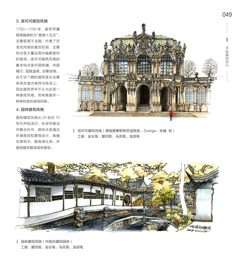 1.内容丰富,多样性呈现。本书对建筑手绘案例表达,从现代、中式、欧式等风格,到商业、办公、医疗、文化、教育、体育类等业态均有呈现,多样性的呈现增加了此书的参考价值。