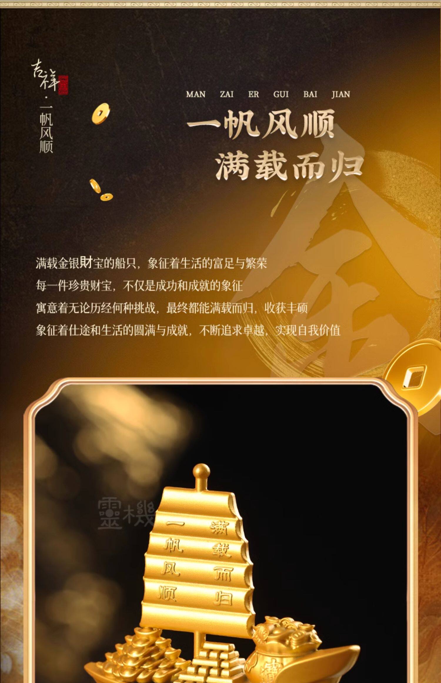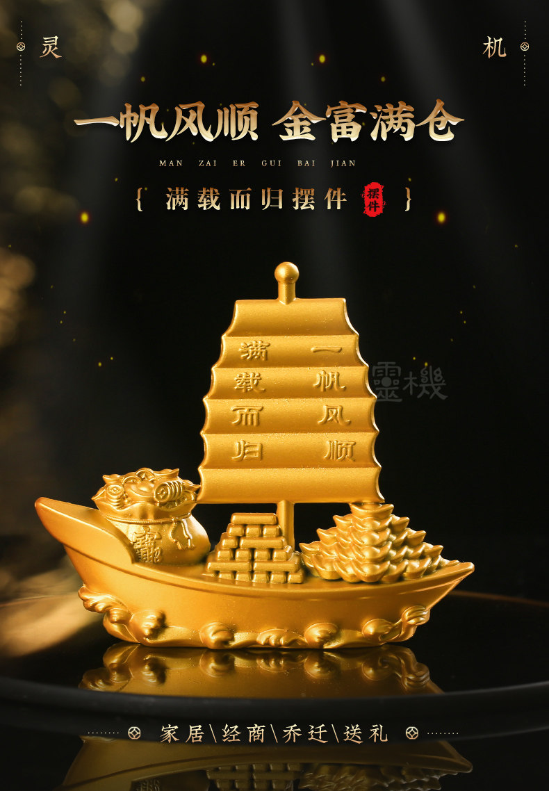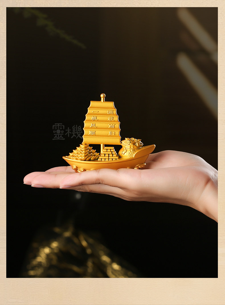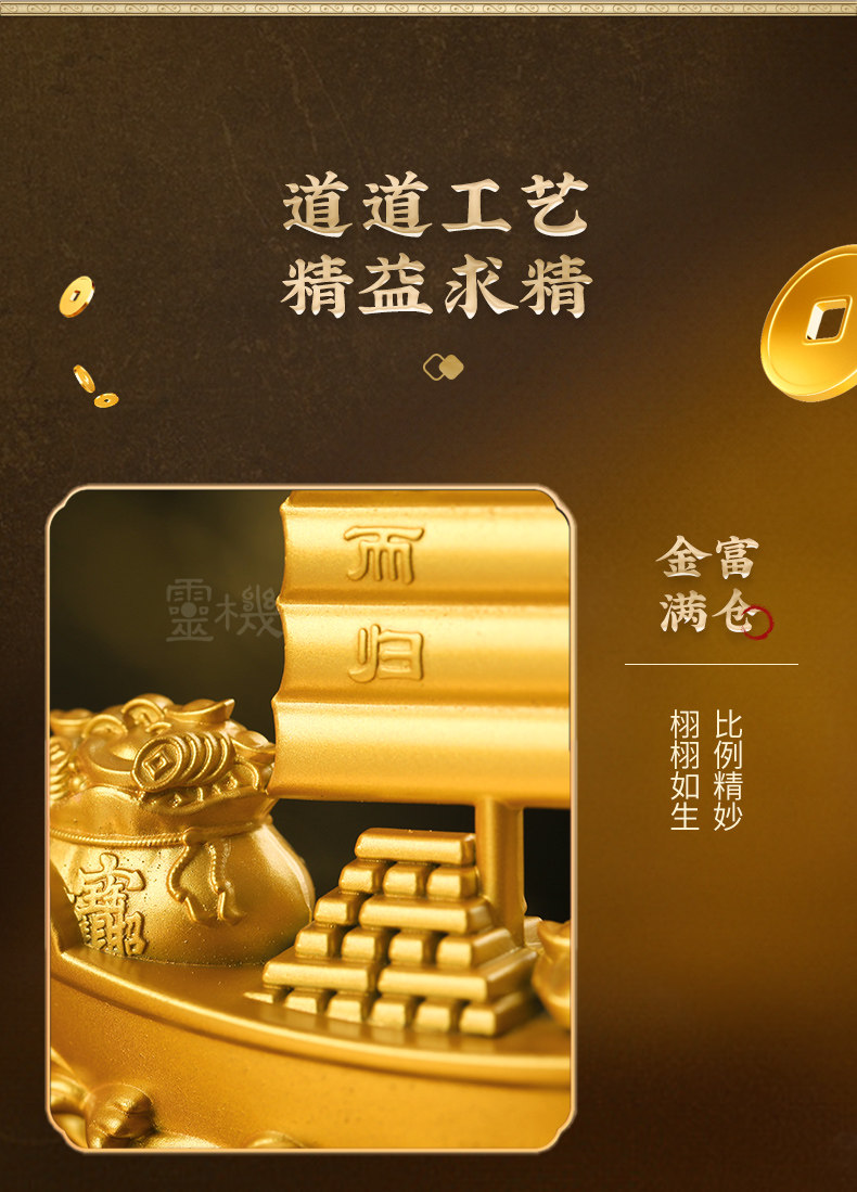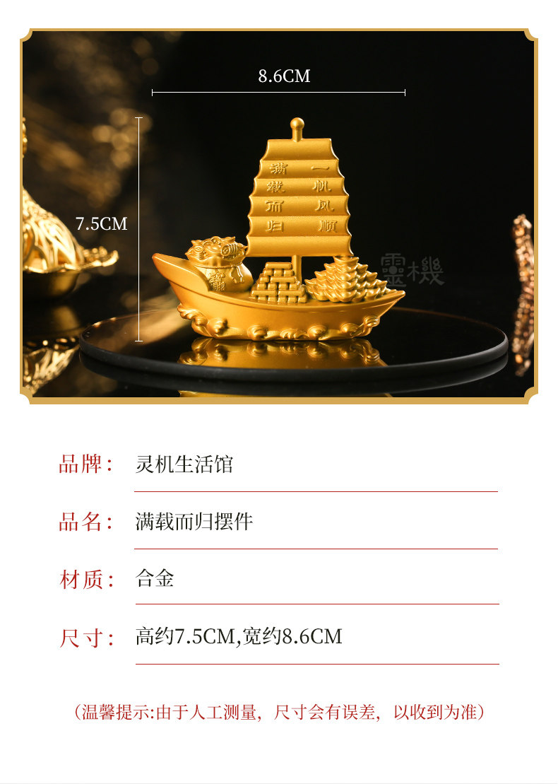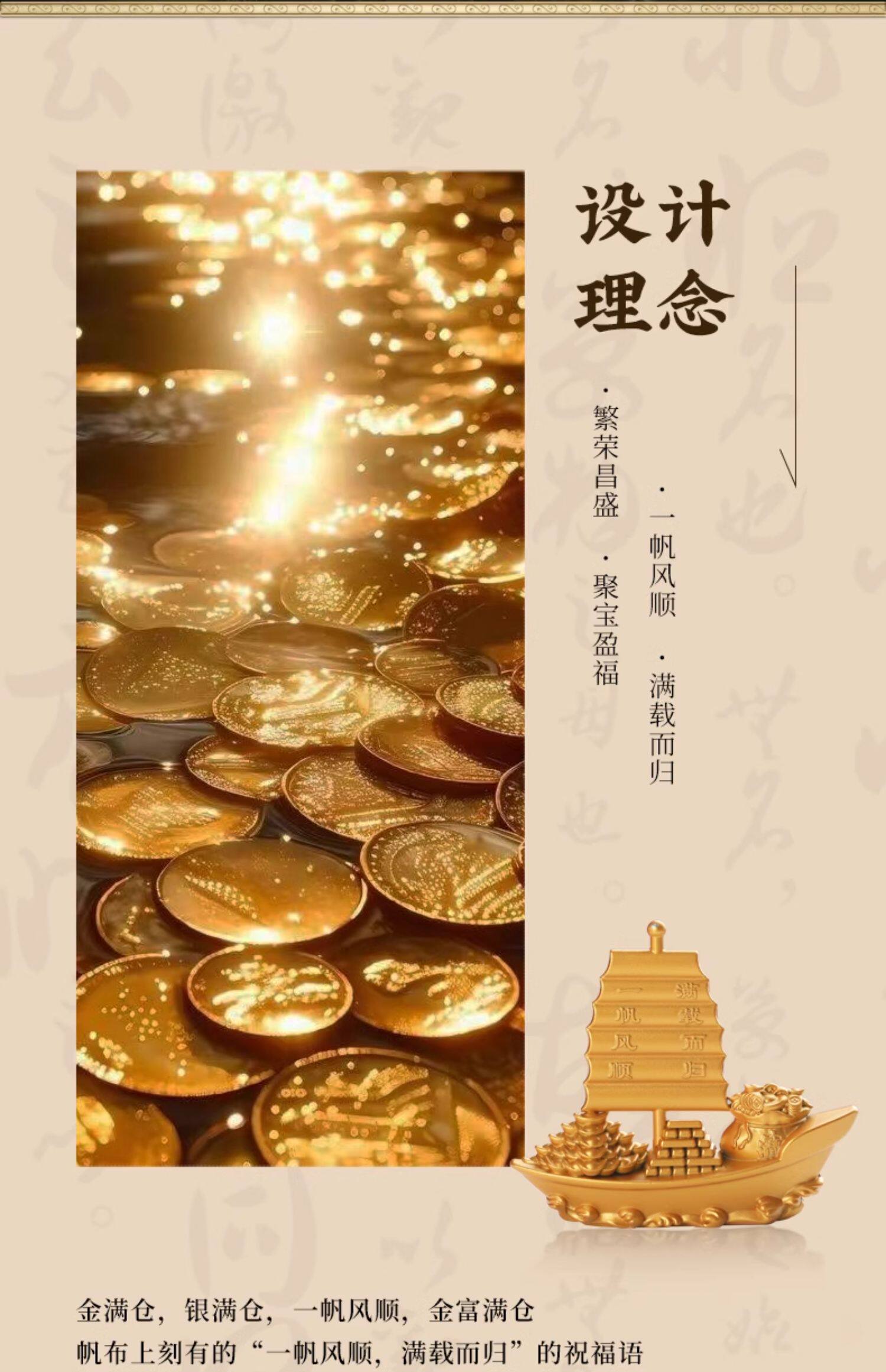 【祈愿吉品】【一帆风顺 】满载而归摆件金子满仓客厅桌面
