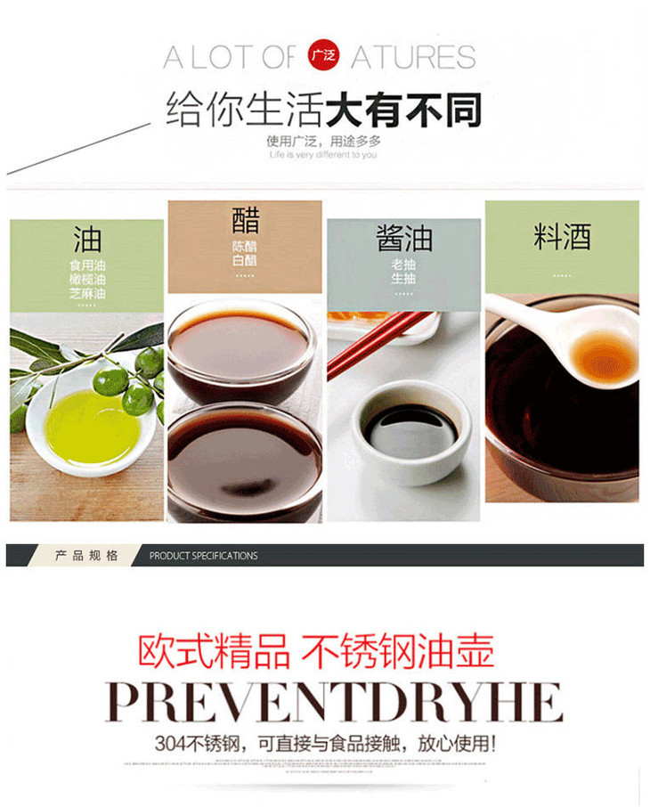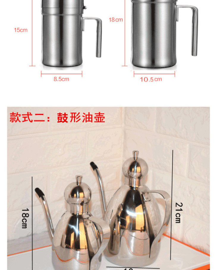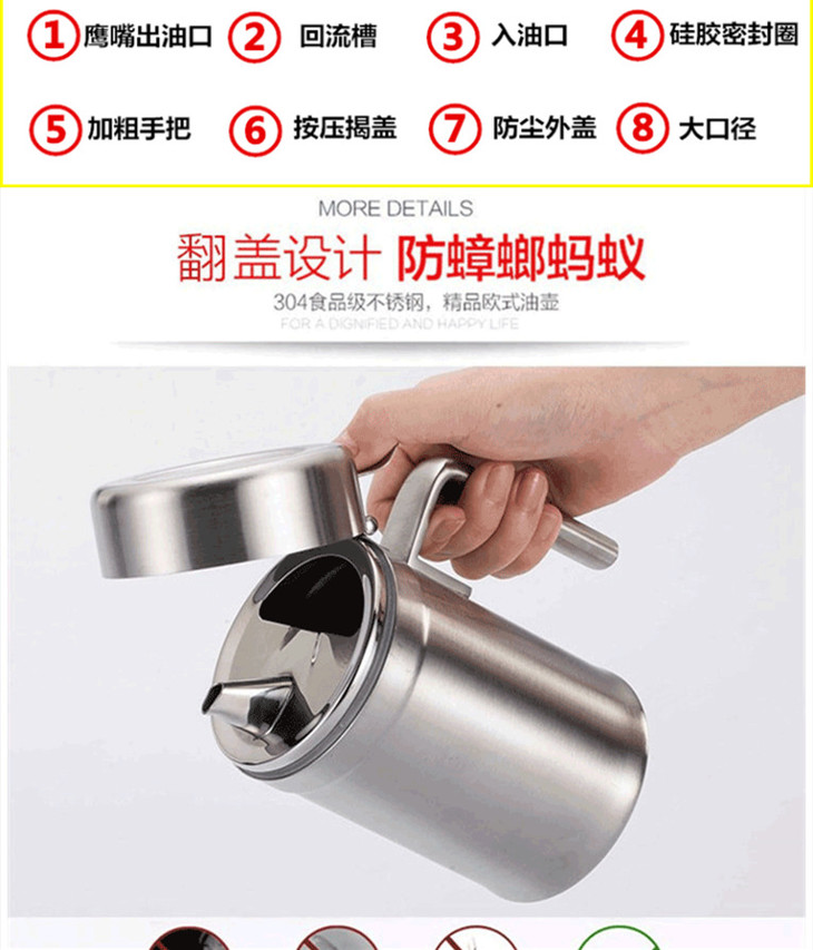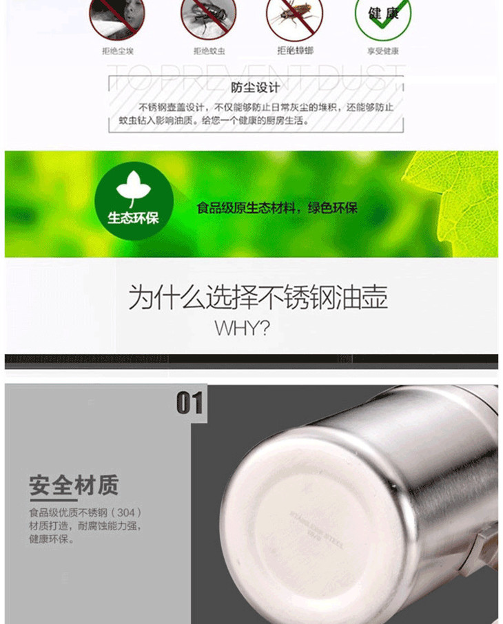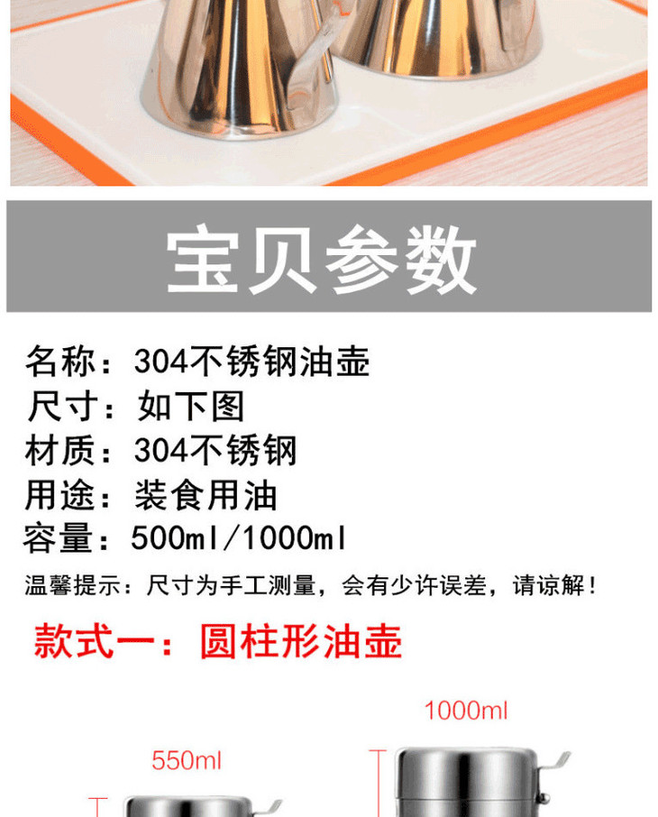 【油壶】油壶304不锈钢防漏 防尘带盖控油食用油瓶 厨房用品家用油壶加厚