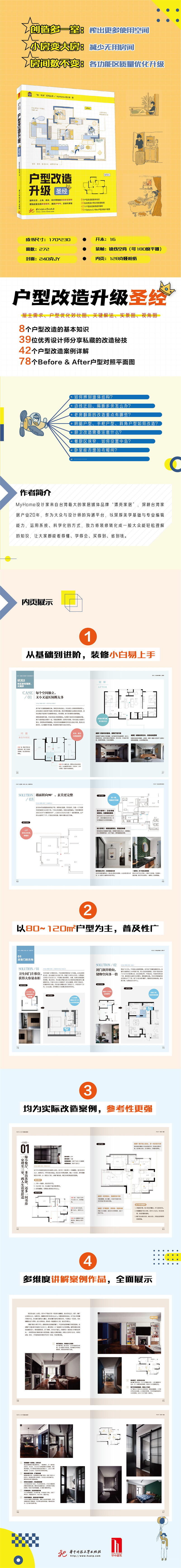 为了让初次进行装修的读者能由浅入深地了解户型改造,在内容规划上,先提供装修基本知识,然后讲述更进阶的各区布局,最后还讲解了一些微调的小技巧,让空间达到最大限度的利用。