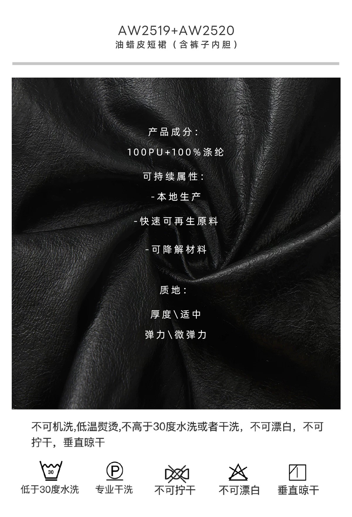 SIJIA|AW2520 黑油蜡皮短裙(含裤子内胆)
