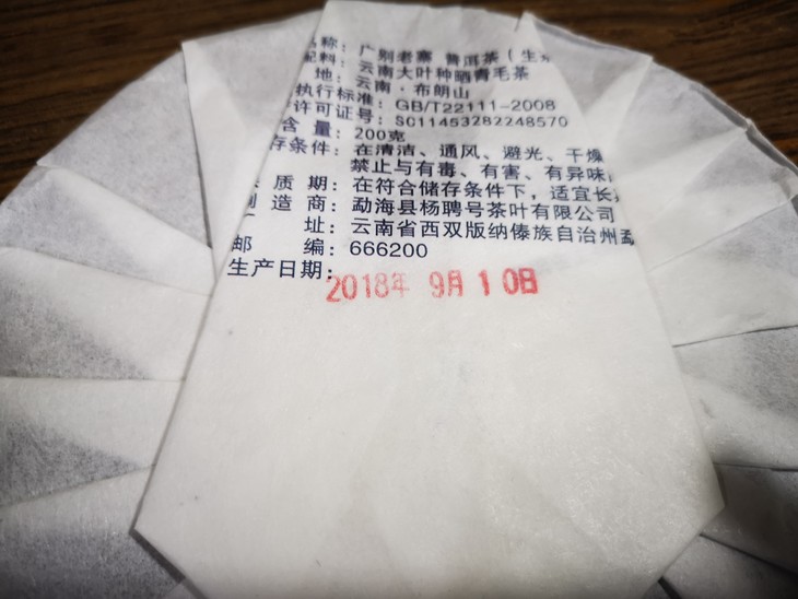 4月份原料,于9月份压饼,散茶存放了几个月,已经达到了良好的“发汗”效果,同时压制后等待了3个月的退蒸汽过程,如今茶饼已经很适合饮用了。当然,若加以存放几年,有了转化,那汤感的柔顺度将会有更好的呈现。对于喜欢普洱茶的人来说,岁月的沉淀,是一个值得等待的过程……