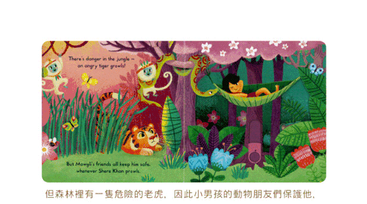书中除了有拉拉转转的操作设计,让小朋友在阅读过程中锻炼小手肌肉发展,每页简单的问句和提示,也鼓励他们观察以及描述图画中的细节,还能增加亲子互动,对世界经典童话故事做启蒙阅读。