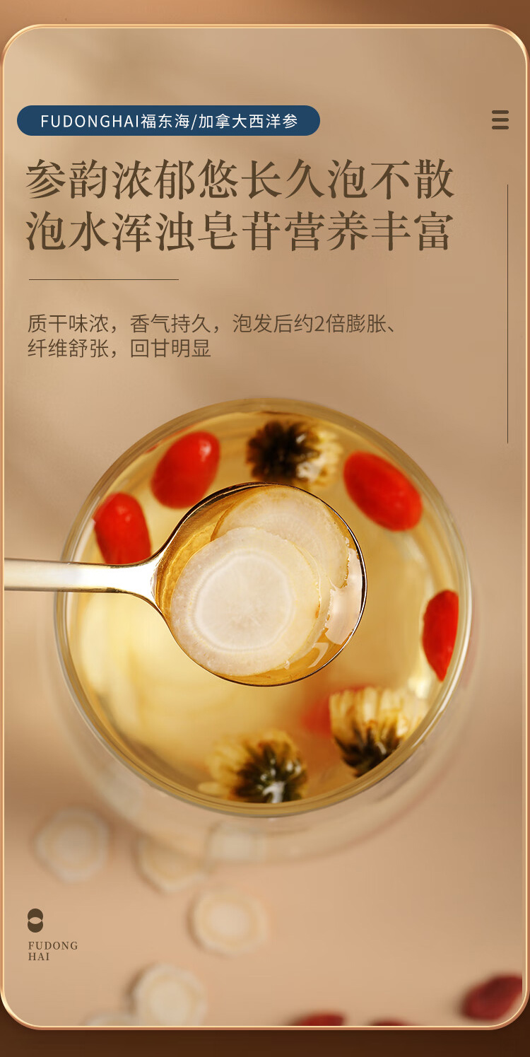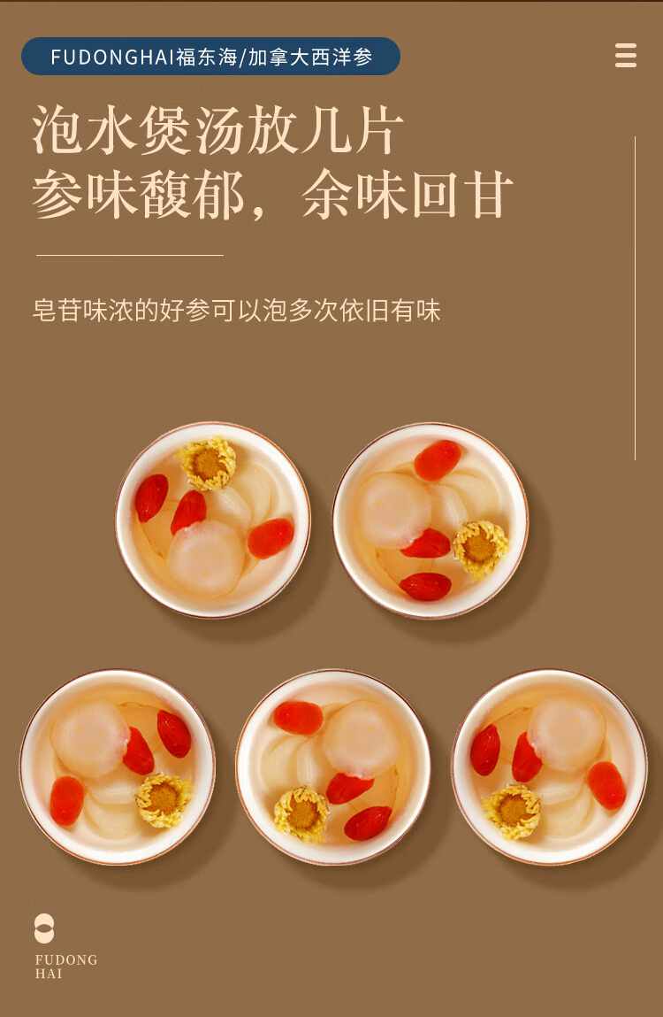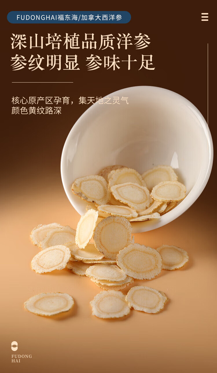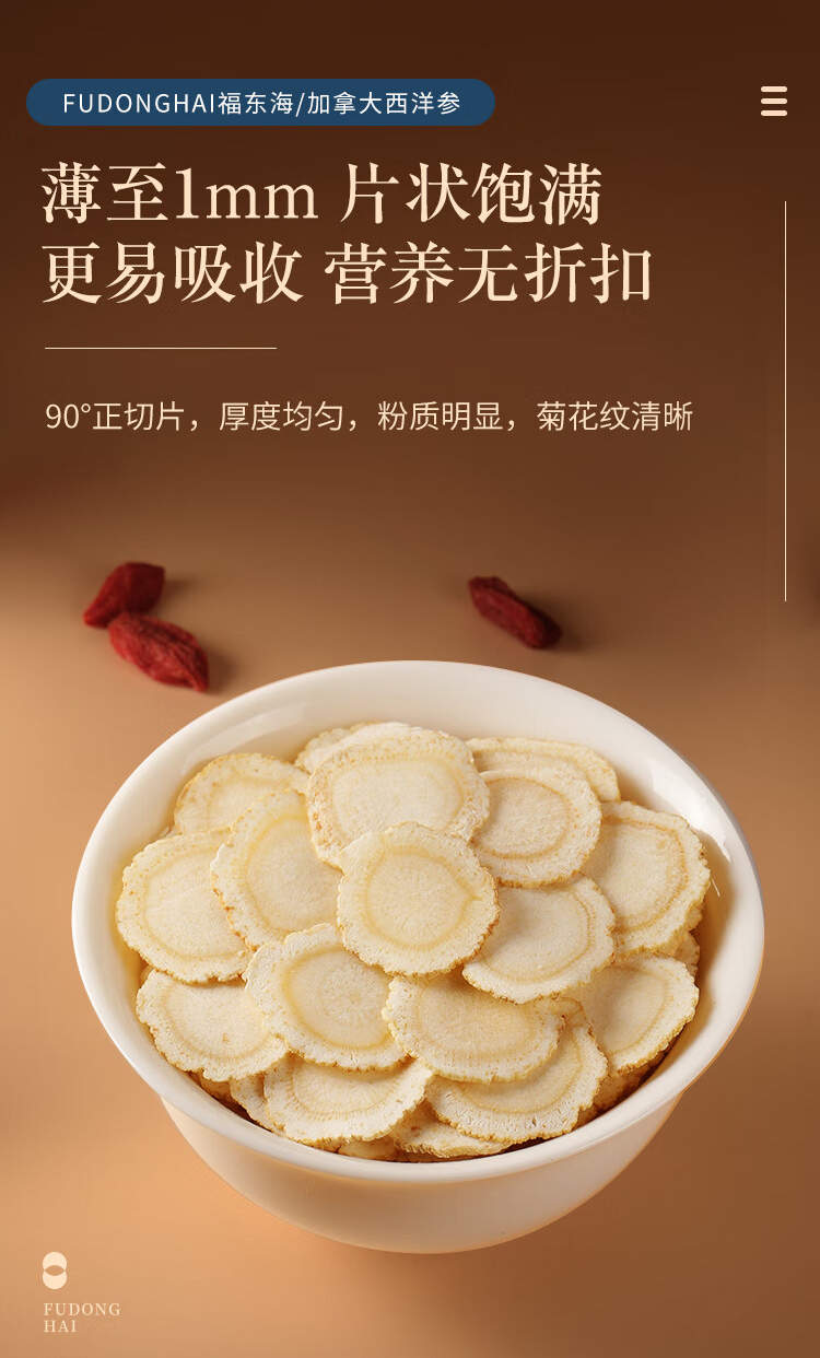 【福东海】加拿大西洋参(1.2-1.4薄片)120克(15克x8罐)/盒 花旗参滋补品人参泡水送父母长辈