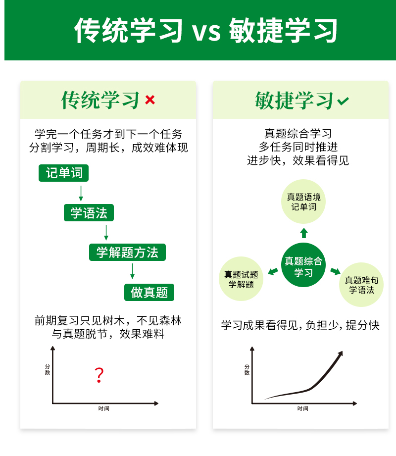 3. 敏捷学习法,综合学习真题,真题详解+句句分析,同步学词汇语法解题: