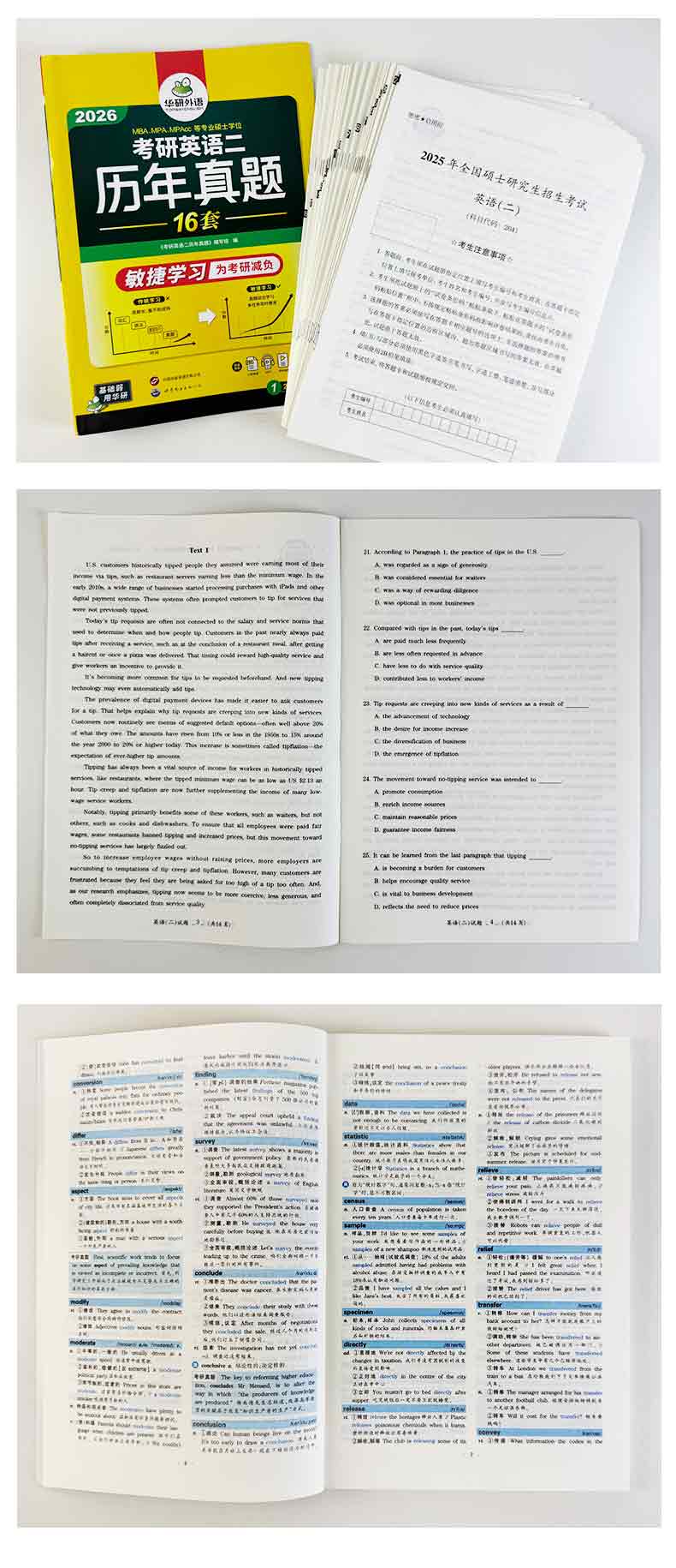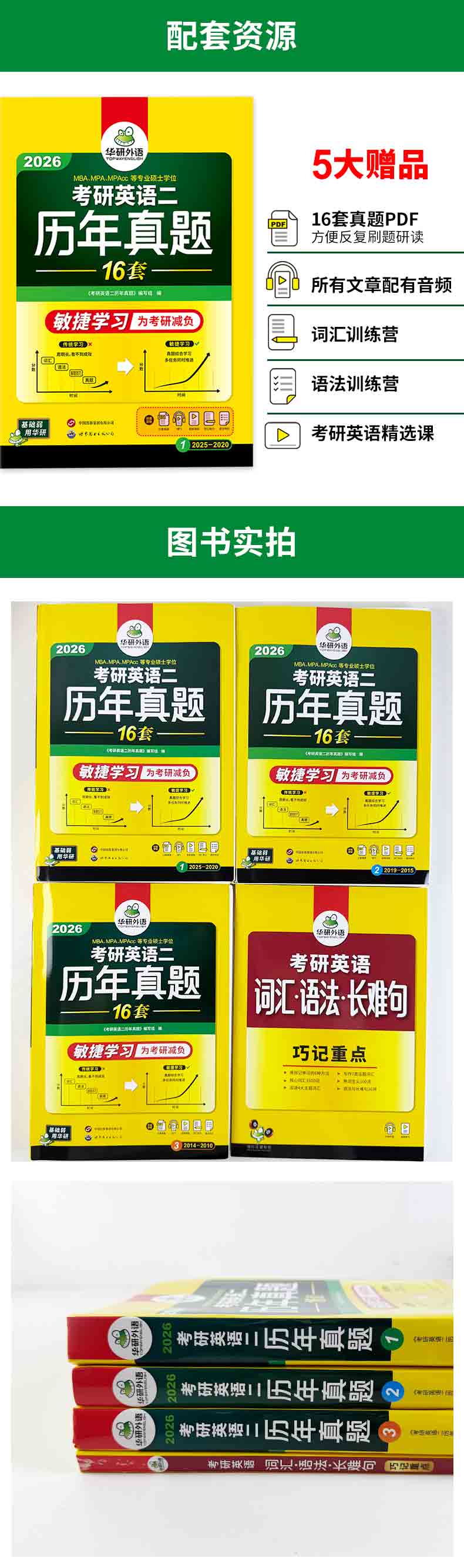 1.考研英语二历年真题16套+1600个图解,分册试卷,分册解析,学透真题;