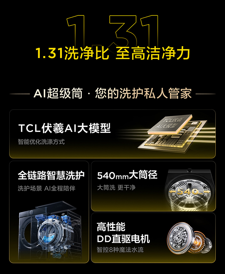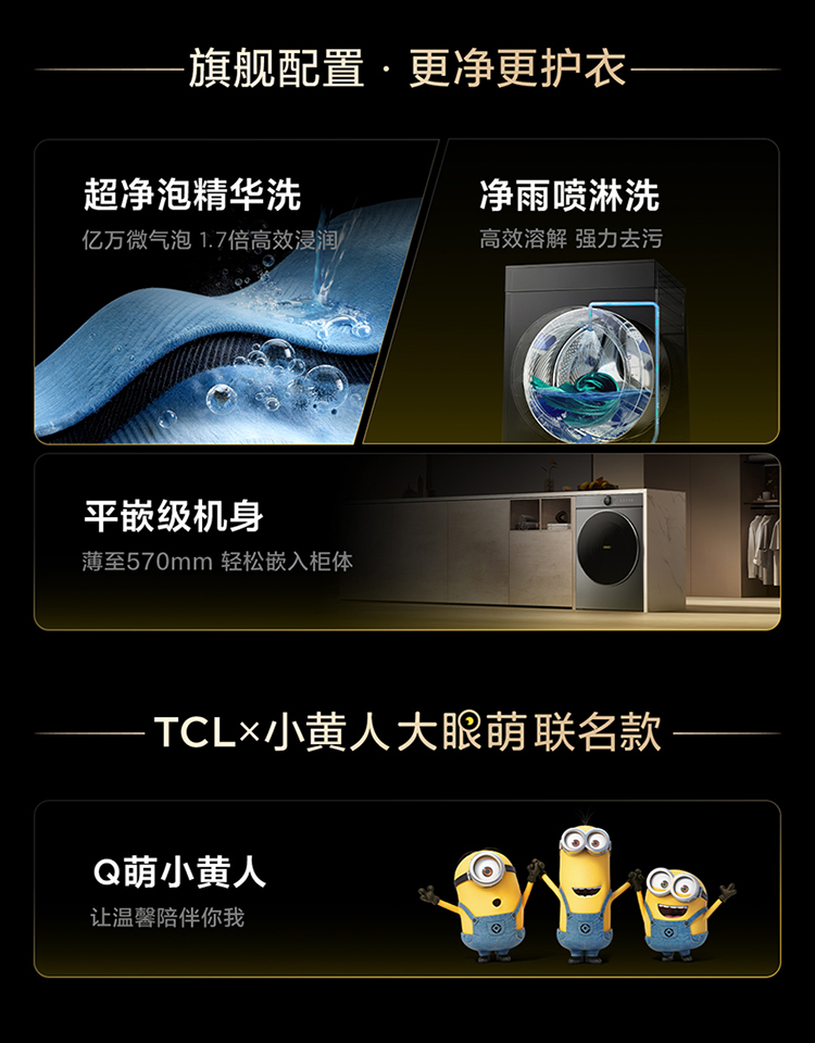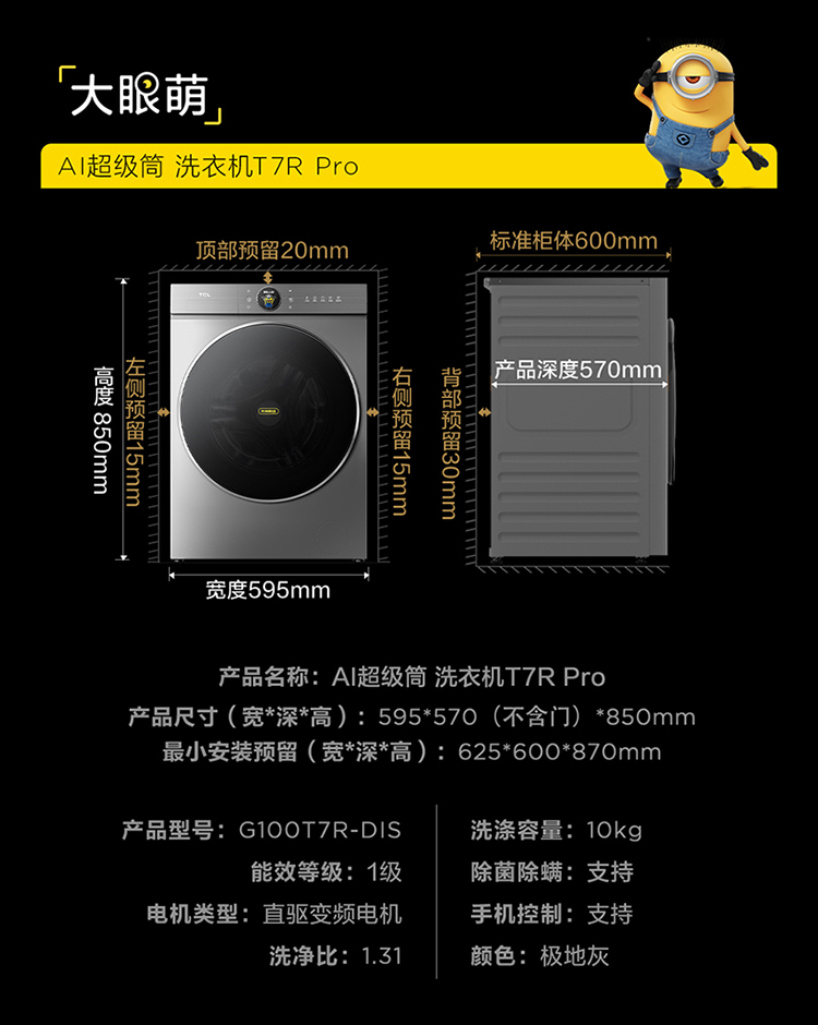 【新品上市】TCL小黄人·大眼萌AI超级筒T7R PRO 10公斤DD直驱变频滚筒 G100T7R-DIS