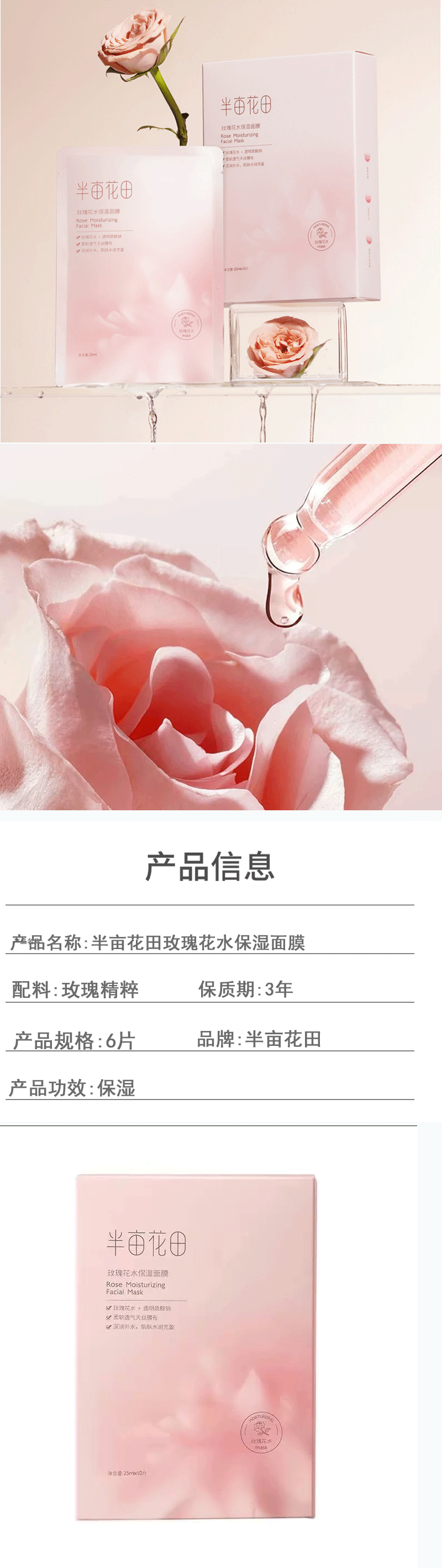 半亩花田玫瑰花水保湿面膜25ml*6【30173822】