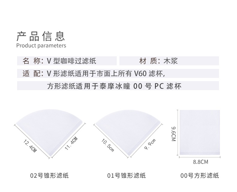泰摩 手冲咖啡壶滤纸 美式咖啡机扇形过滤网 兼V60锥形系列滴滤杯