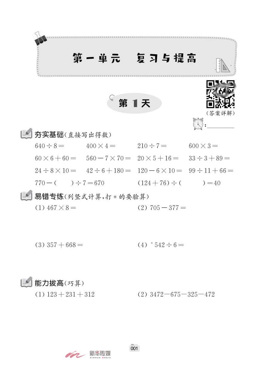 本书与上海市二期课改教材配套,共80套练习题,内容以口算、列竖式和递等式计算为主,每套练习题分为;夯实基础;易错专练和;能力拔高三个部分,难度呈现梯度,旨在帮助学生及时巩固所学知识,并通过举一反三的练习帮助学生在边学边练的过程中理解计算算理、掌握计算方法、提高计算能力。本书适合小学三年级学生第二学期使用。
