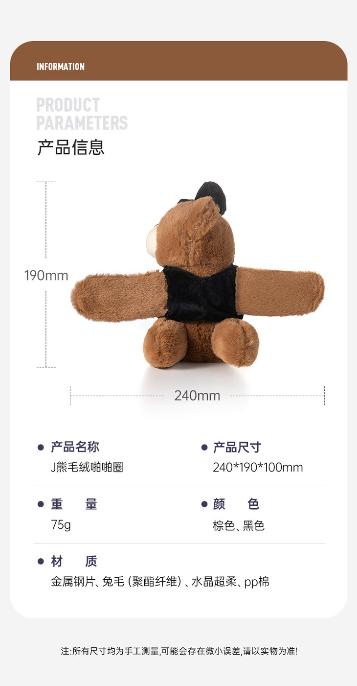 【J熊毛绒啪啪圈】毛绒小熊公仔创意手腕配饰儿童玩具送礼礼物